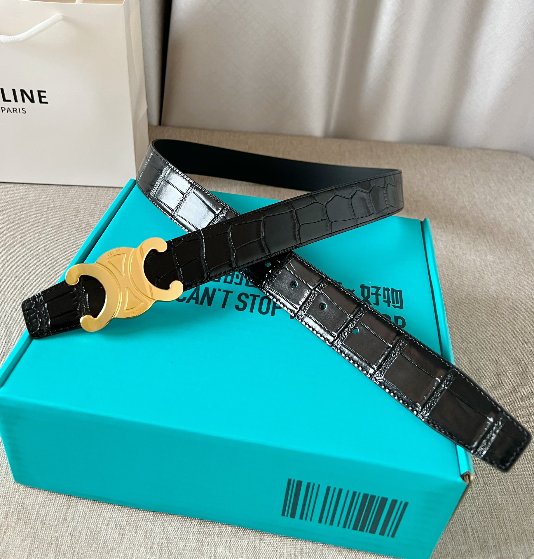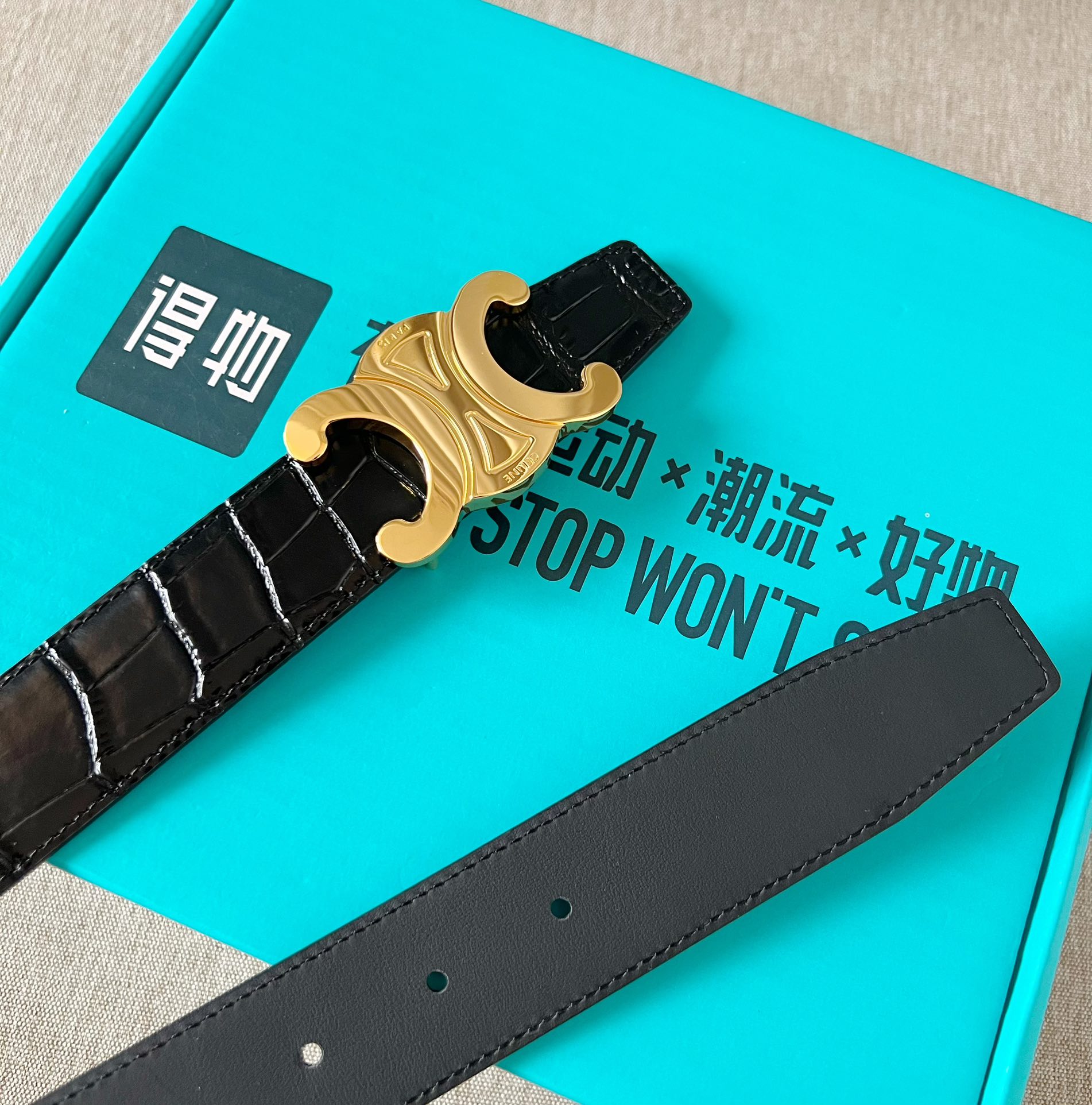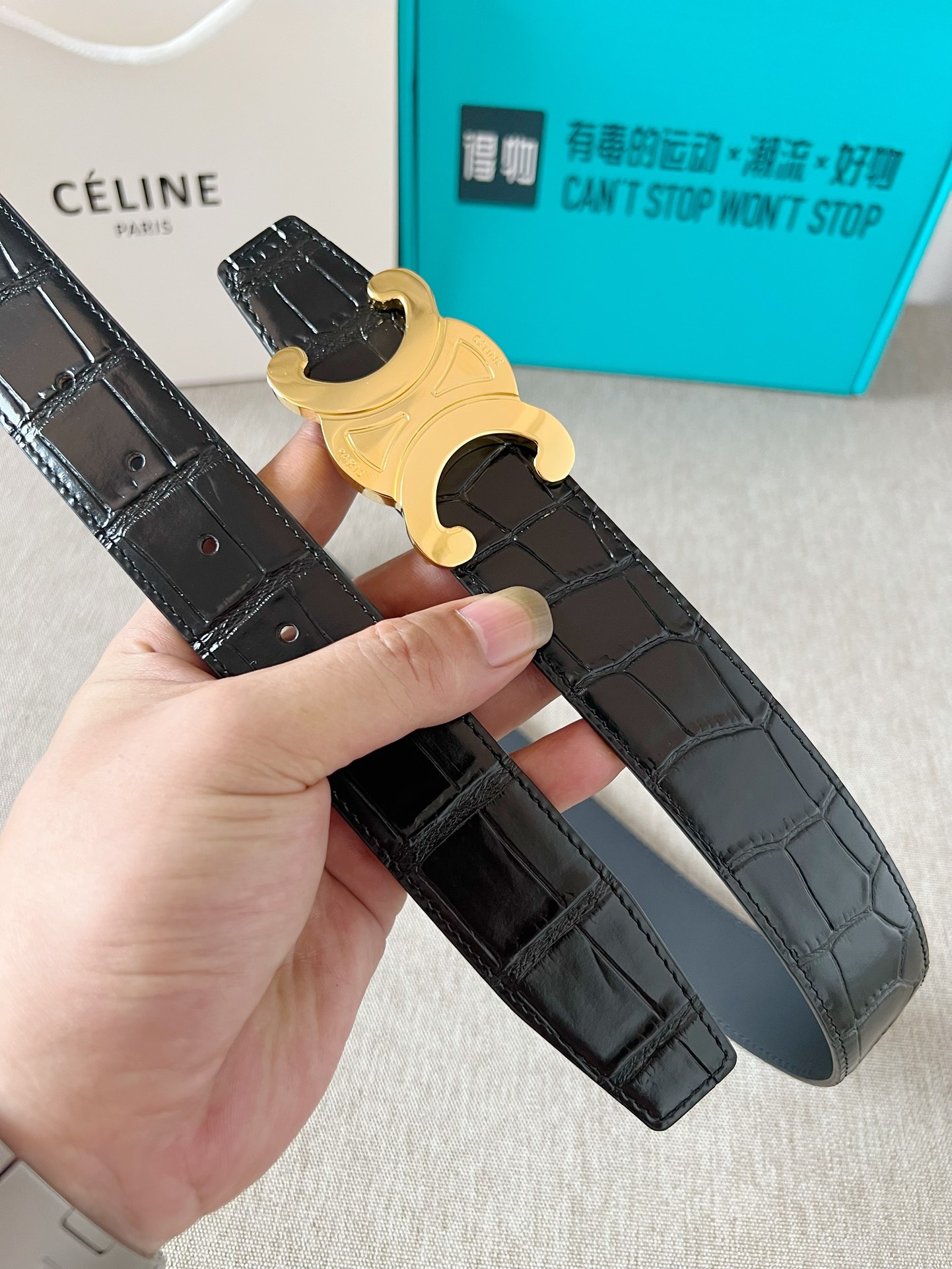 这款皮带是AAAAA 1:1 质量 (非常棒). 使用了和原版一模一样的材料. 商标部分也保持了和思琳/Celine一样. 图片拍摄是实物皮带拍摄, 您所收到的实物保证和我们图片一模一样.