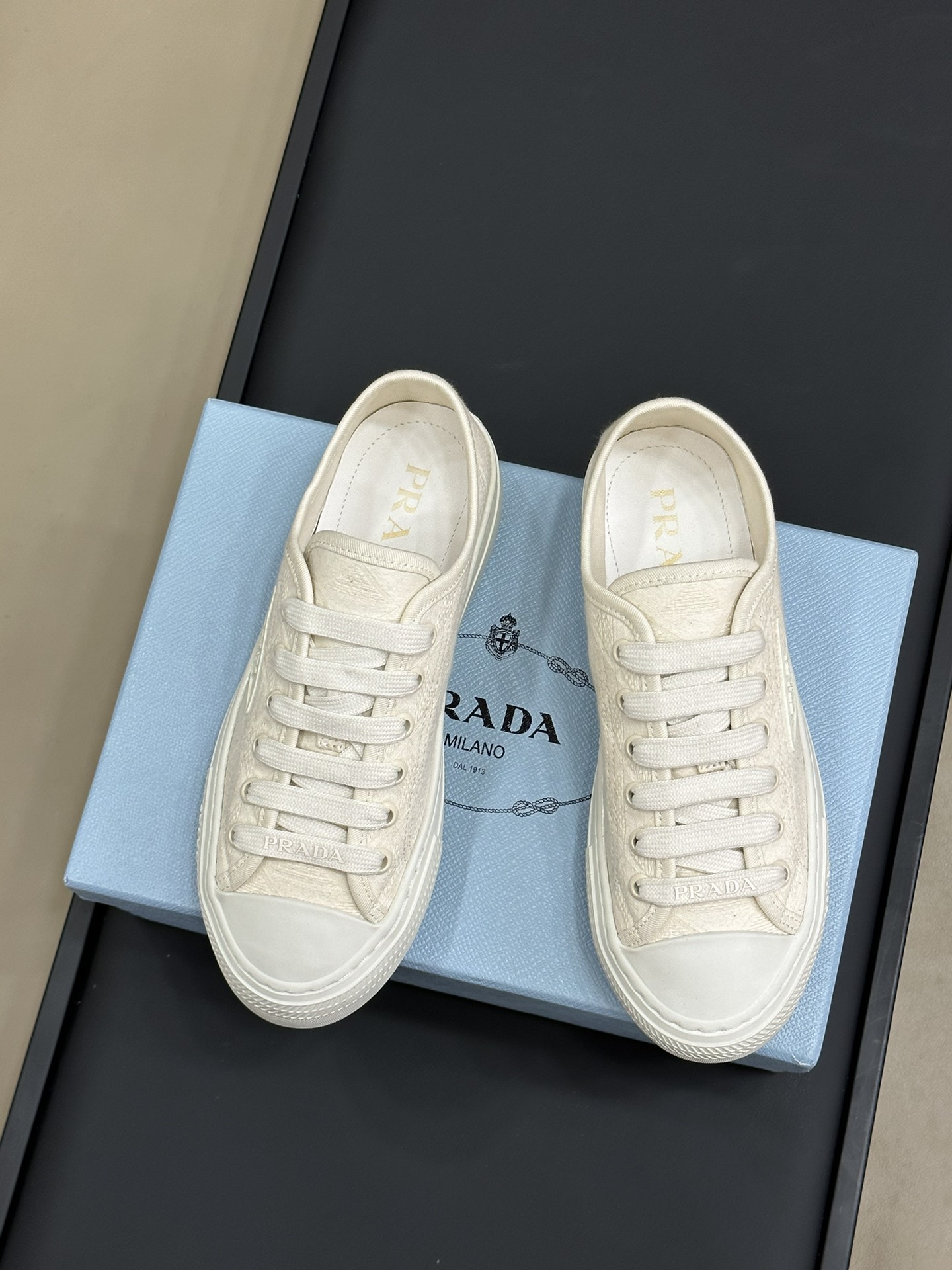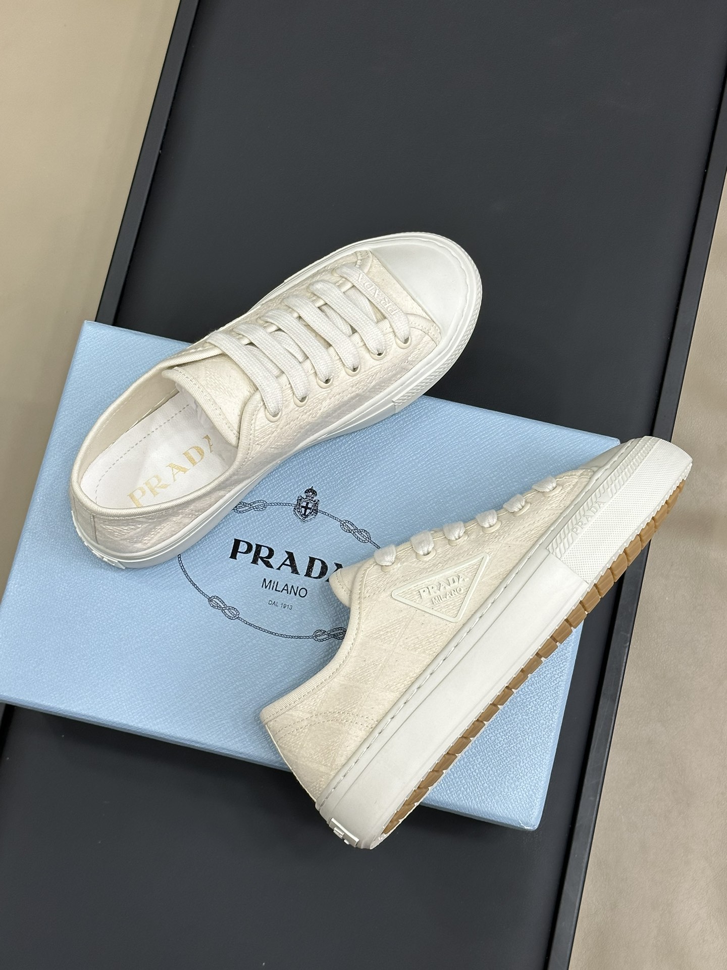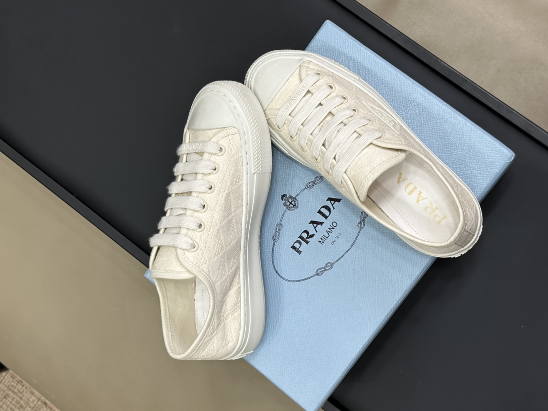 这款鞋子是AAAAA 1:1 质量 (非常棒). 使用了和原版一模一样的材料. 商标部分也保持了和普拉达/Prada一样. 图片拍摄是实物鞋子拍摄, 您所收到的实物保证和我们图片一模一样.