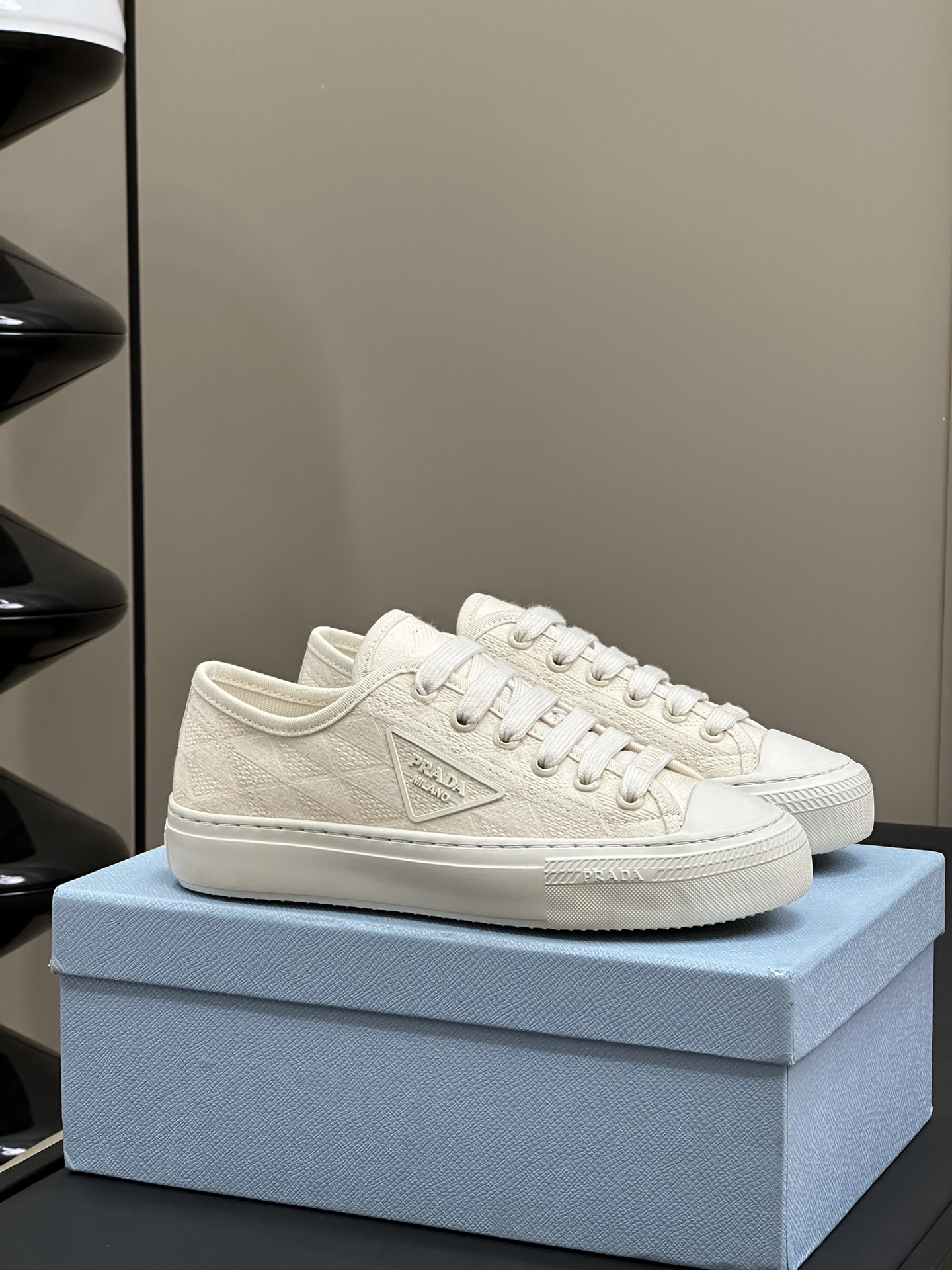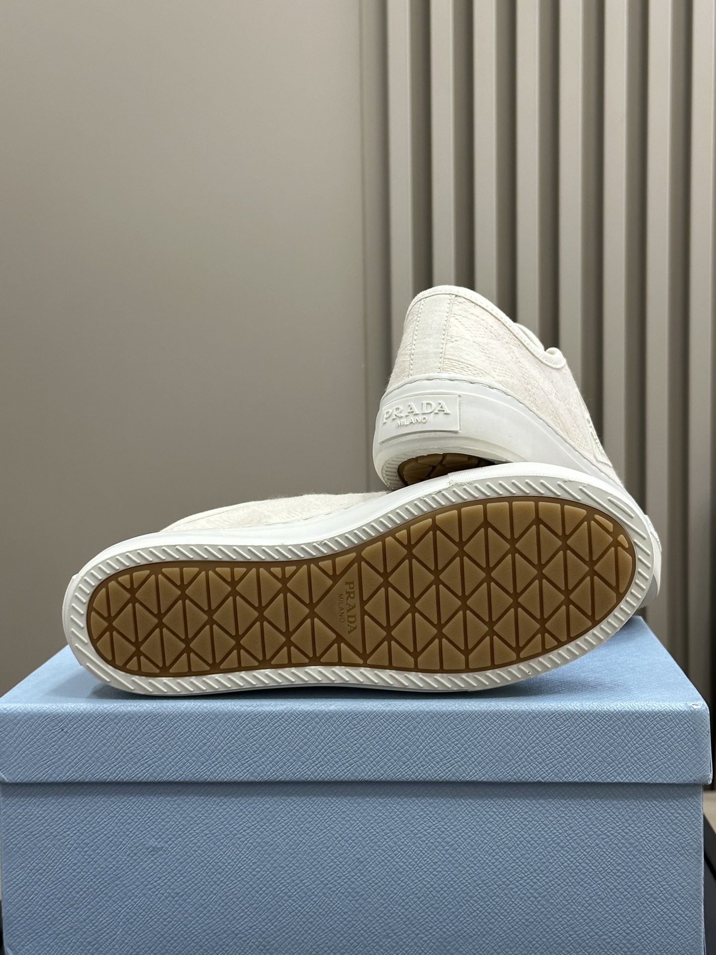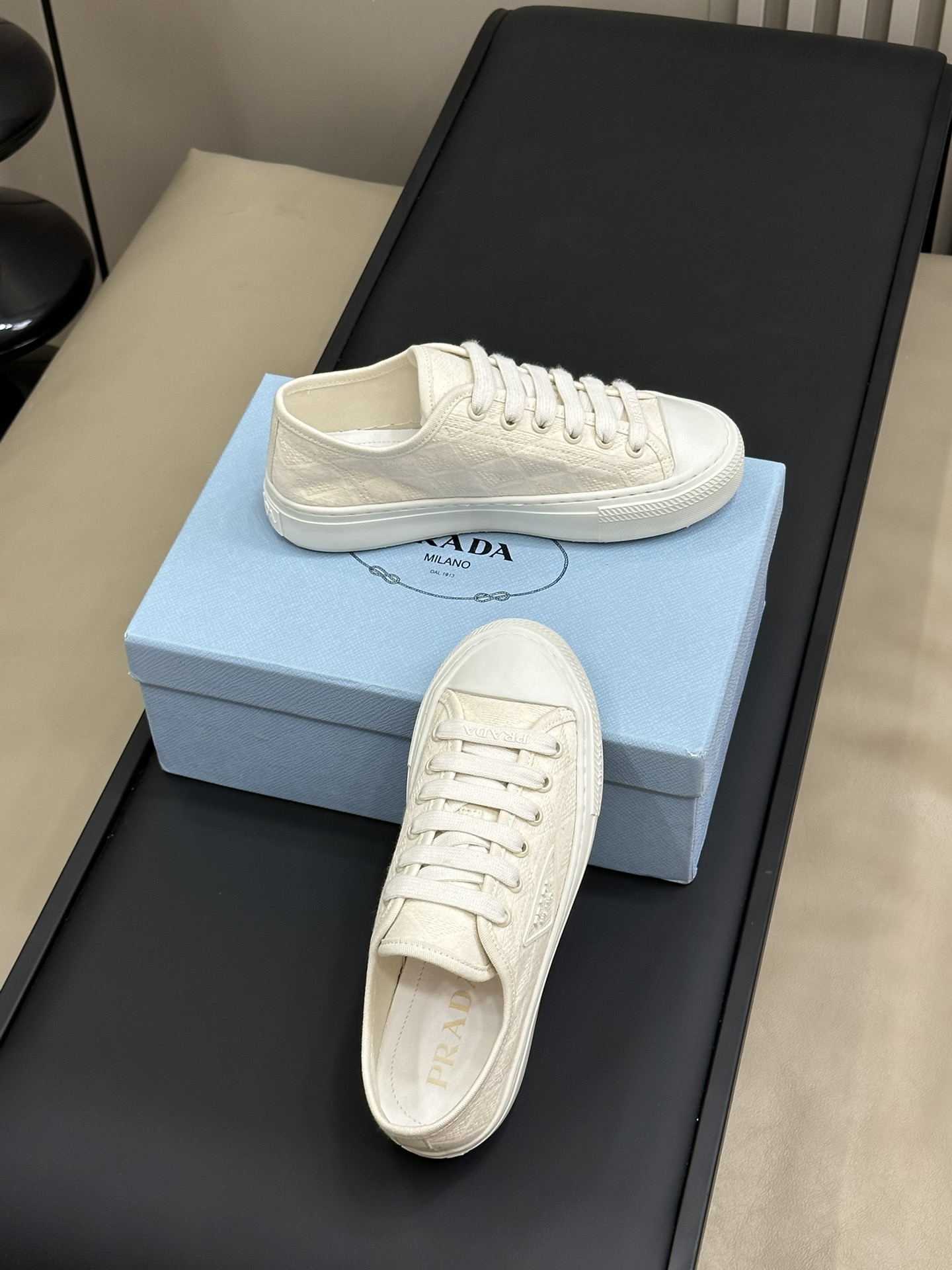 这款鞋子是AAAAA 1:1 质量 (非常棒). 使用了和原版一模一样的材料. 商标部分也保持了和普拉达/Prada一样. 图片拍摄是实物鞋子拍摄, 您所收到的实物保证和我们图片一模一样.