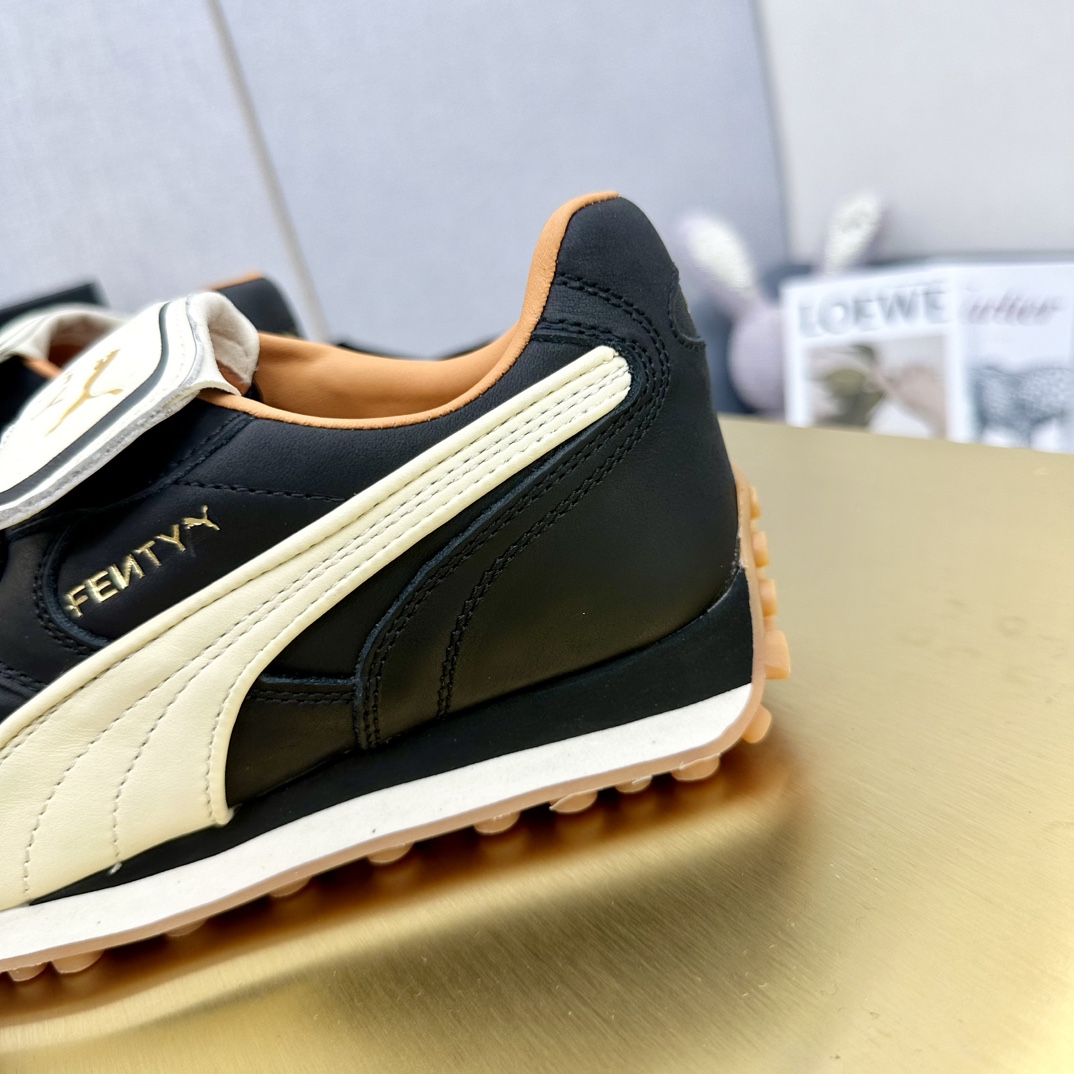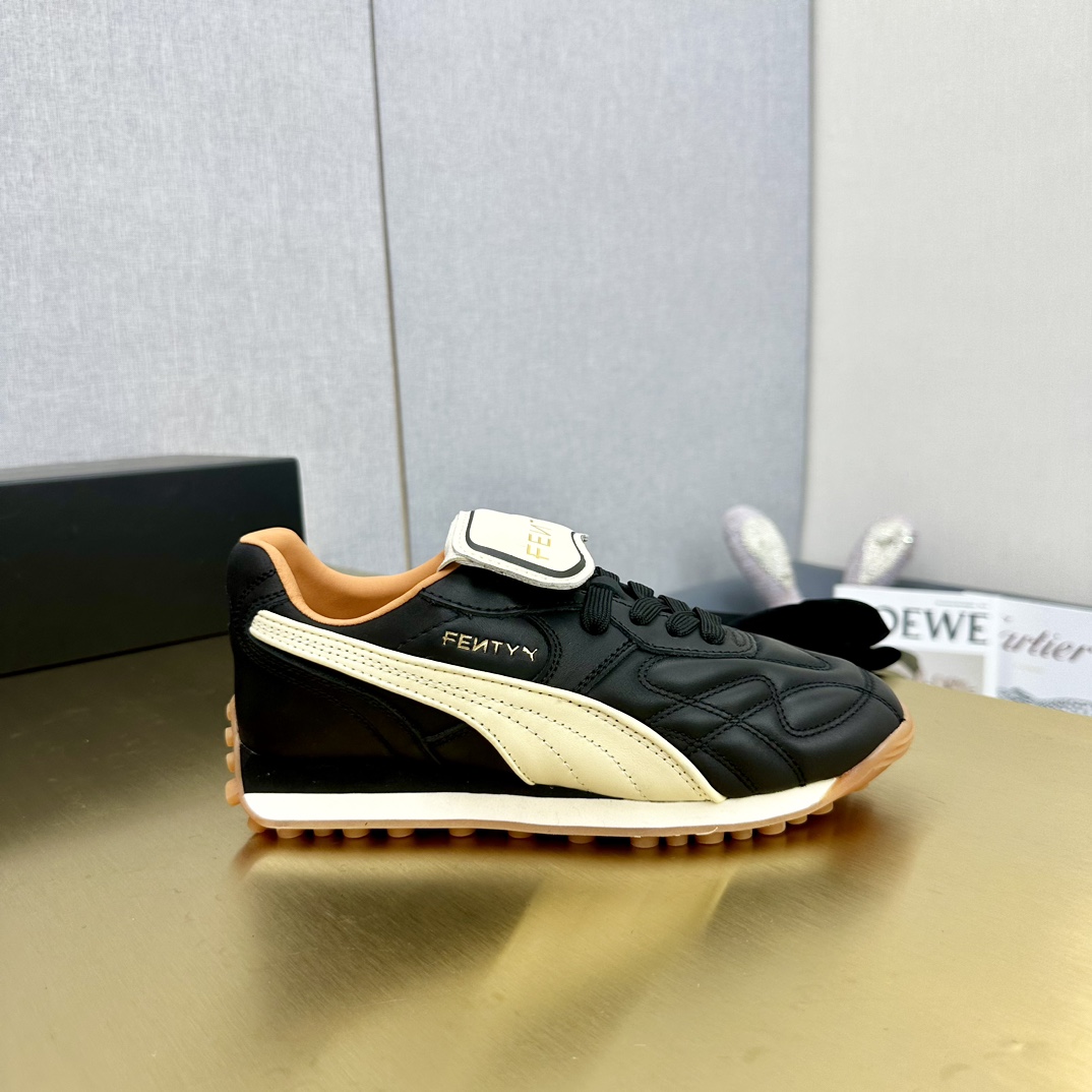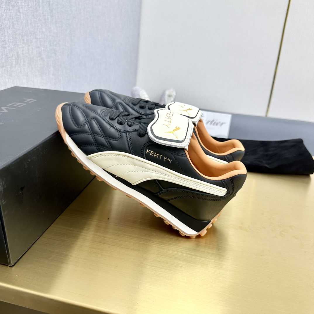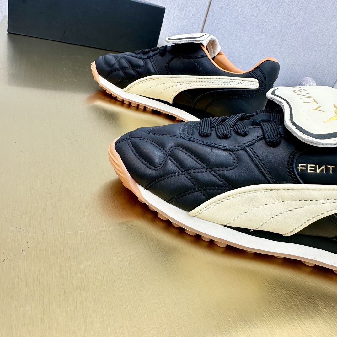这款鞋子是AAAAA 1:1 质量 (非常棒). 使用了和原版一模一样的材料. 商标部分也保持了和FENTY一样. 图片拍摄是实物鞋子拍摄, 您所收到的实物保证和我们图片一模一样.