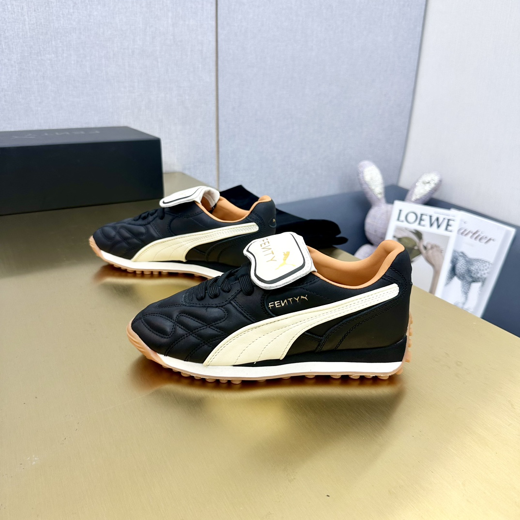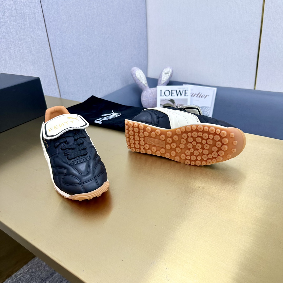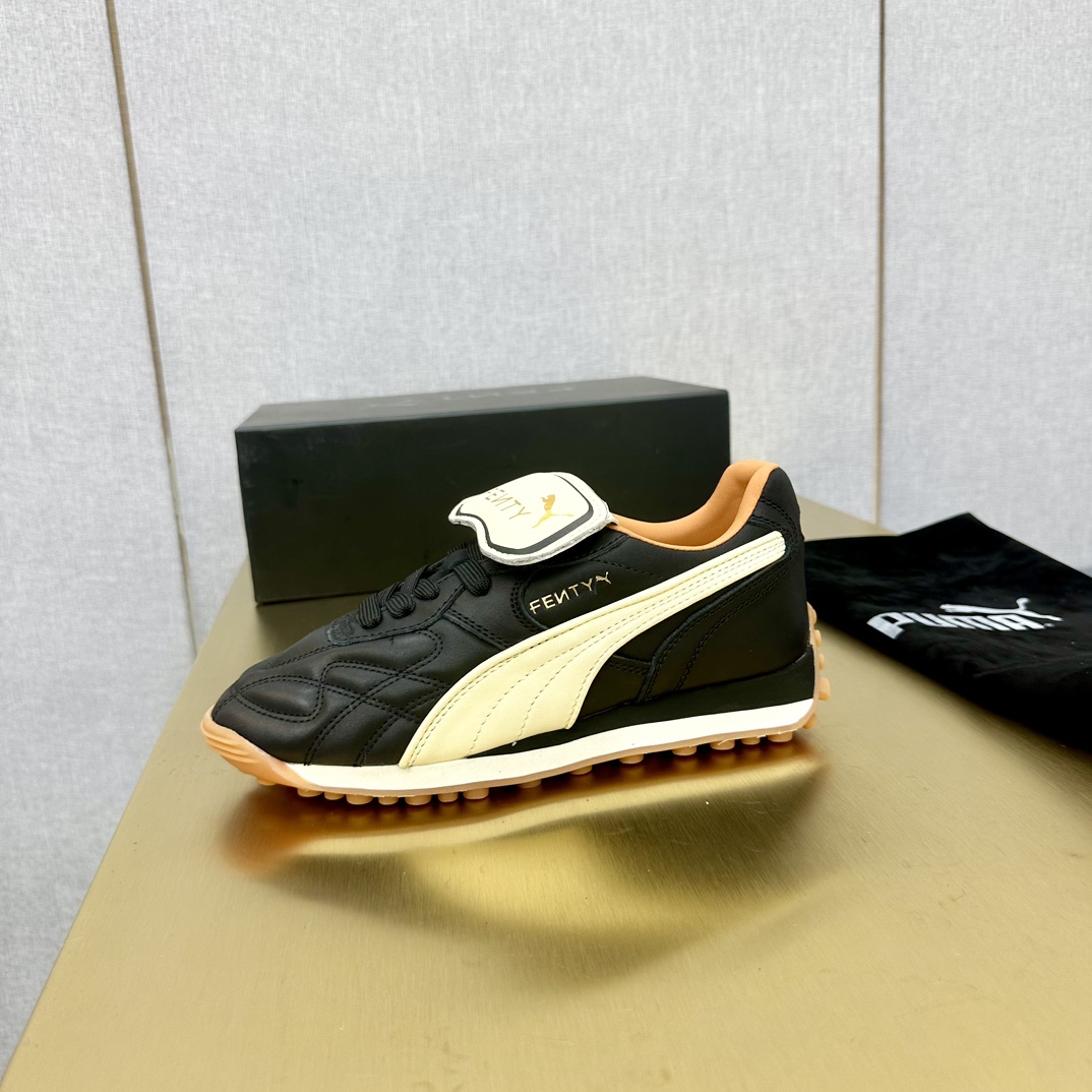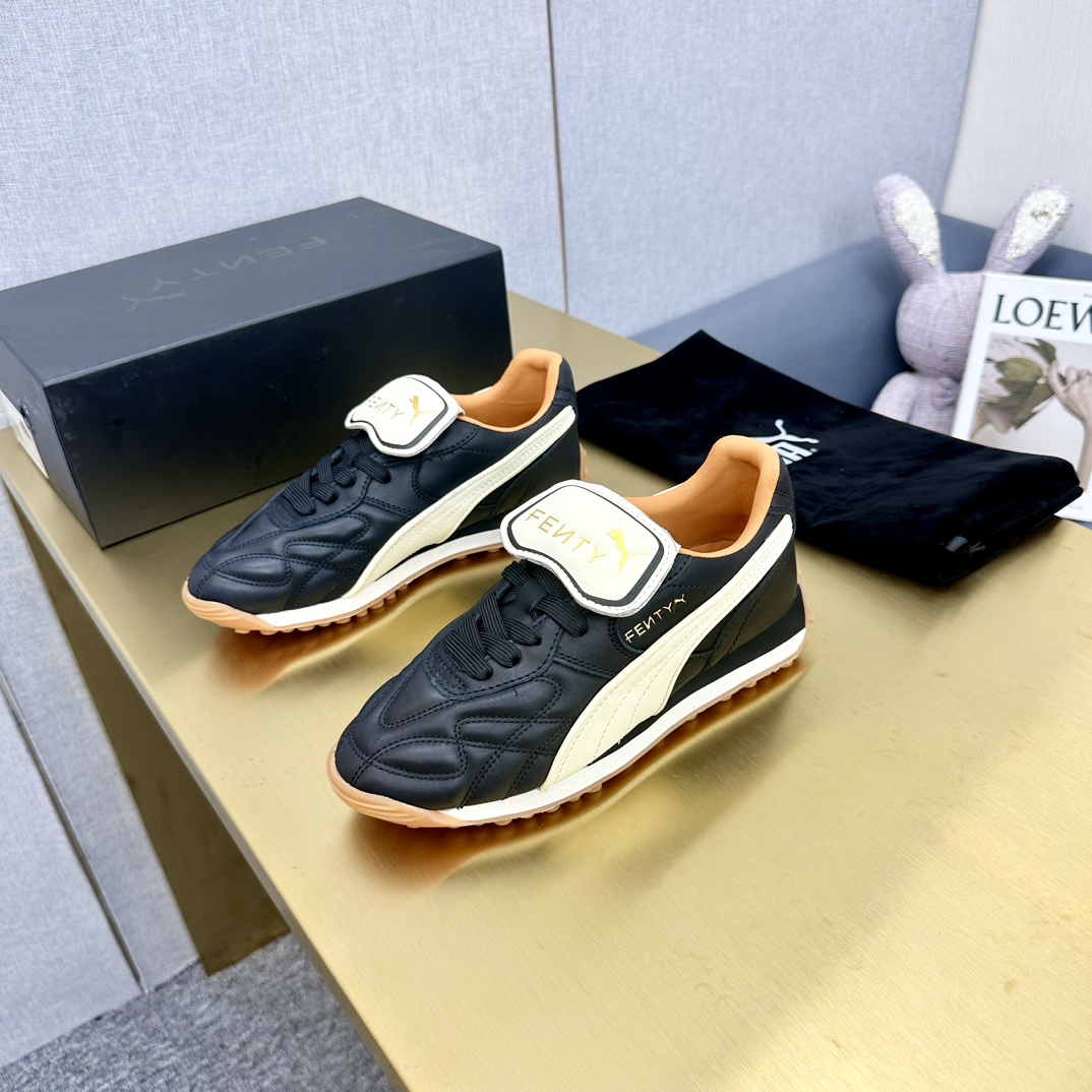 这款鞋子是AAAAA 1:1 质量 (非常棒). 使用了和原版一模一样的材料. 商标部分也保持了和FENTY一样. 图片拍摄是实物鞋子拍摄, 您所收到的实物保证和我们图片一模一样.