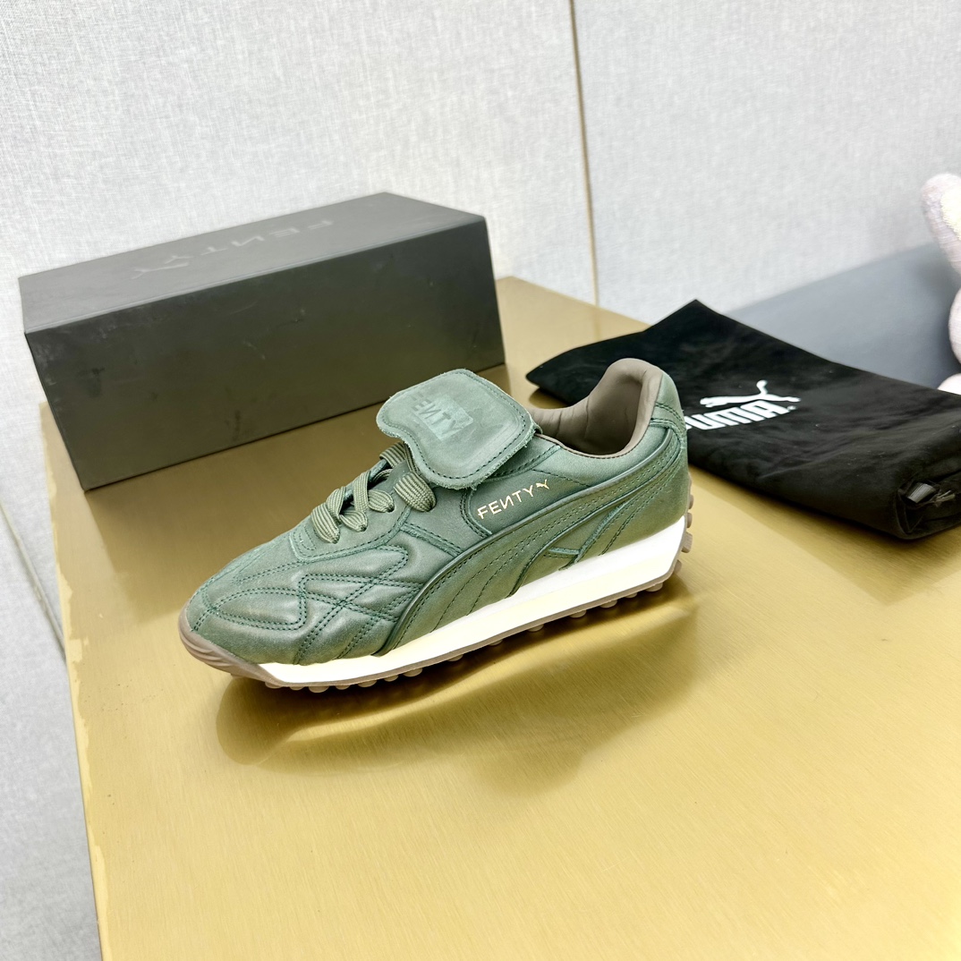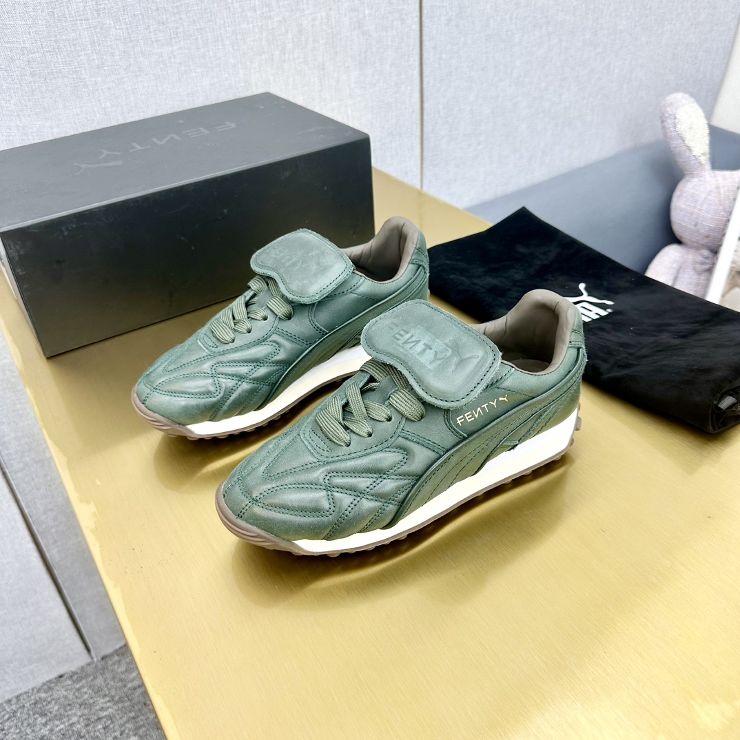 这款鞋子是AAAAA 1:1 质量 (非常棒). 使用了和原版一模一样的材料. 商标部分也保持了和FENTY一样. 图片拍摄是实物鞋子拍摄, 您所收到的实物保证和我们图片一模一样.