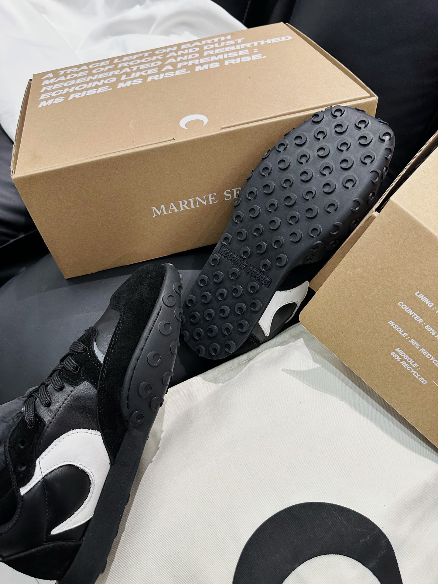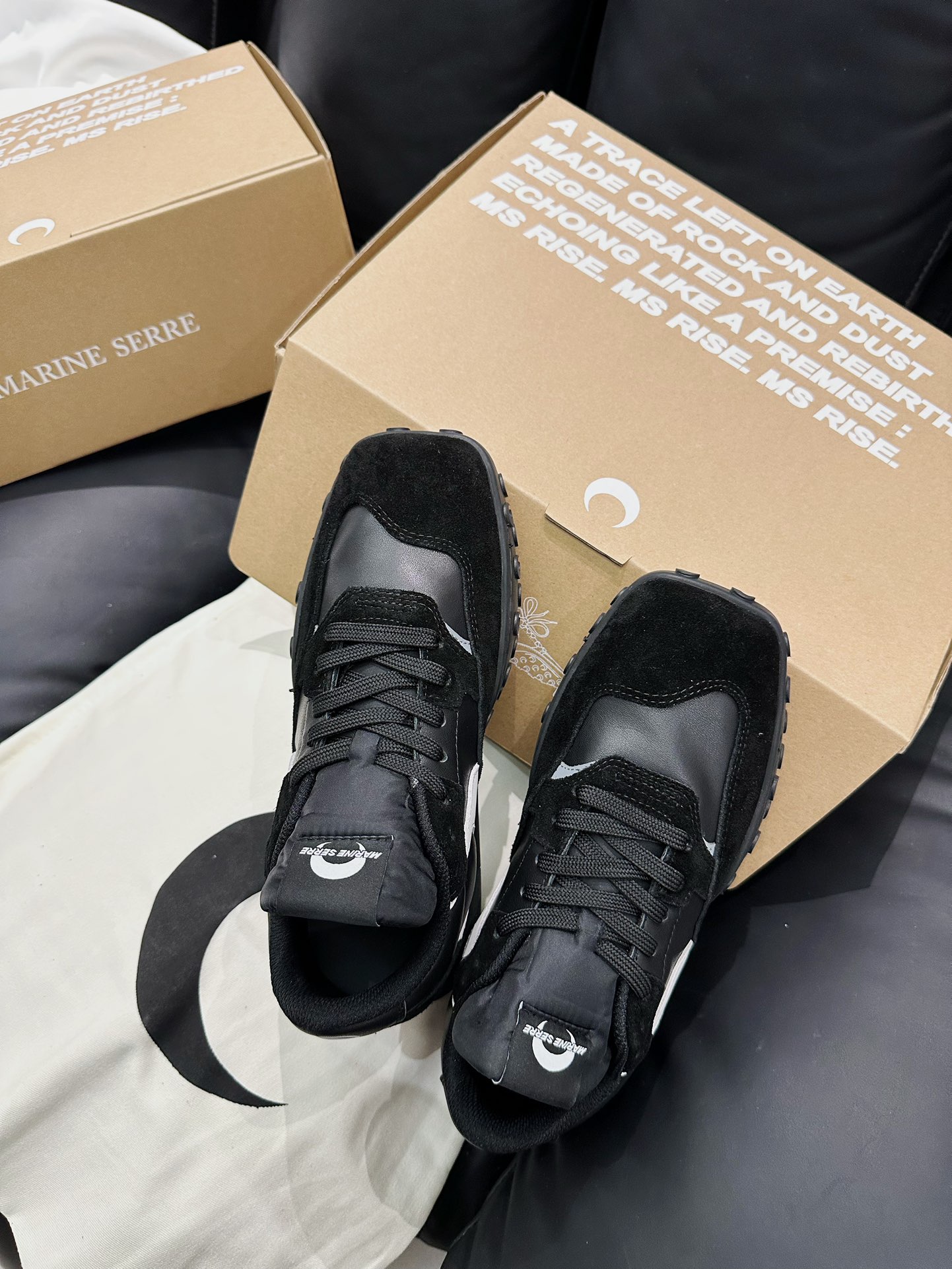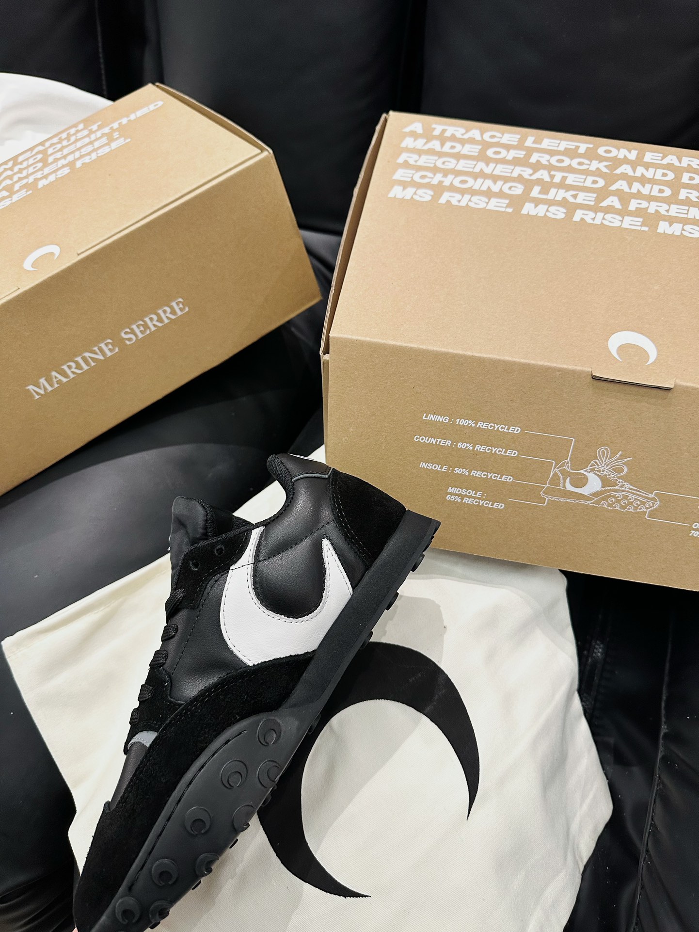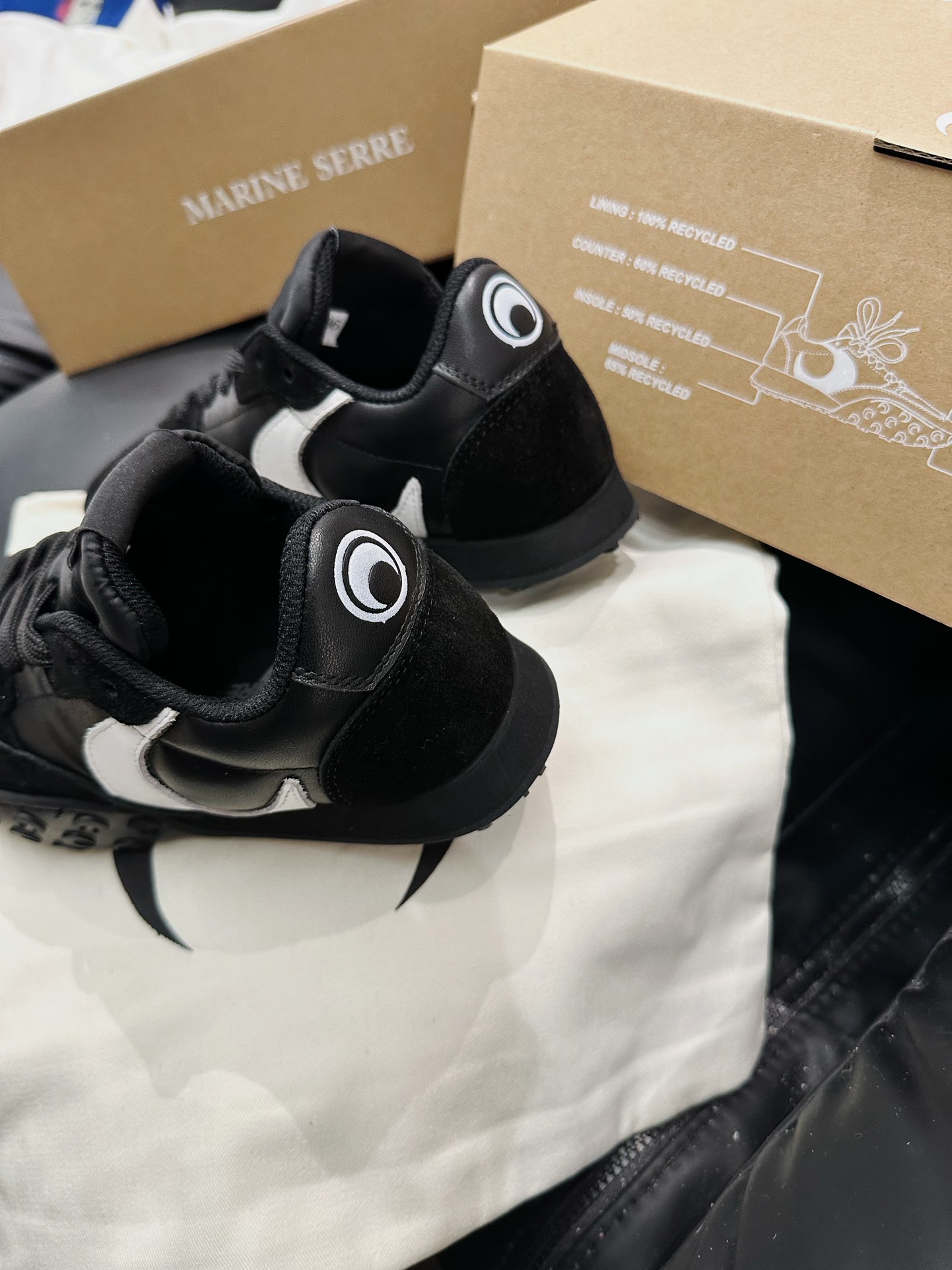 这款鞋子是AAAAA 1:1 质量 (非常棒). 使用了和原版一模一样的材料. 商标部分也保持了和Marine Serre一样. 图片拍摄是实物鞋子拍摄, 您所收到的实物保证和我们图片一模一样.