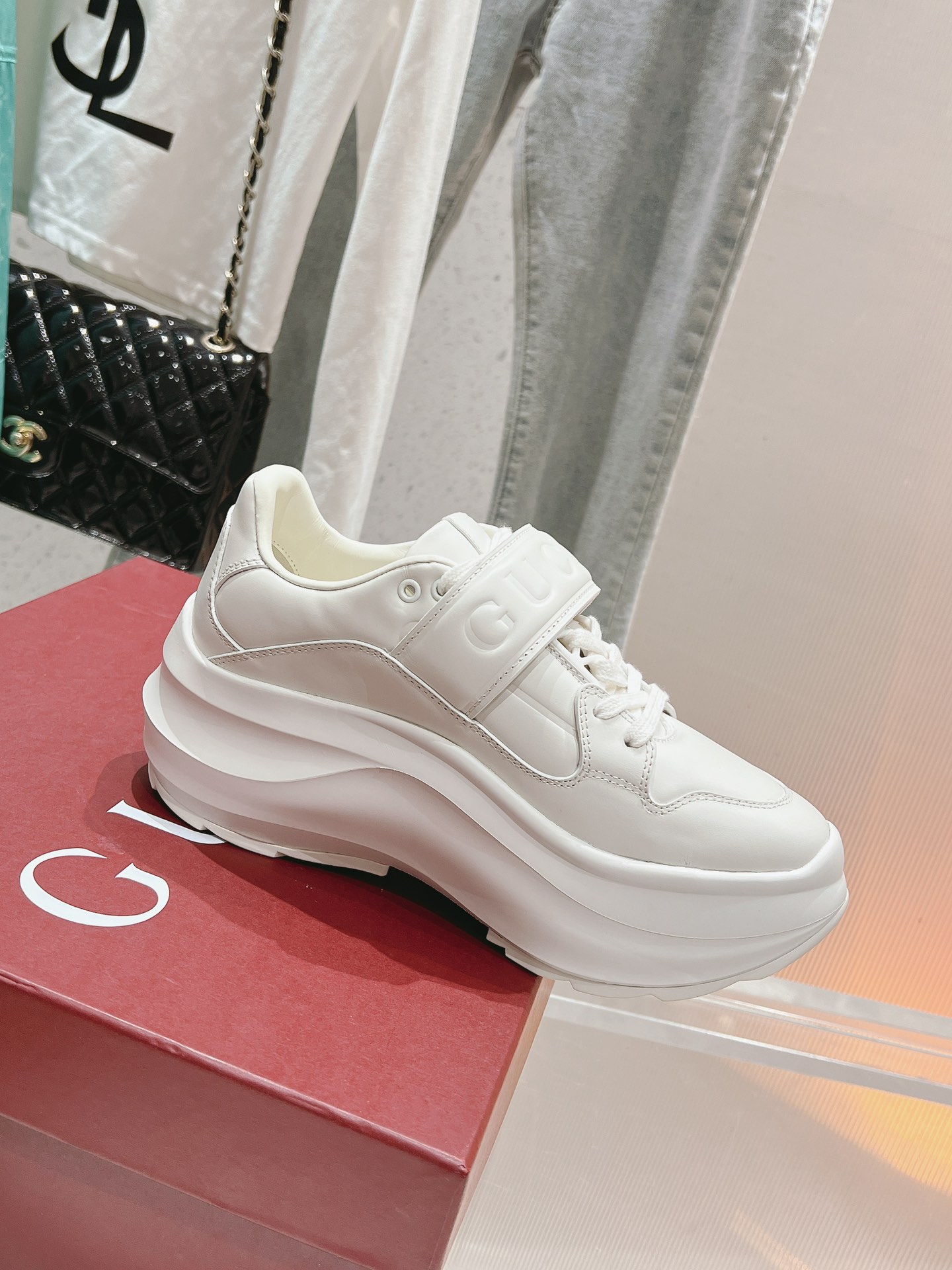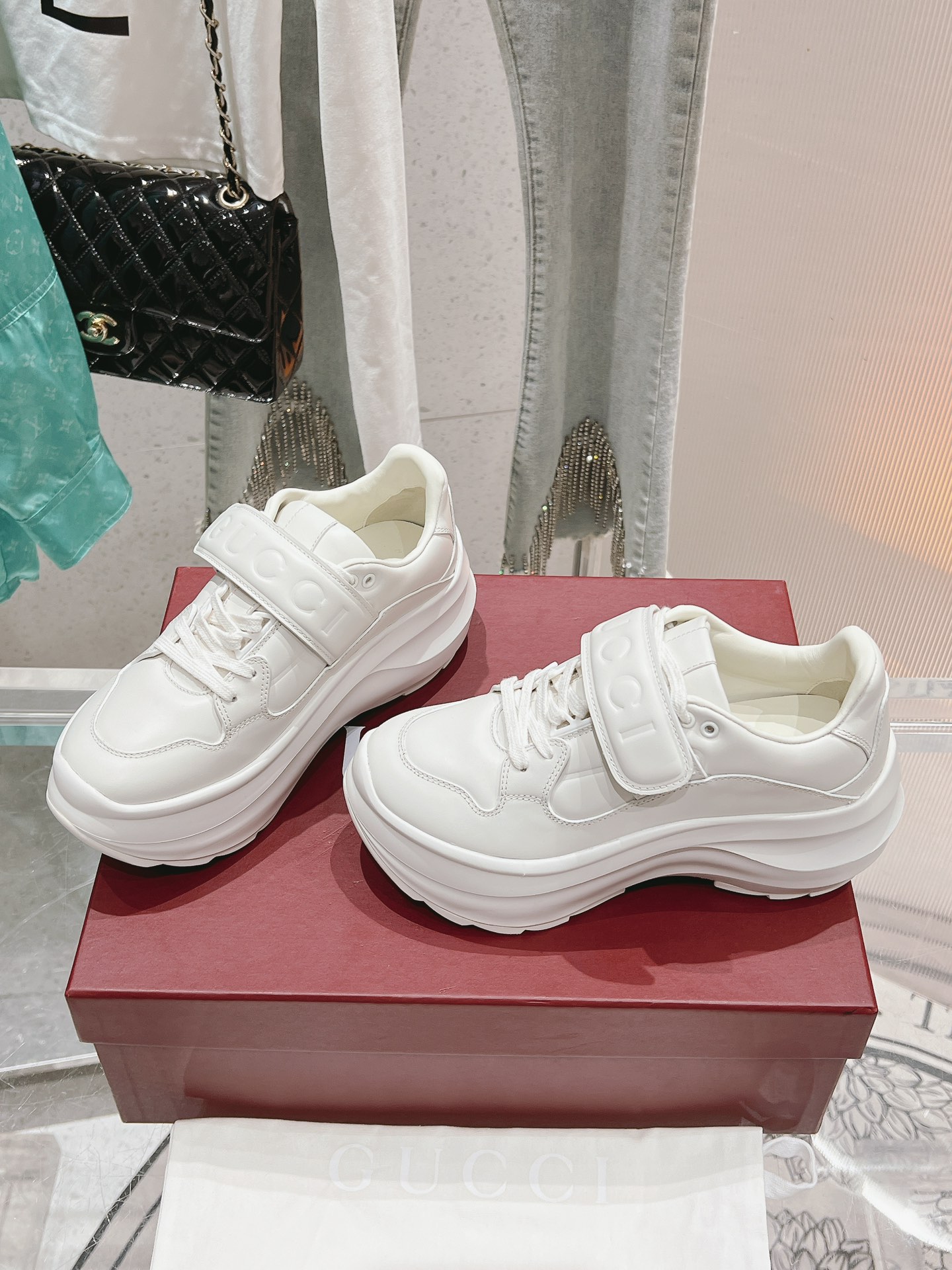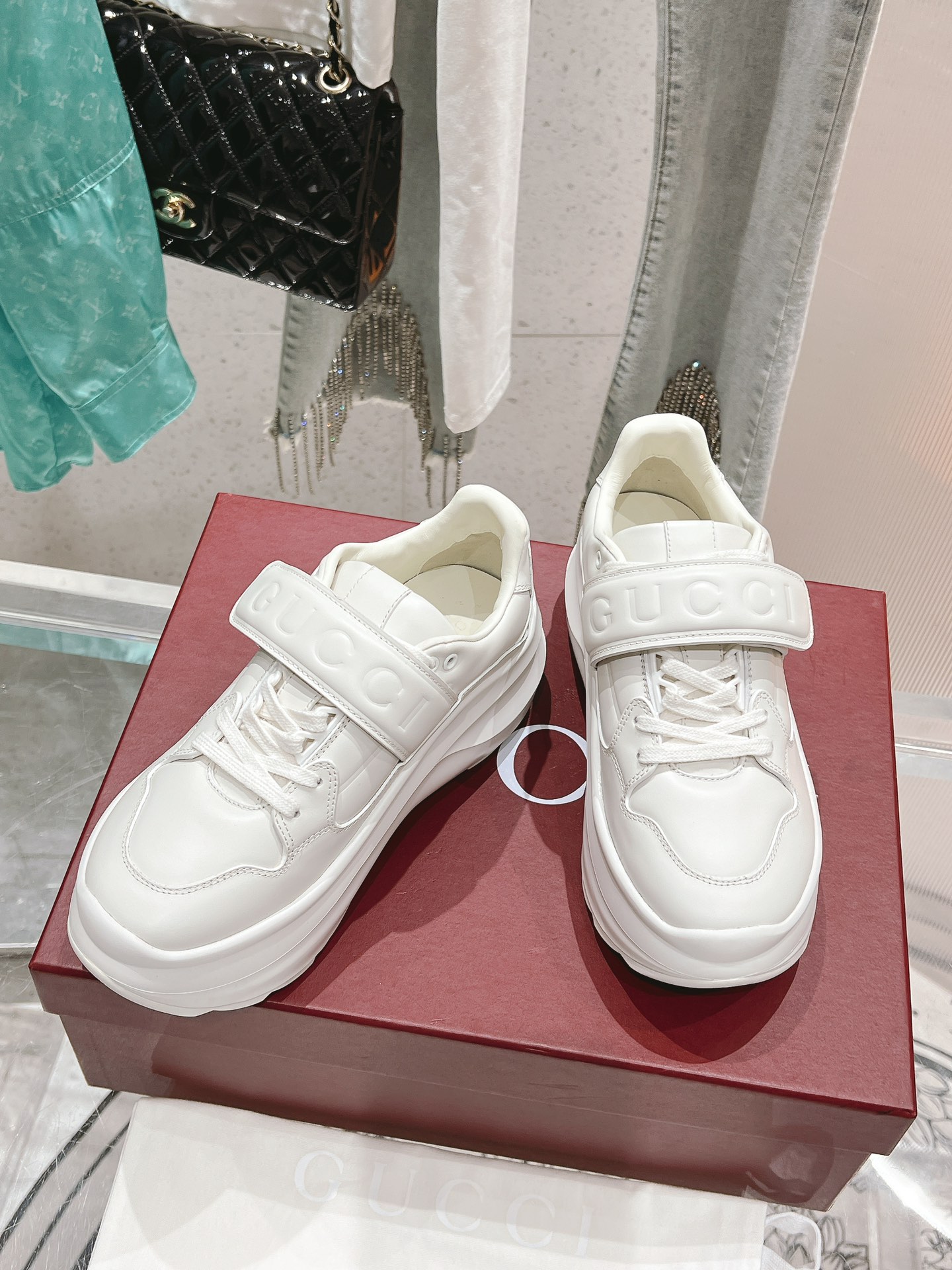 这款鞋子是AAAAA 1:1 质量 (非常棒). 使用了和原版一模一样的材料. 商标部分也保持了和古奇/Gucci一样. 图片拍摄是实物鞋子拍摄, 您所收到的实物保证和我们图片一模一样.