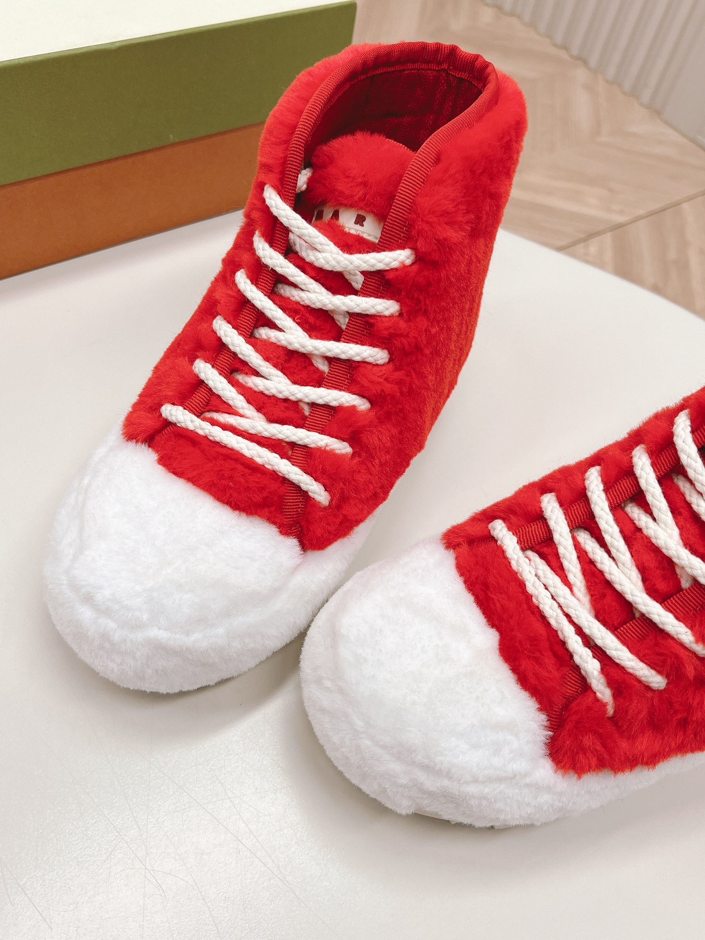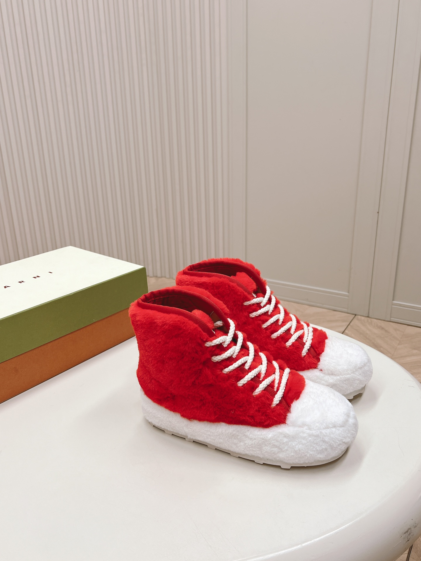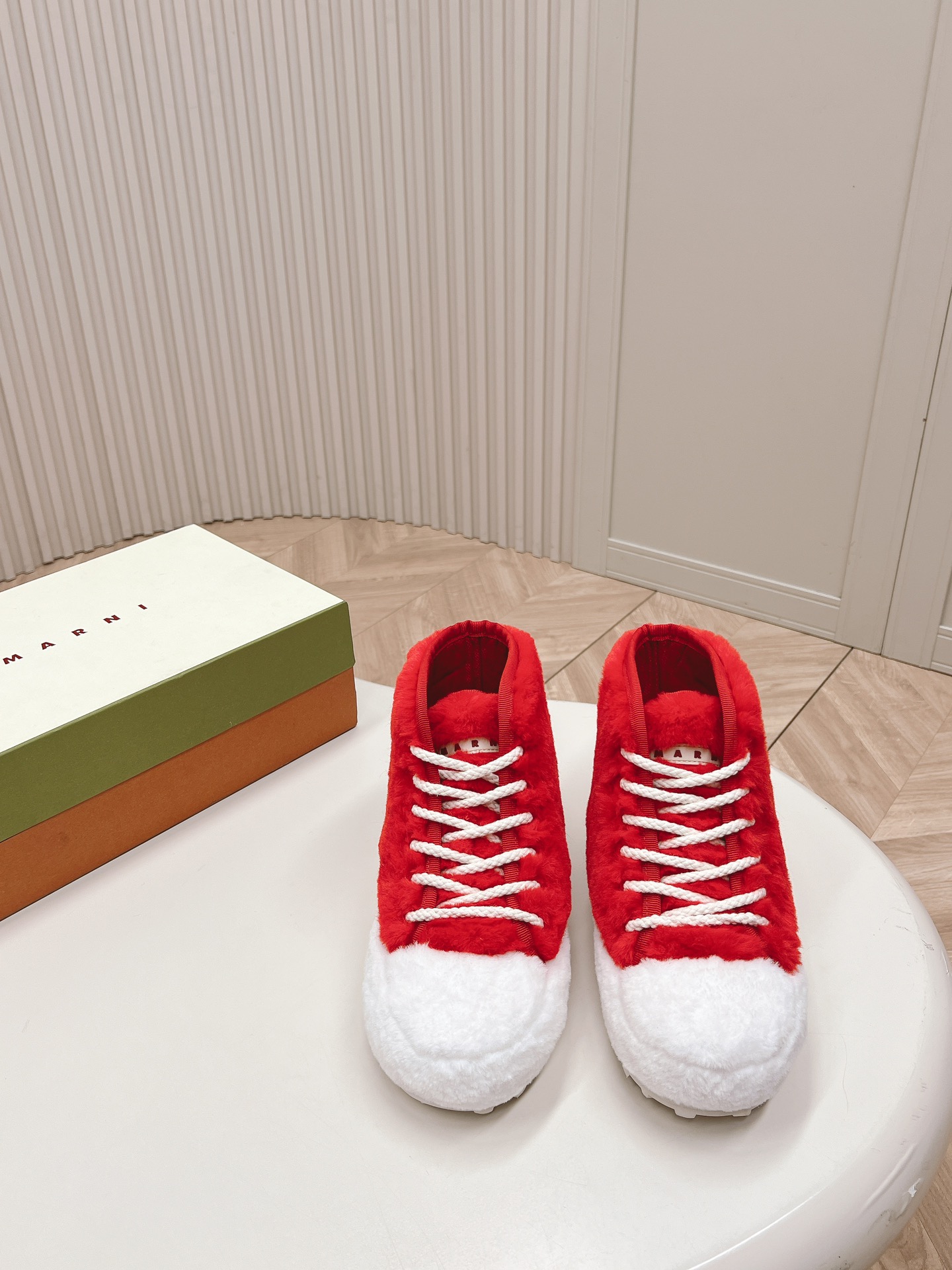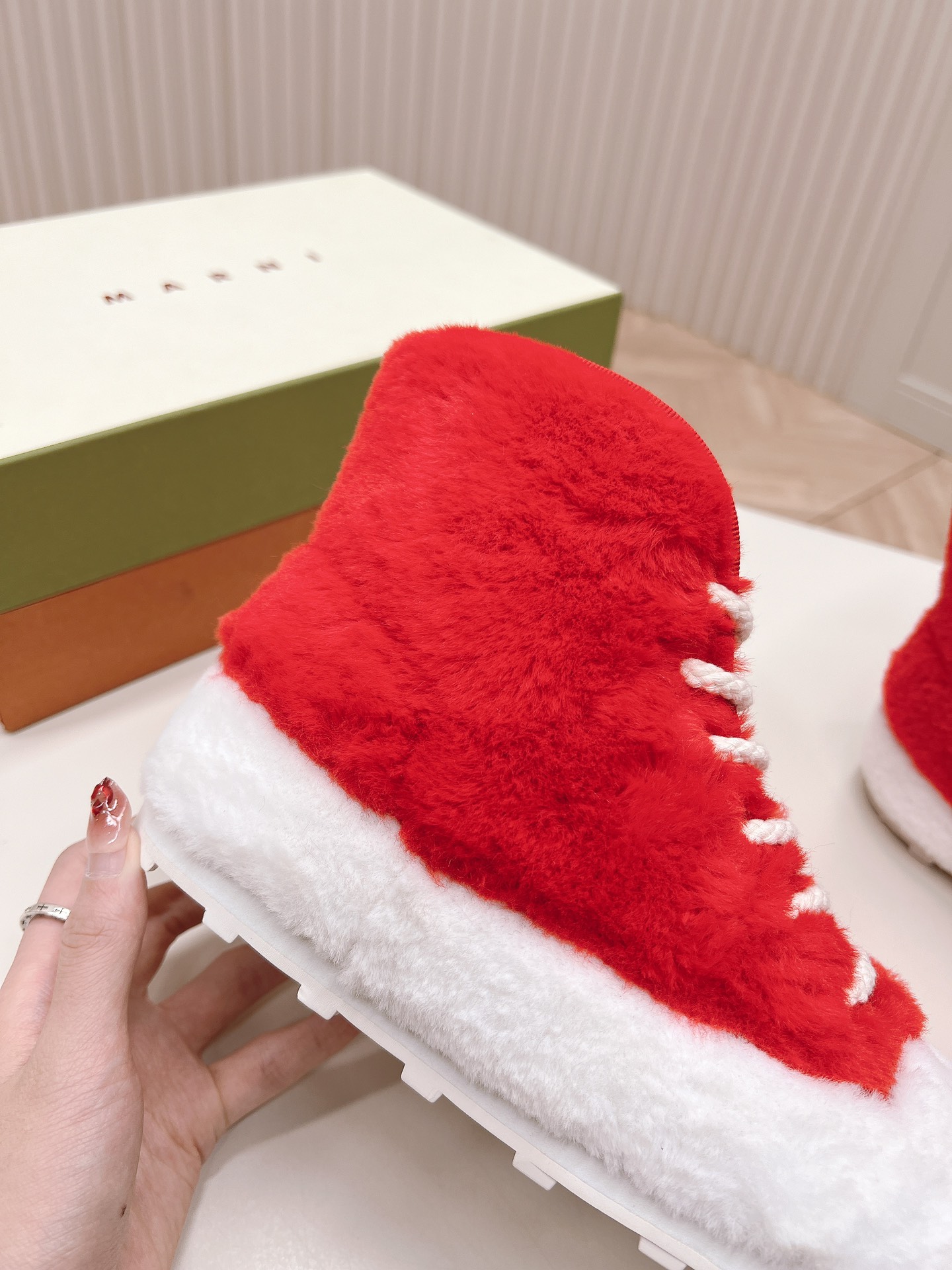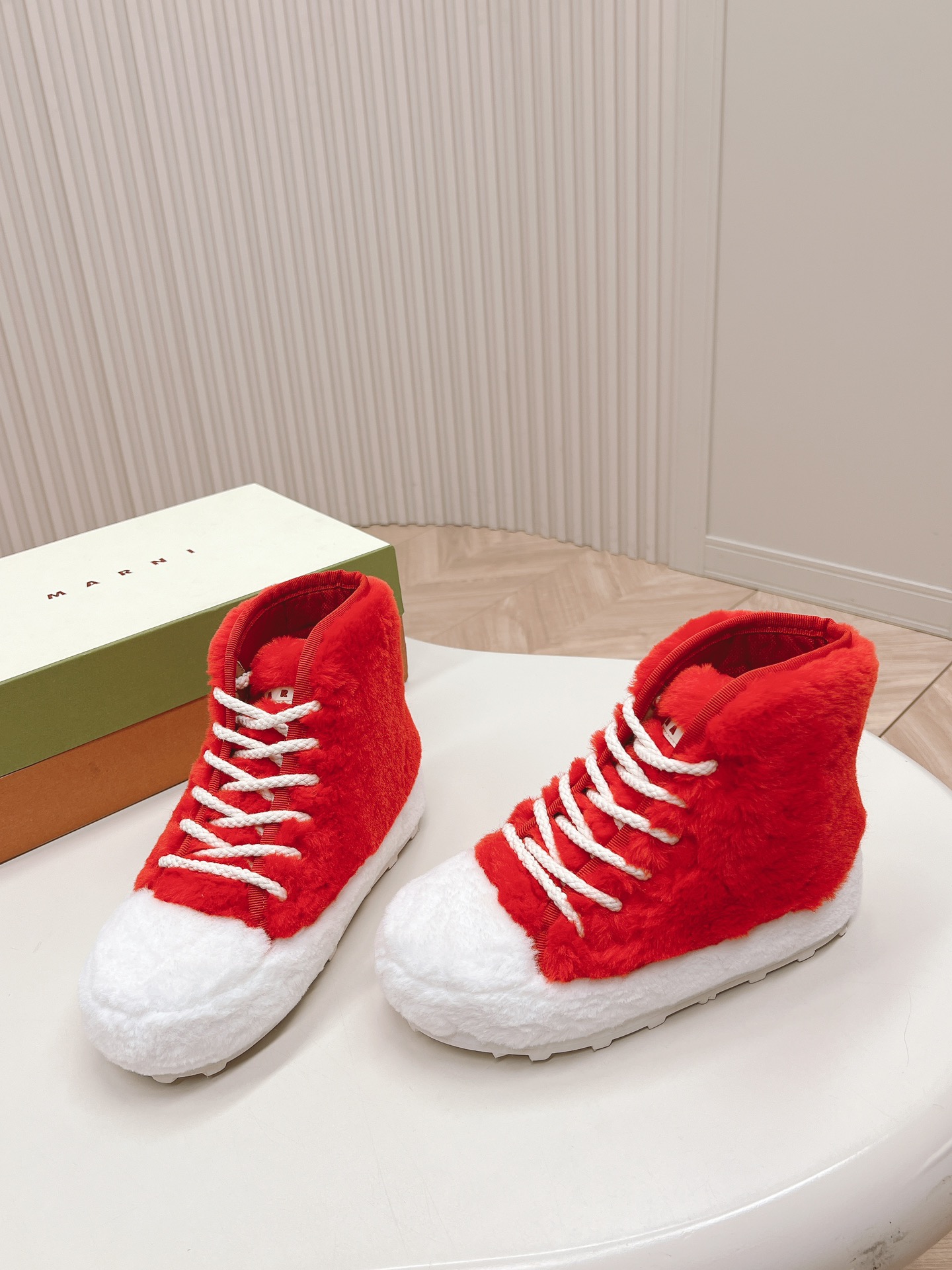 这款鞋子是AAAAA 1:1 质量 (非常棒). 使用了和原版一模一样的材料. 商标部分也保持了和马尔尼/Marni一样. 图片拍摄是实物鞋子拍摄, 您所收到的实物保证和我们图片一模一样.