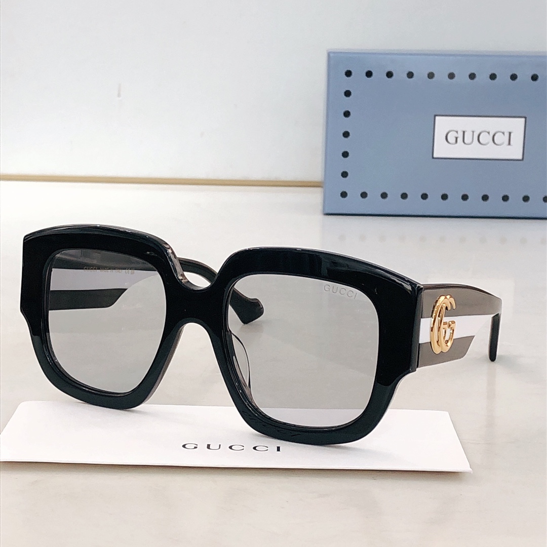 这款太阳眼镜是AAAAA 1:1 质量 (非常棒). 使用了和原版一模一样的材料. 商标部分也保持了和古奇/Gucci一样. 图片拍摄是实物太阳眼镜拍摄, 您所收到的实物保证和我们图片一模一样.