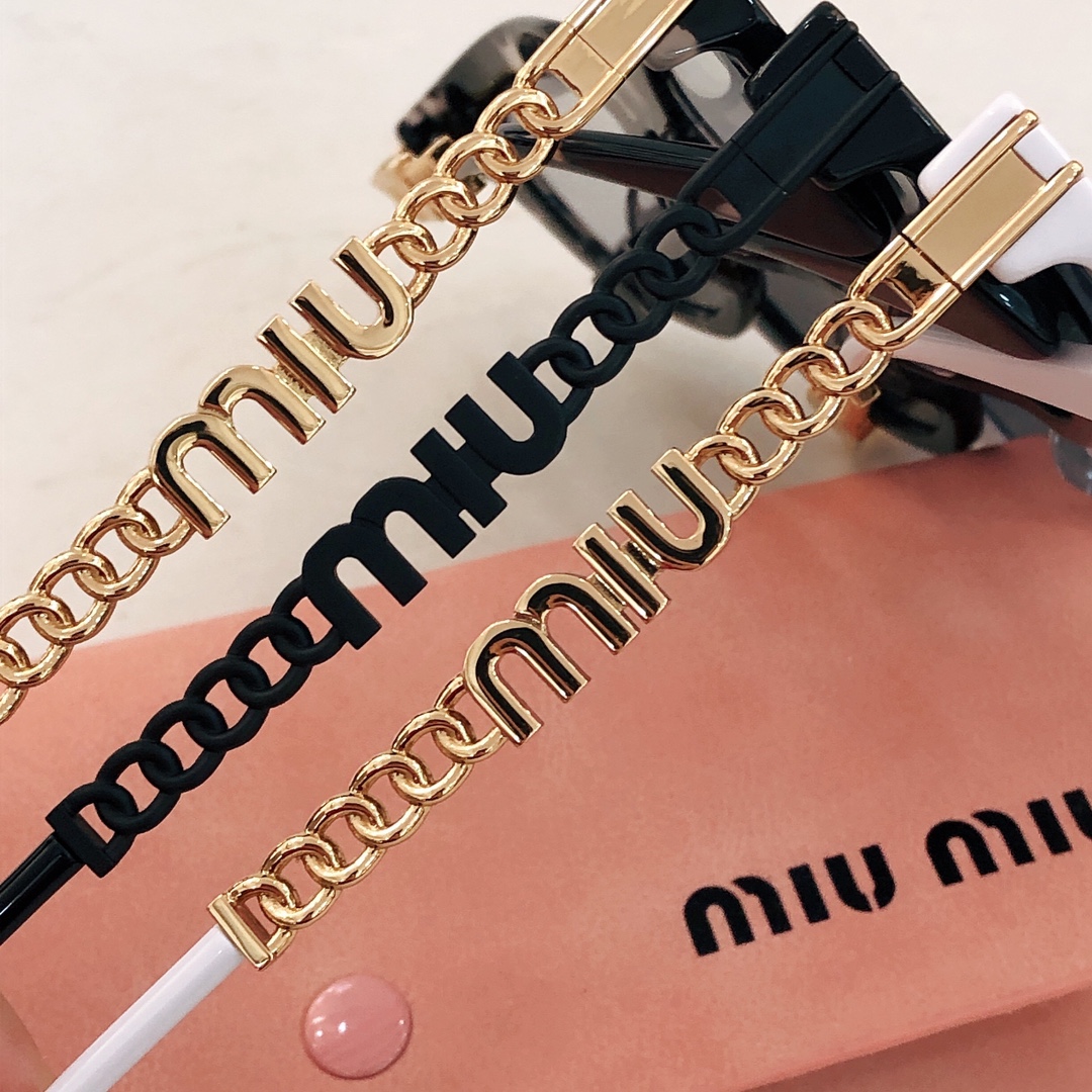 这款太阳眼镜是AAAAA 1:1 质量 (非常棒). 使用了和原版一模一样的材料. 商标部分也保持了和缪缪/Miu Miu一样. 图片拍摄是实物太阳眼镜拍摄, 您所收到的实物保证和我们图片一模一样.