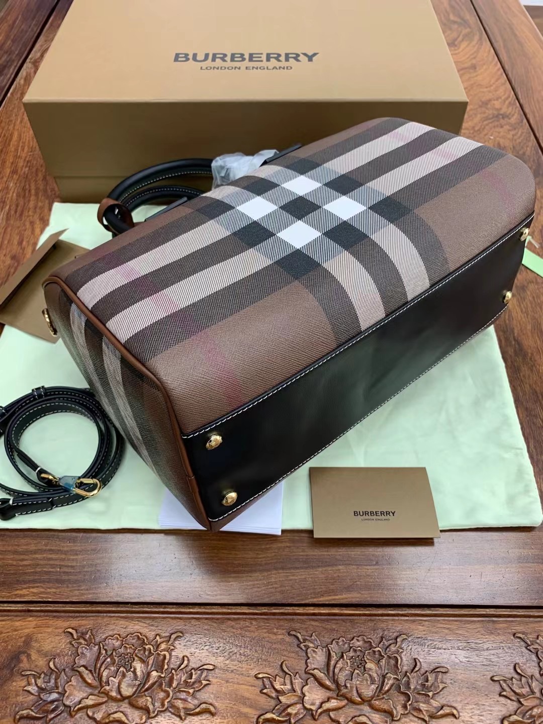 这款包包是AAAAA 1:1 质量 (非常棒). 使用了和原版一模一样的材料. 商标部分也保持了和巴宝莉/Burberry一样. 图片拍摄是实物包包拍摄, 您所收到的实物保证和我们图片一模一样.