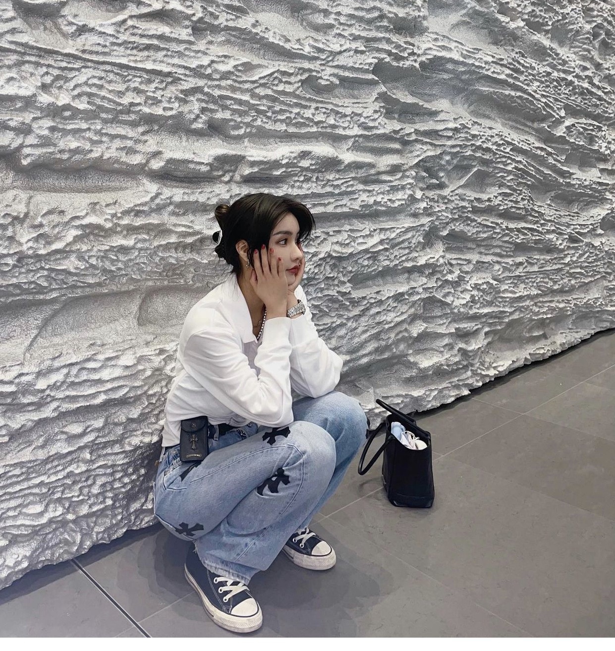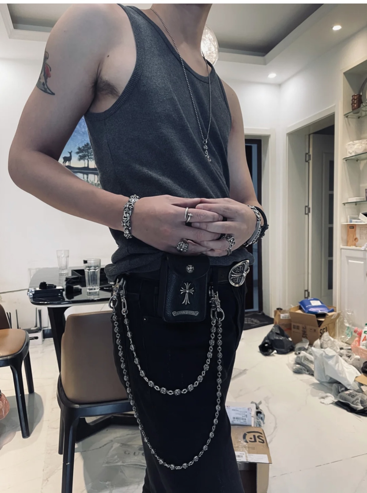 这款包包是AAAAA 1:1 质量 (非常棒). 使用了和原版一模一样的材料. 商标部分也保持了和克罗心/Chrome Hearts一样. 图片拍摄是实物包包拍摄, 您所收到的实物保证和我们图片一模一样.