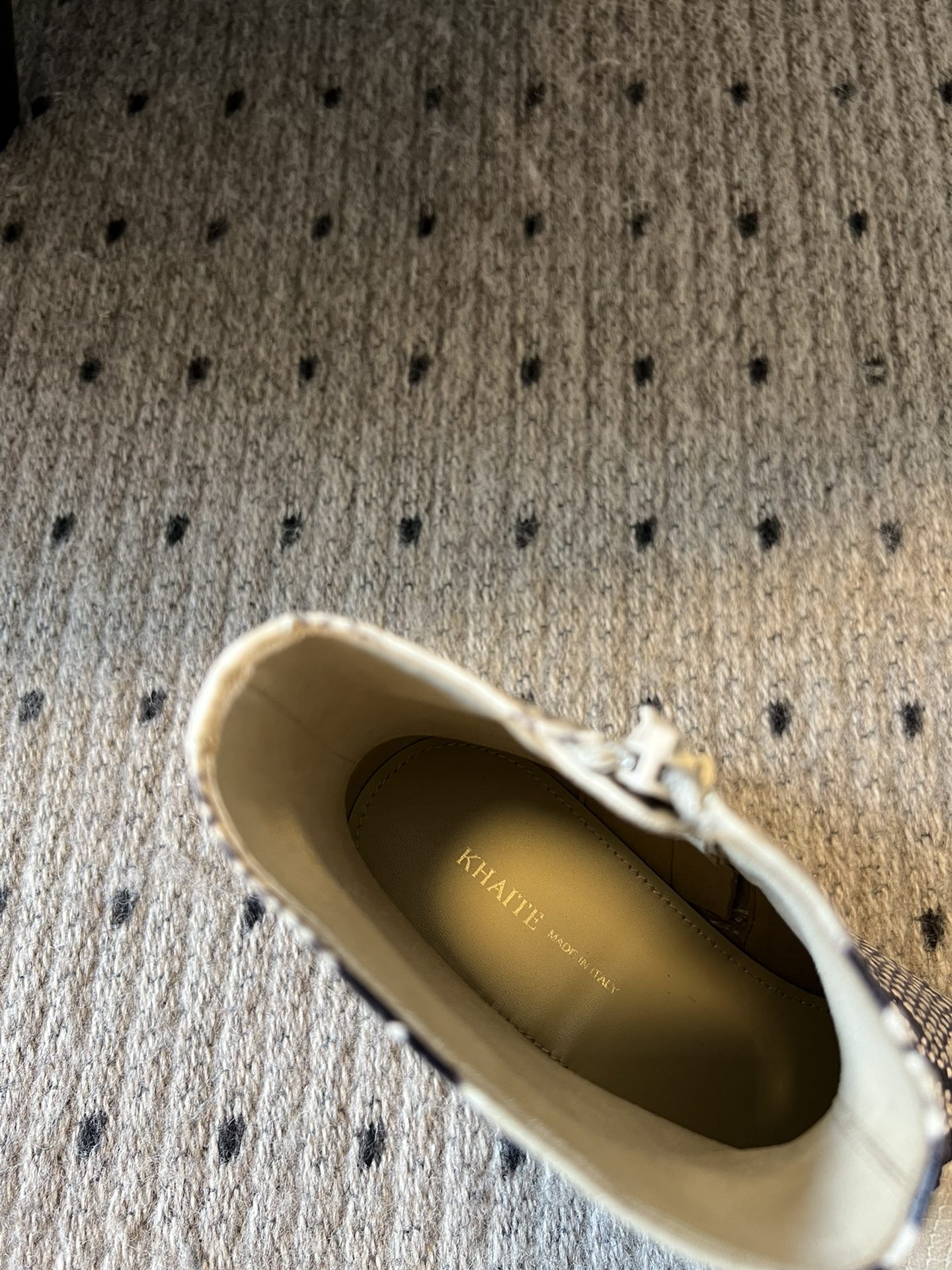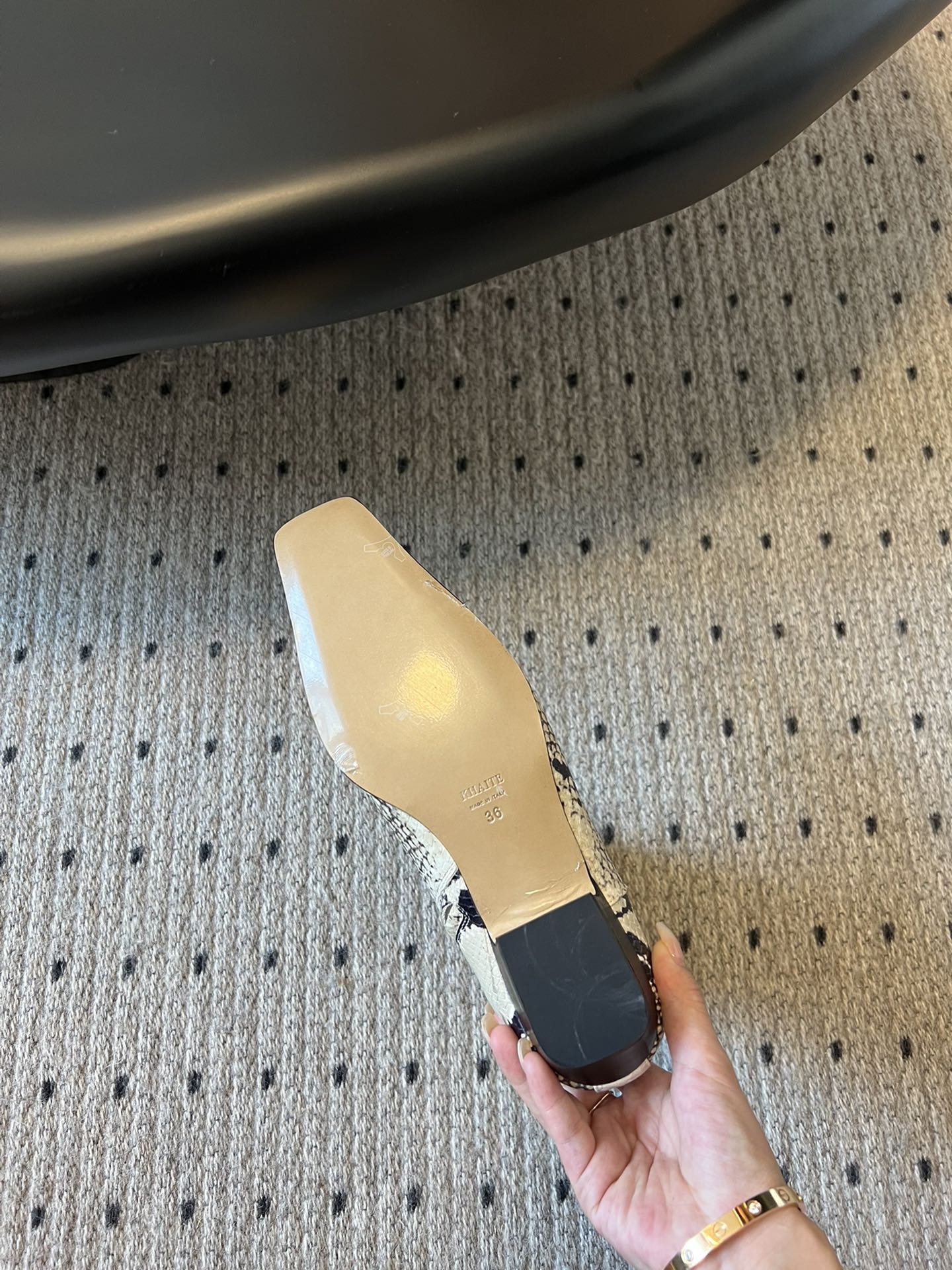 这款鞋子是AAAAA 1:1 质量 (非常棒). 使用了和原版一模一样的材料. 商标部分也保持了和Khaite一样. 图片拍摄是实物鞋子拍摄, 您所收到的实物保证和我们图片一模一样.