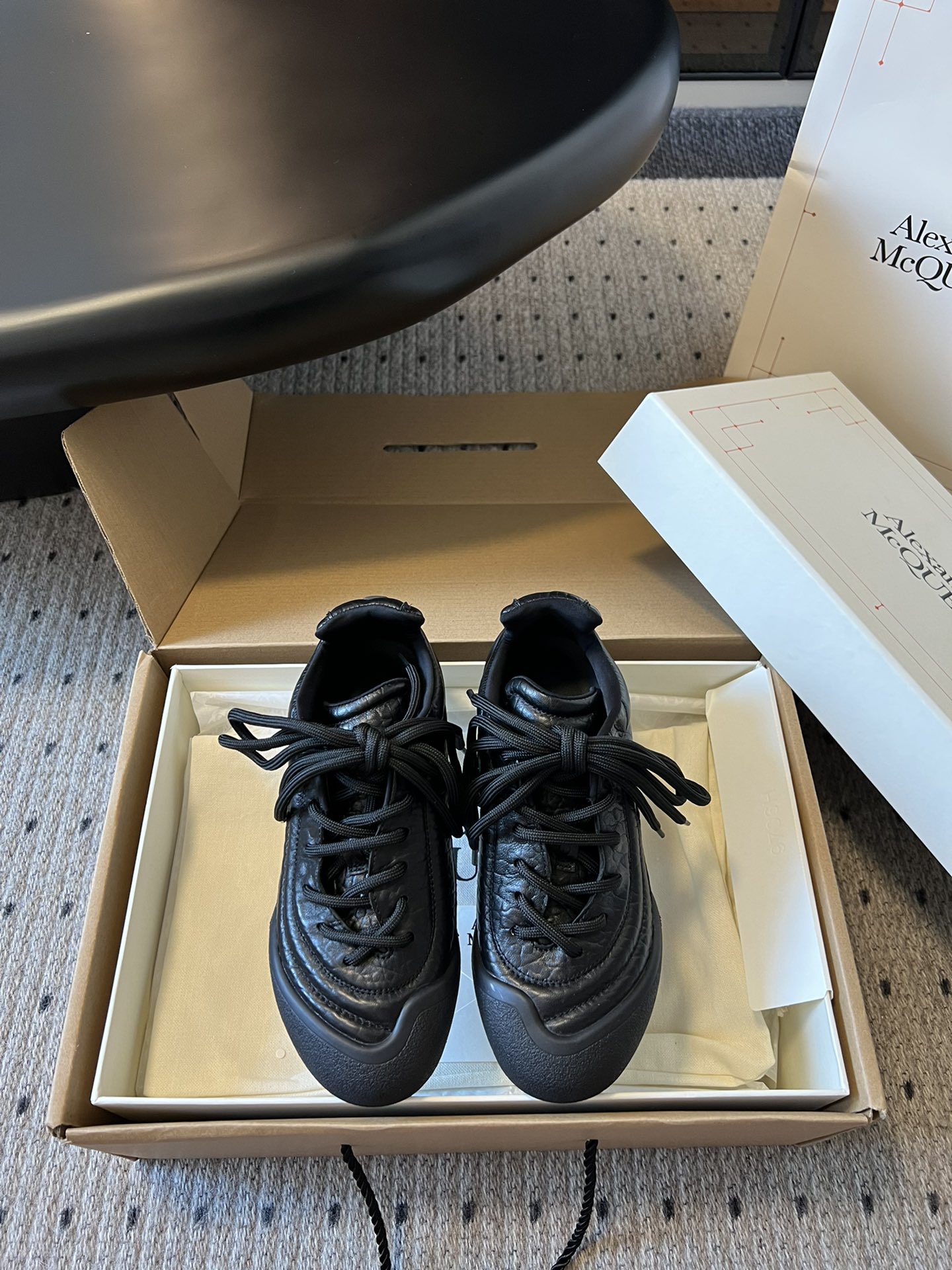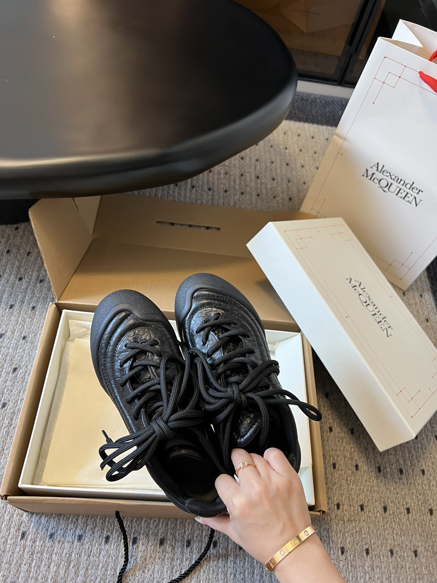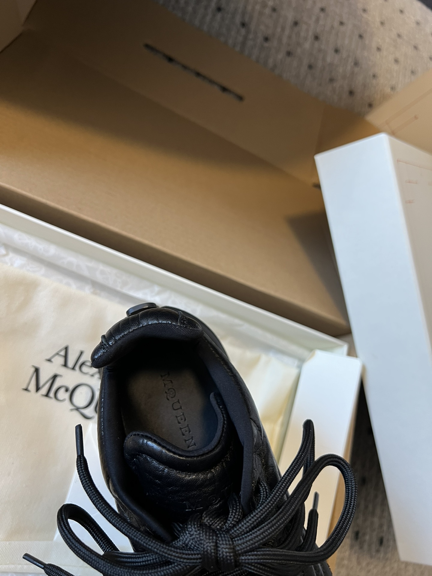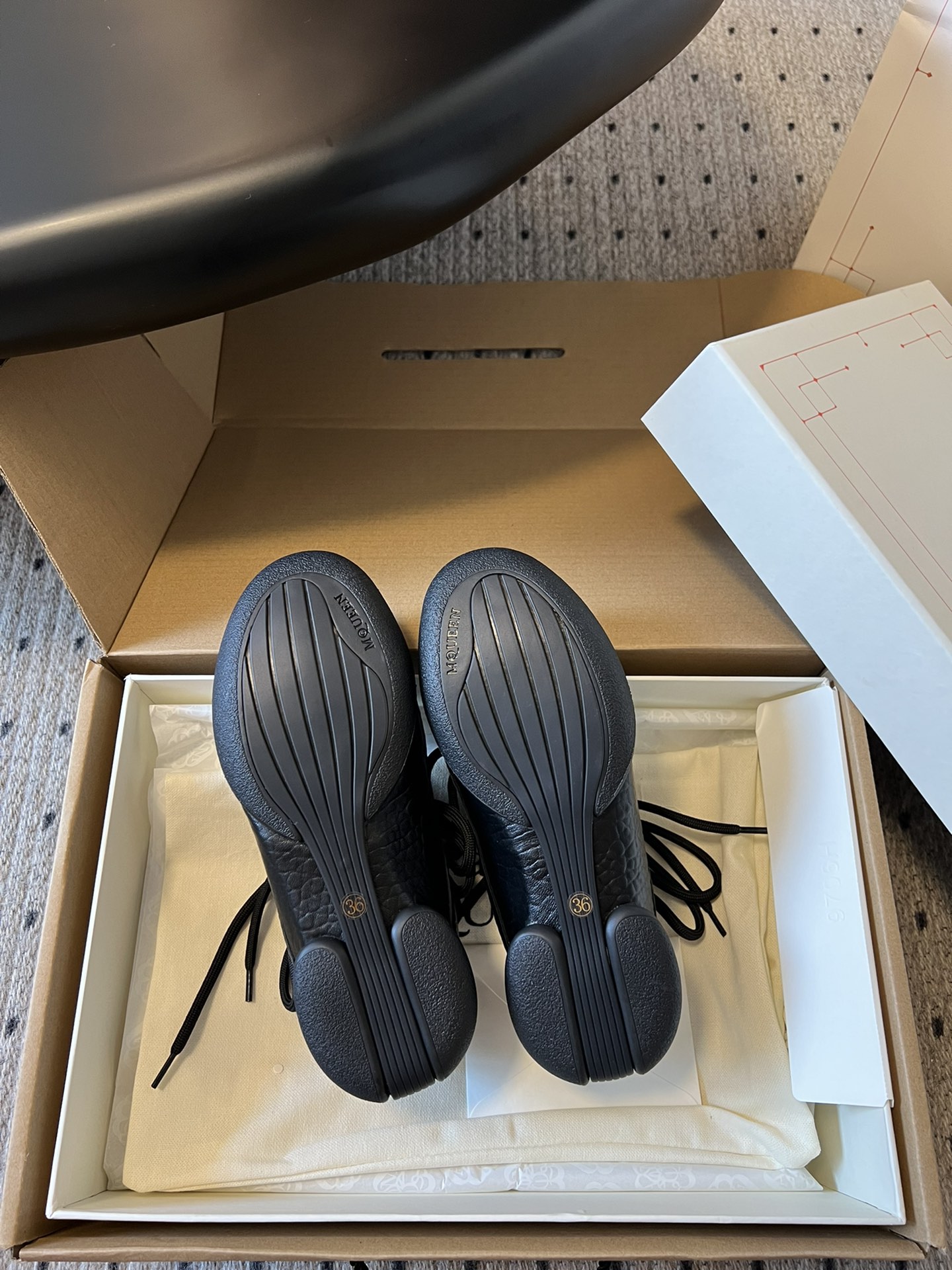 这款鞋子是AAAAA 1:1 质量 (非常棒). 使用了和原版一模一样的材料. 商标部分也保持了和亚历山大·麦昆/McQueen一样. 图片拍摄是实物鞋子拍摄, 您所收到的实物保证和我们图片一模一样.
