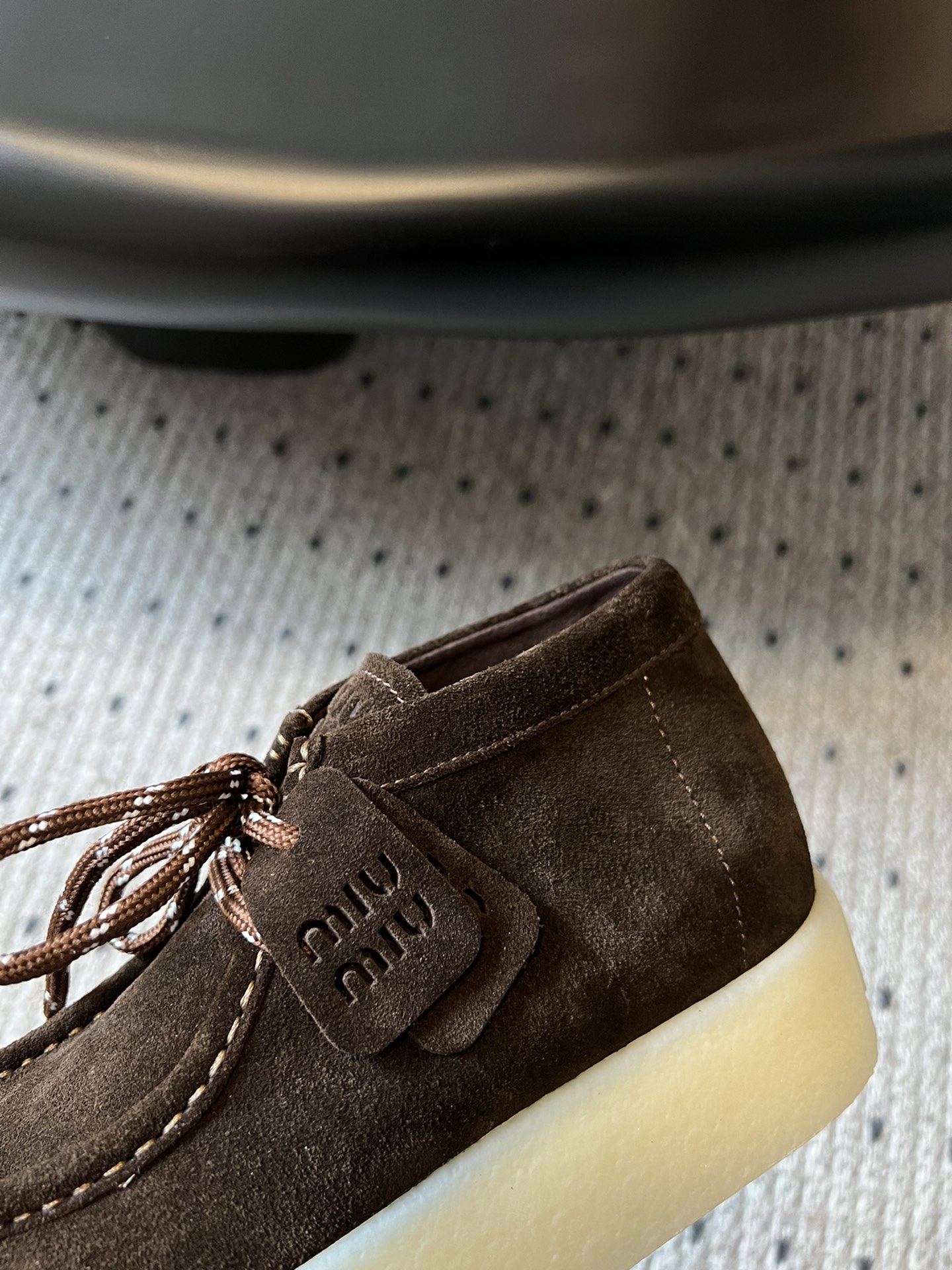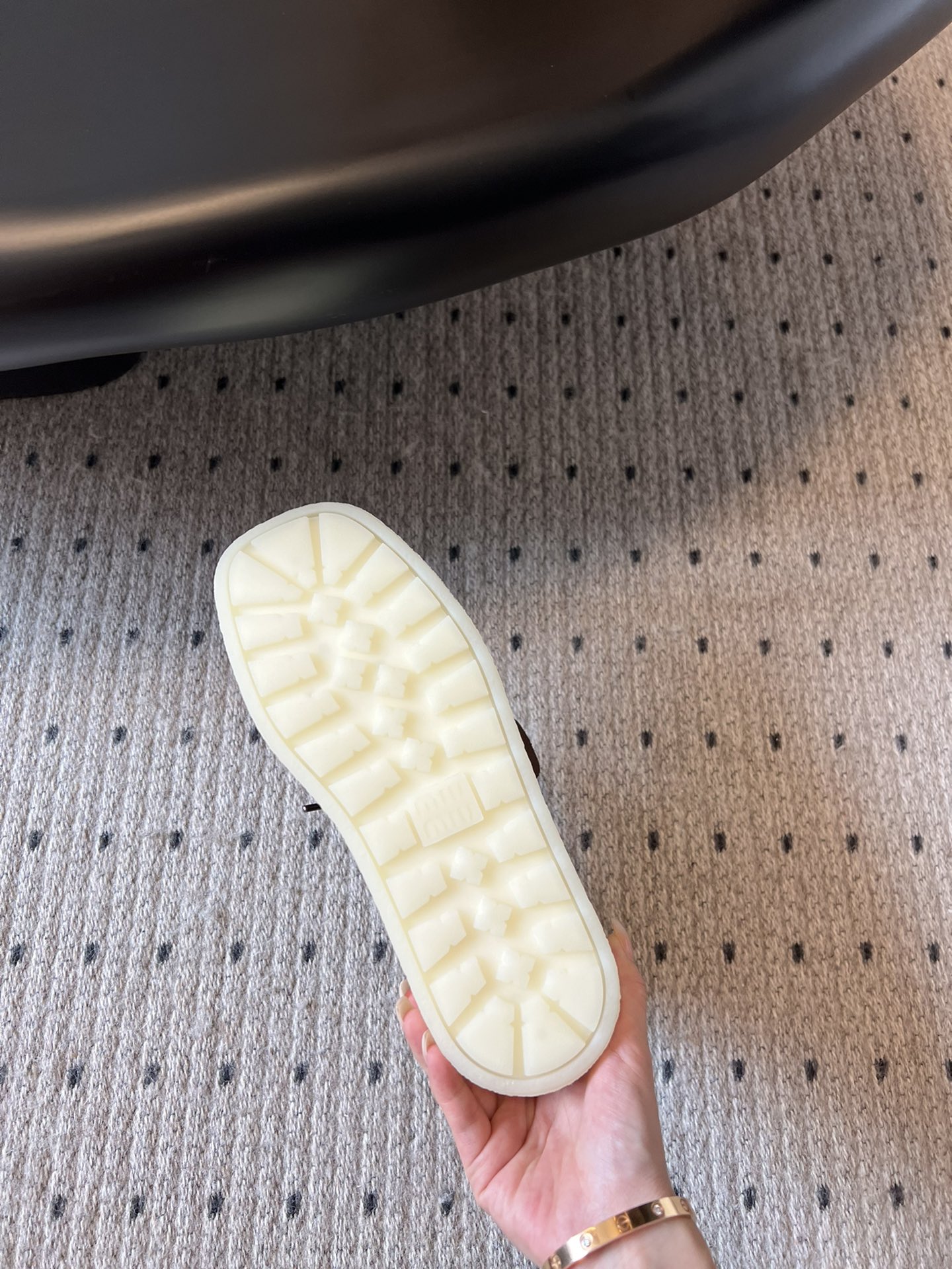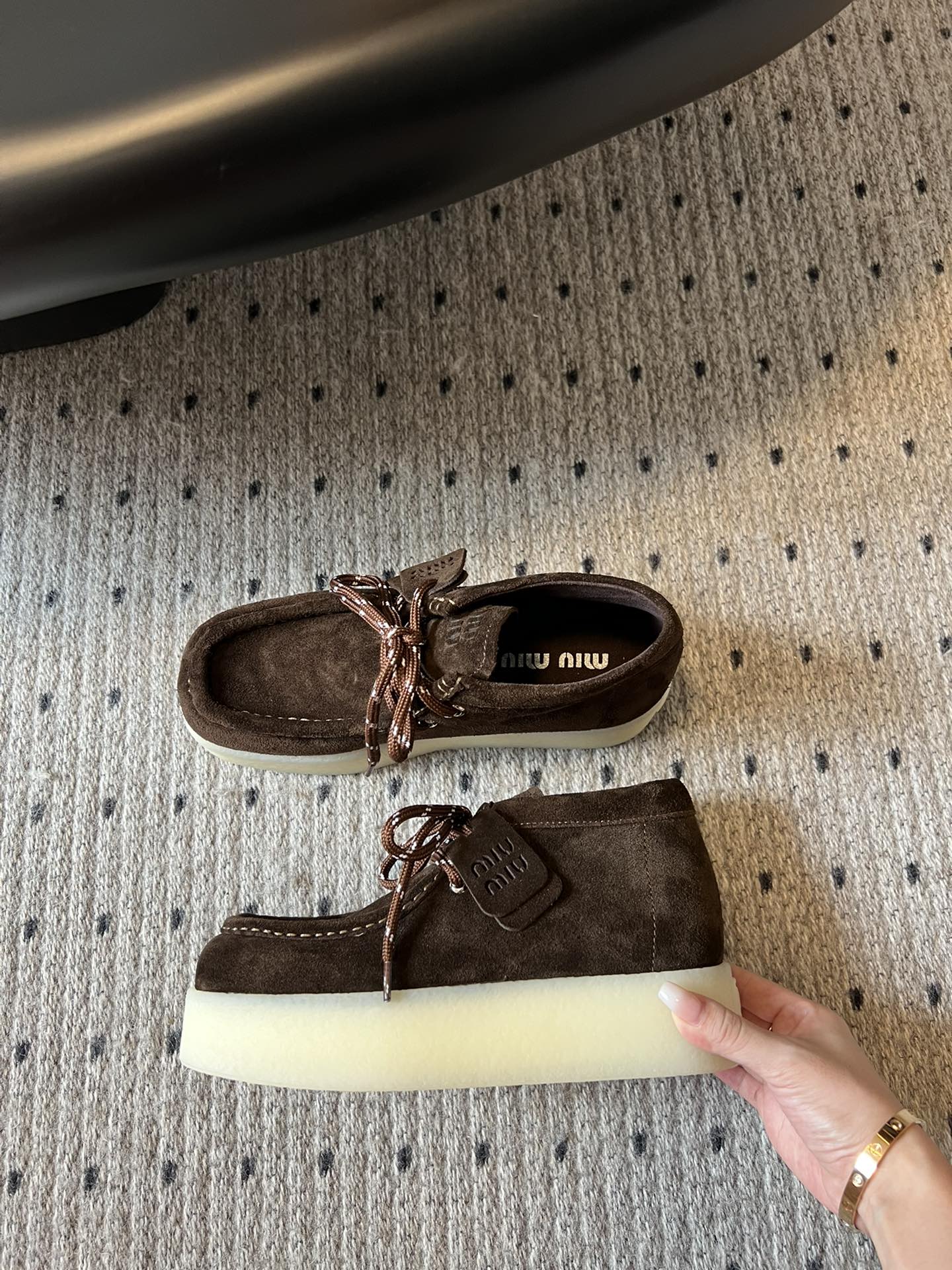 这款鞋子是AAAAA 1:1 质量 (非常棒). 使用了和原版一模一样的材料. 商标部分也保持了和缪缪/Miu Miu一样. 图片拍摄是实物鞋子拍摄, 您所收到的实物保证和我们图片一模一样.