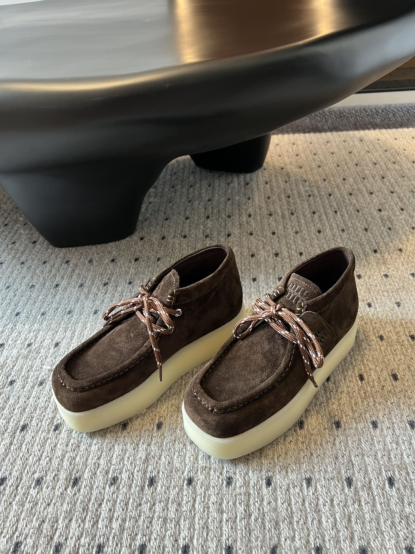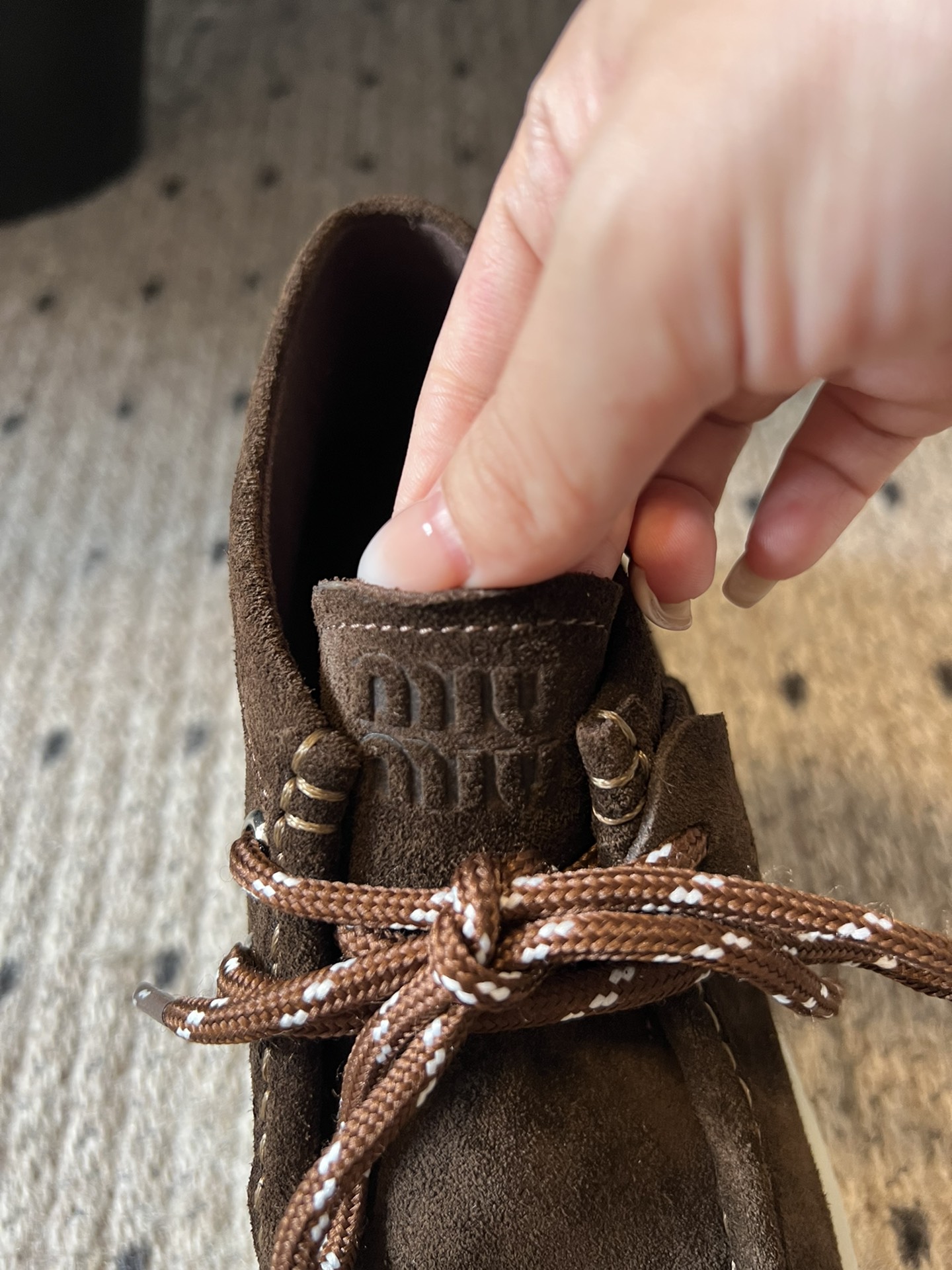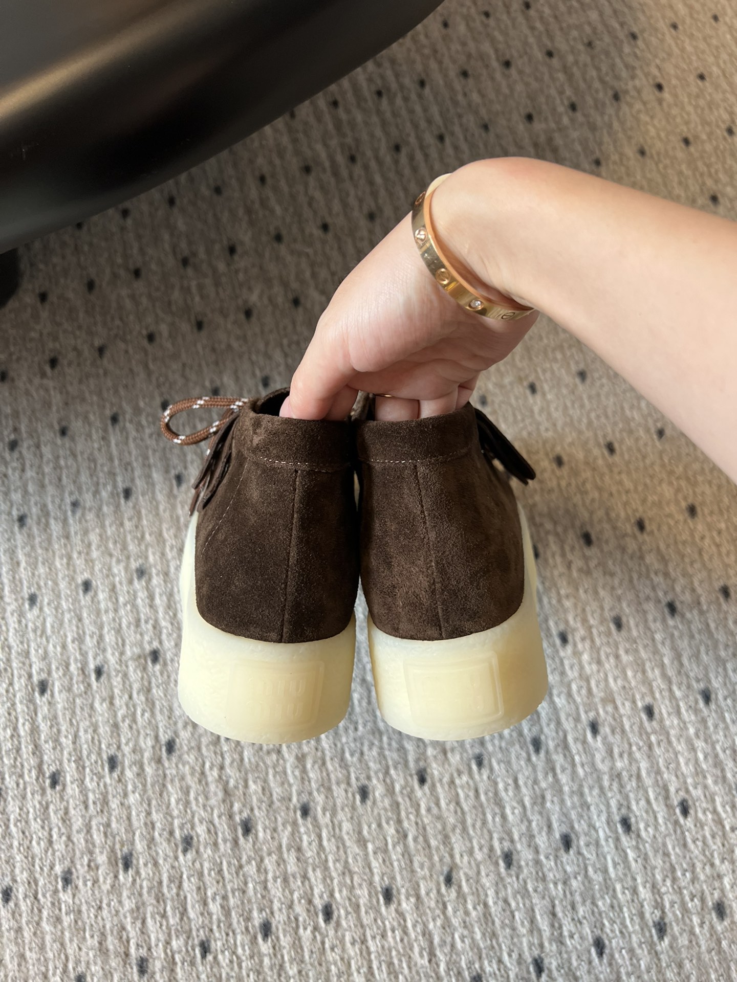 这款鞋子是AAAAA 1:1 质量 (非常棒). 使用了和原版一模一样的材料. 商标部分也保持了和缪缪/Miu Miu一样. 图片拍摄是实物鞋子拍摄, 您所收到的实物保证和我们图片一模一样.