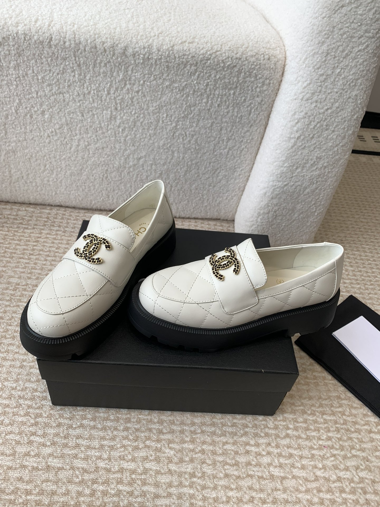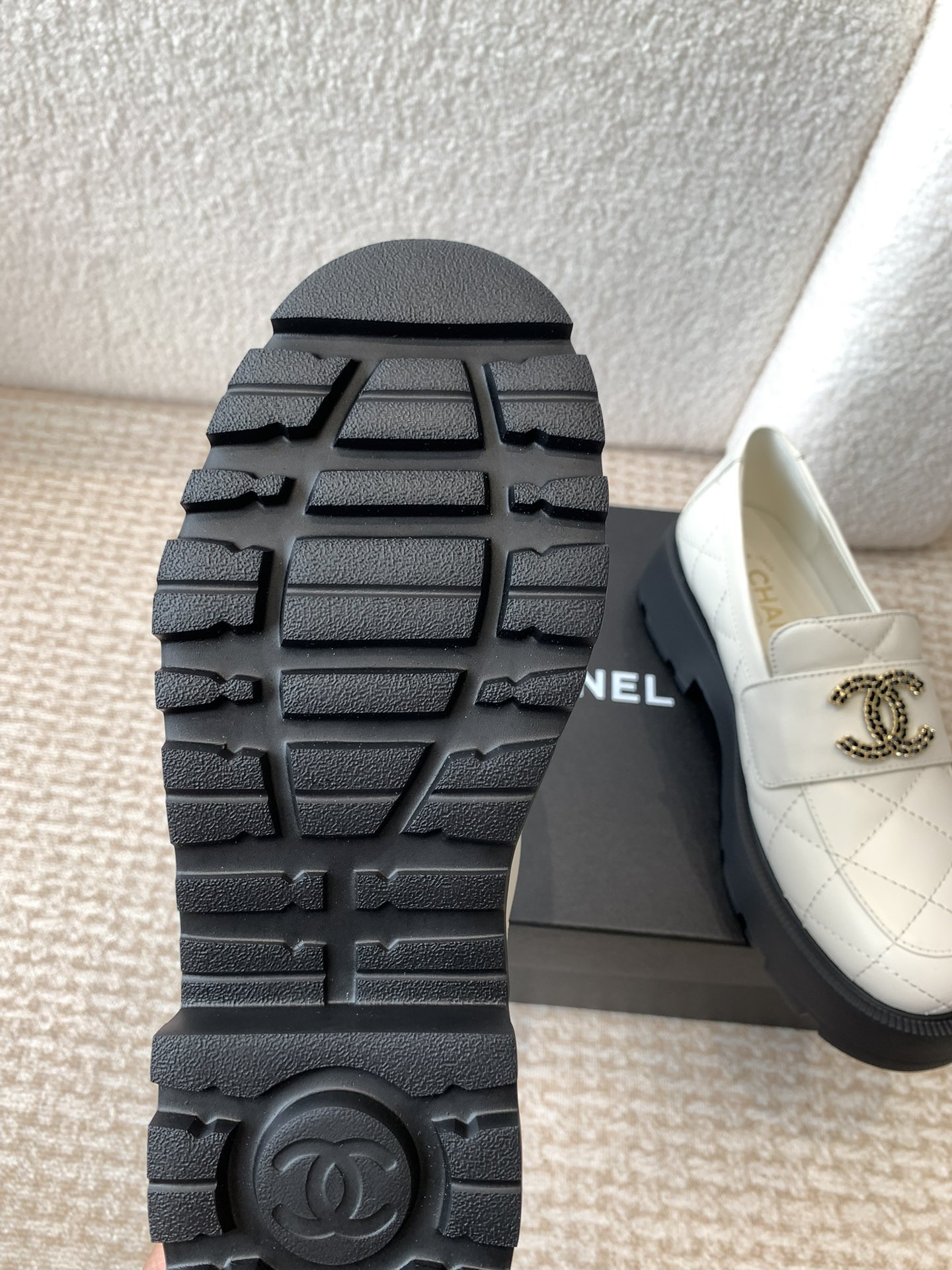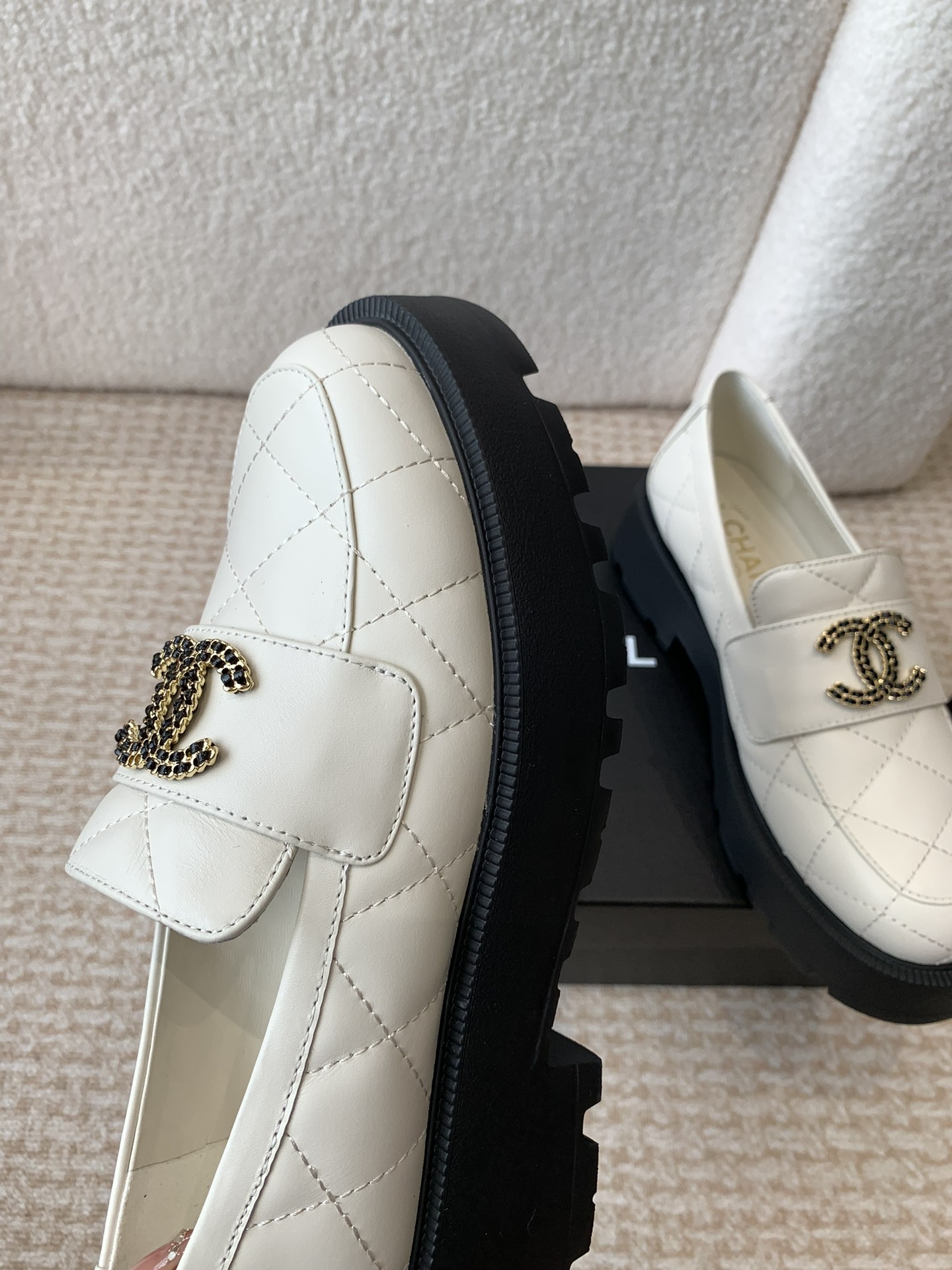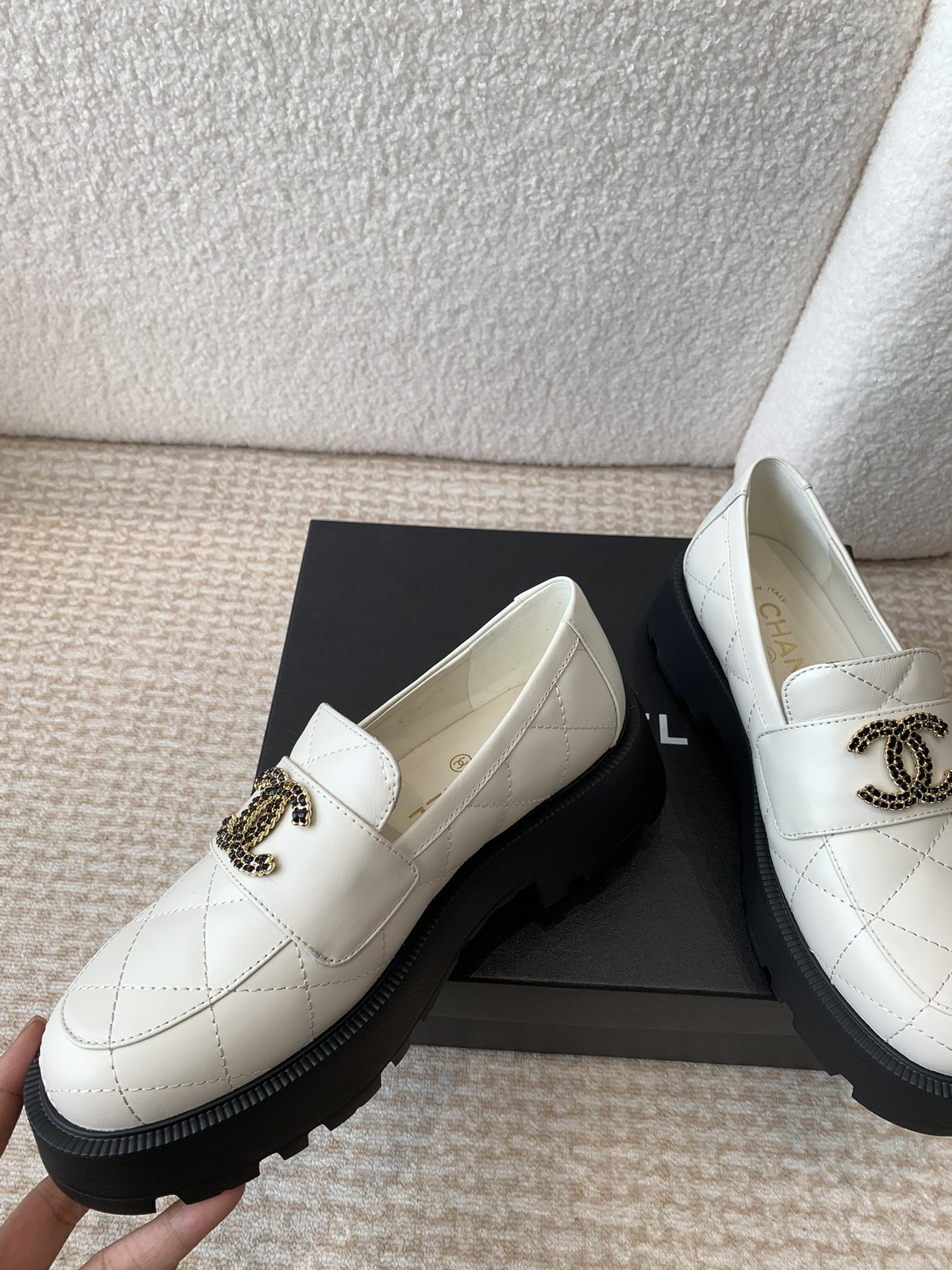 这款鞋子是AAAAA 1:1 质量 (非常棒). 使用了和原版一模一样的材料. 商标部分也保持了和香奈儿/Chanel一样. 图片拍摄是实物鞋子拍摄, 您所收到的实物保证和我们图片一模一样.