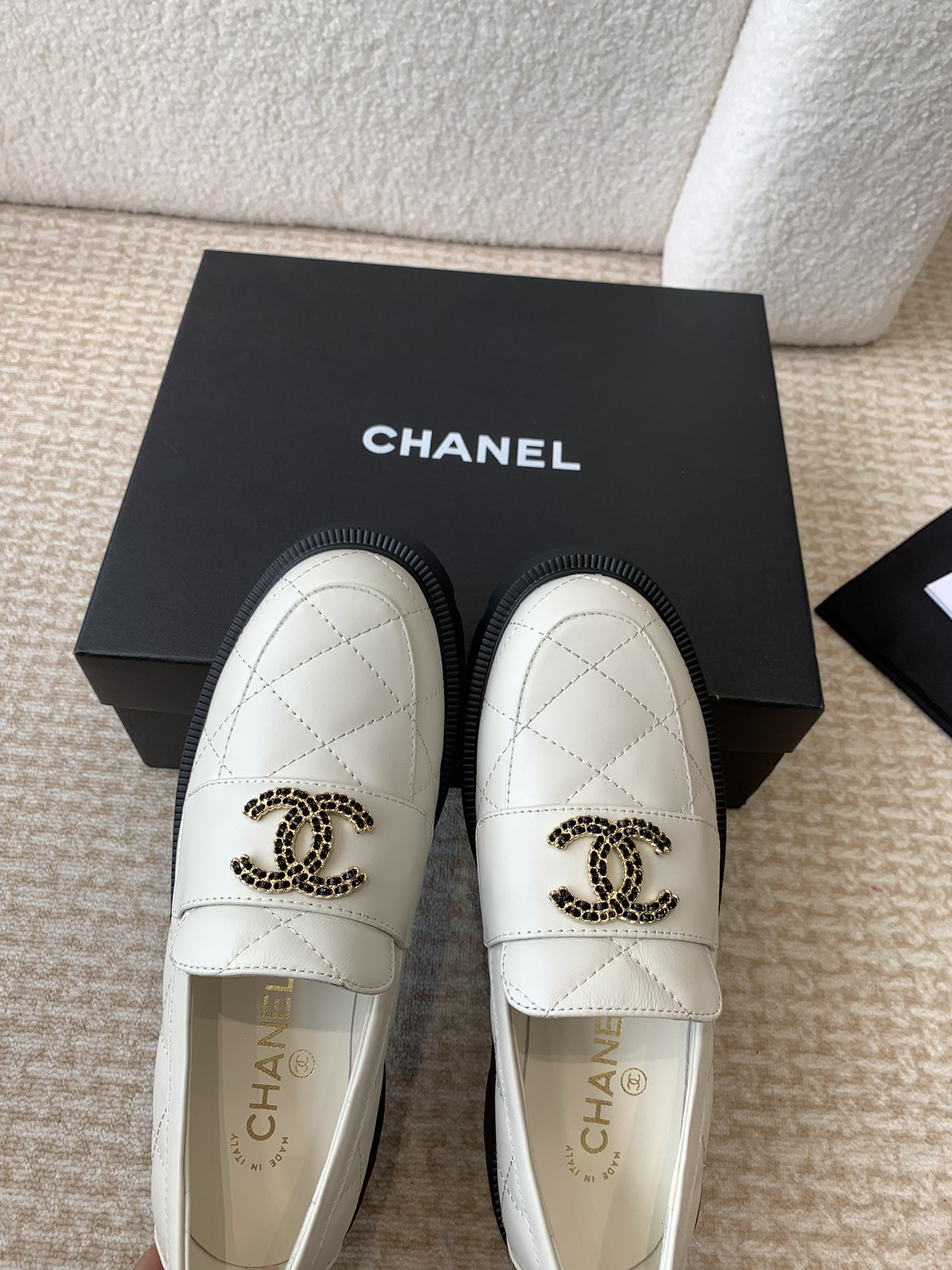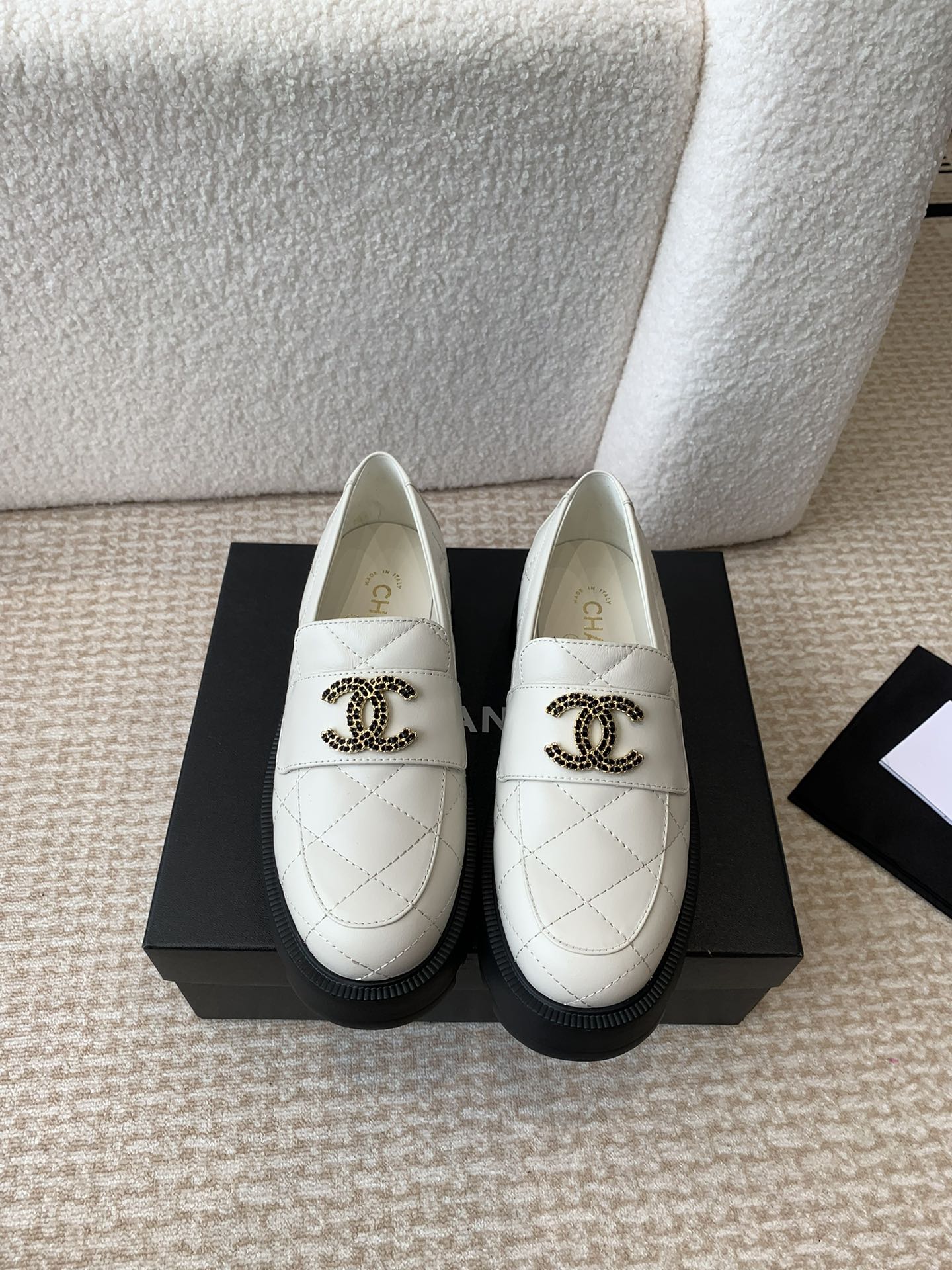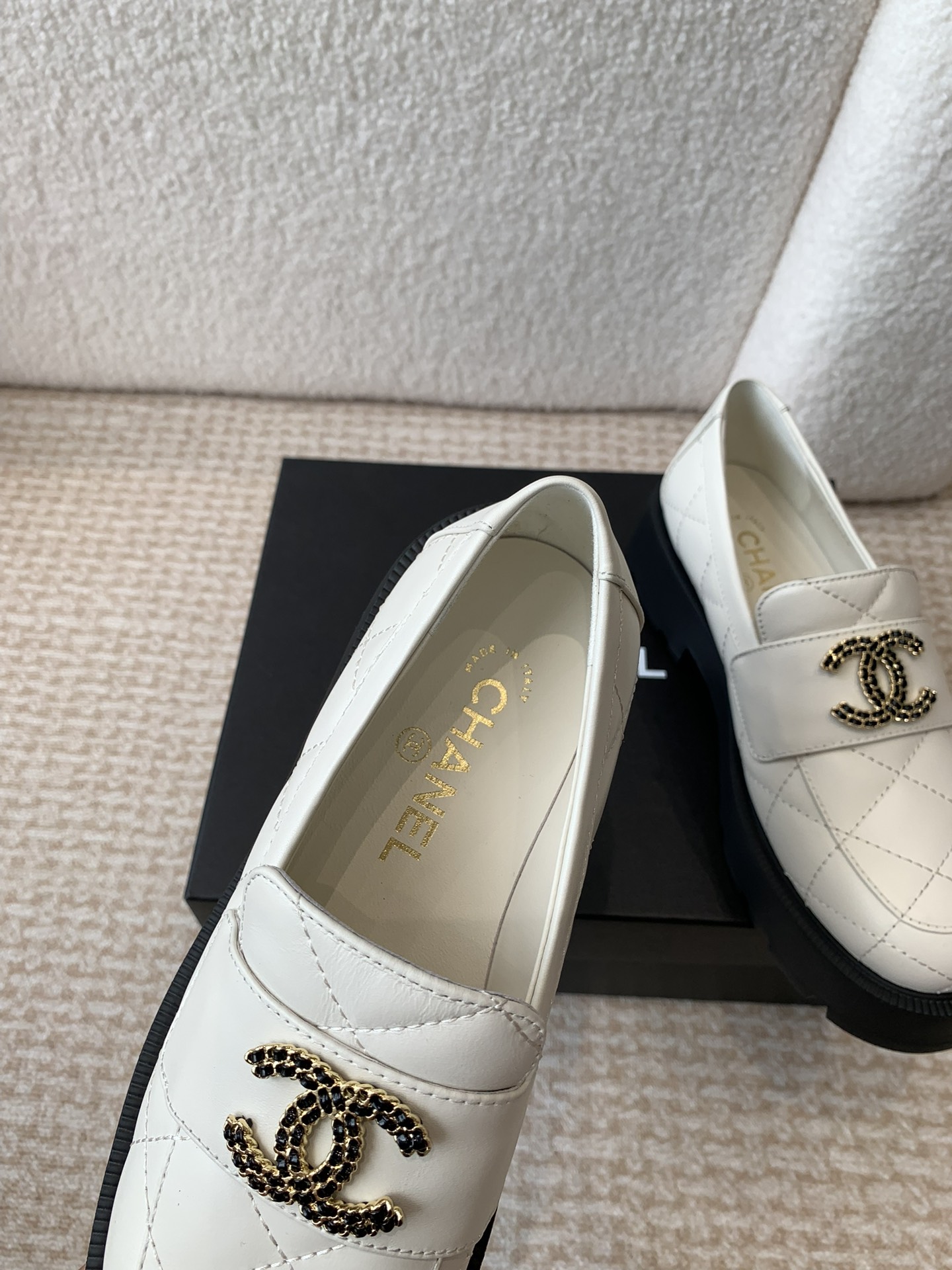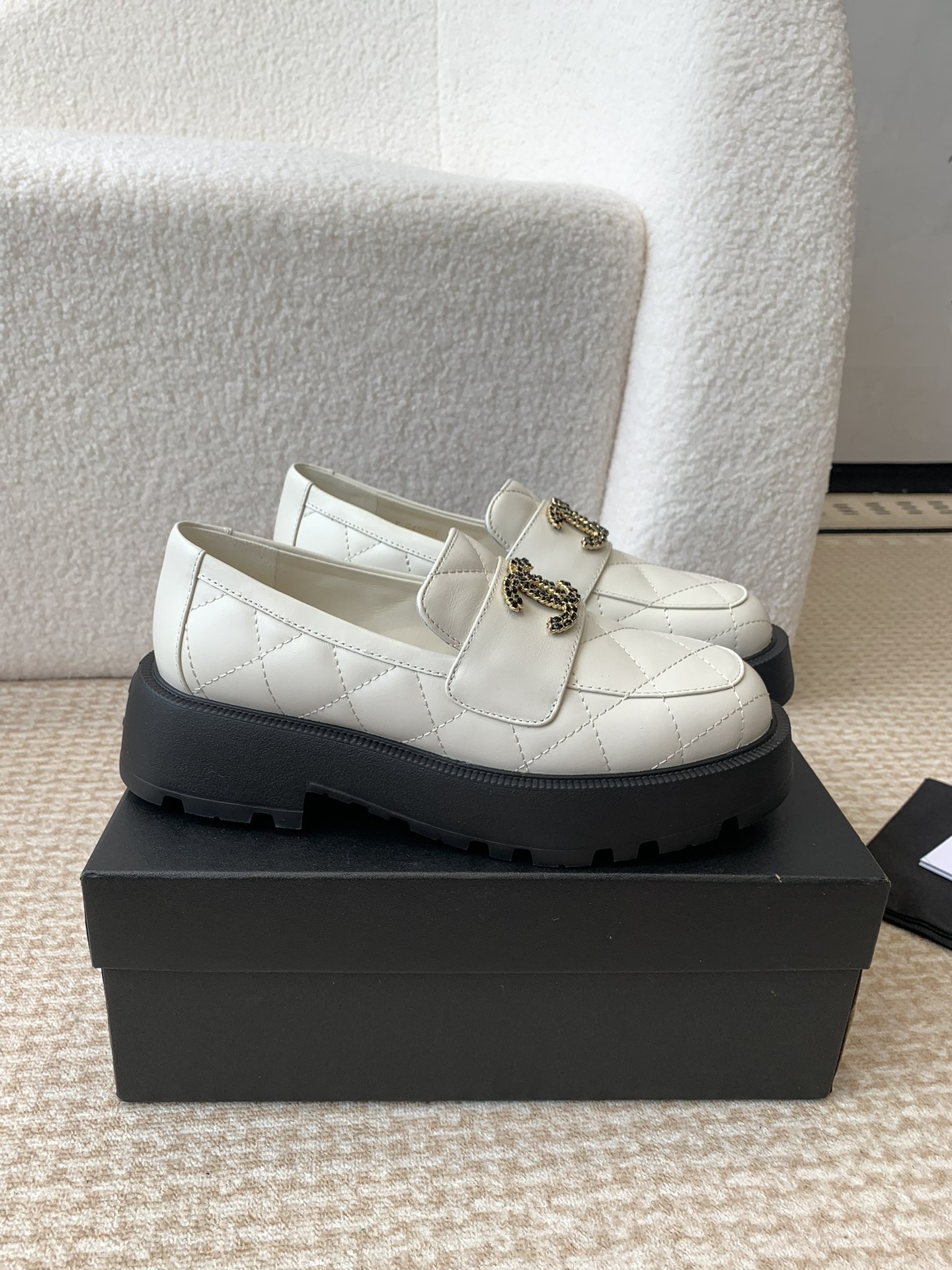 这款鞋子是AAAAA 1:1 质量 (非常棒). 使用了和原版一模一样的材料. 商标部分也保持了和香奈儿/Chanel一样. 图片拍摄是实物鞋子拍摄, 您所收到的实物保证和我们图片一模一样.