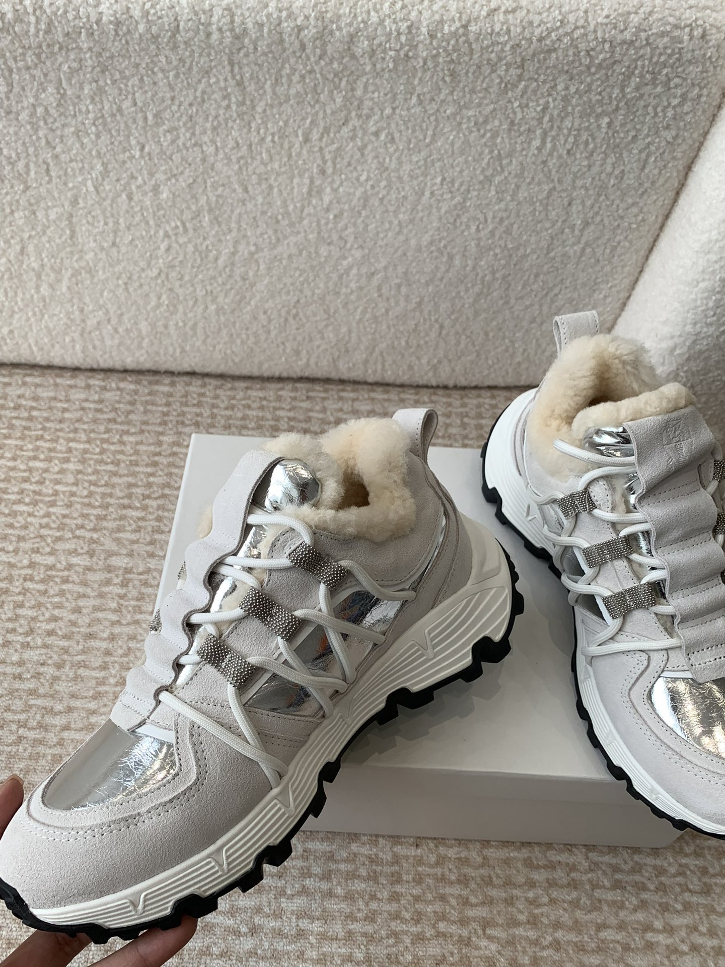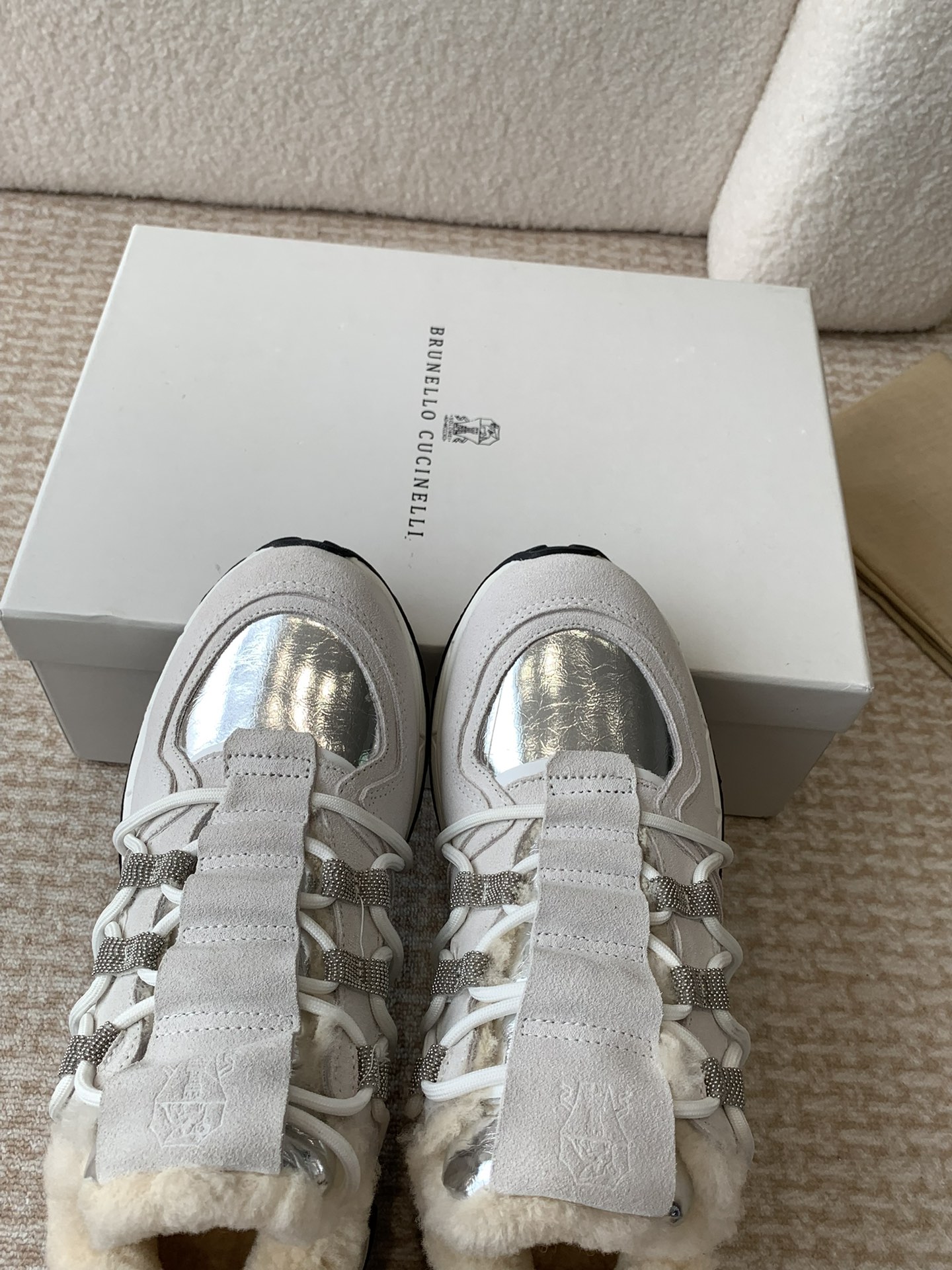 这款鞋子是AAAAA 1:1 质量 (非常棒). 使用了和原版一模一样的材料. 商标部分也保持了和Brunello Cucinelli一样. 图片拍摄是实物鞋子拍摄, 您所收到的实物保证和我们图片一模一样.