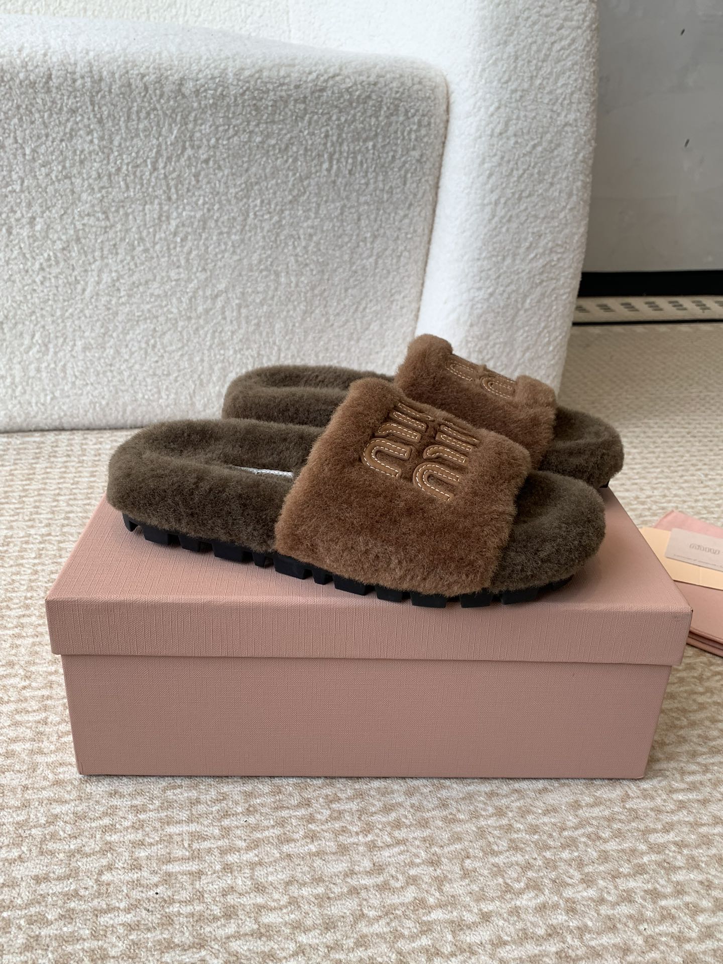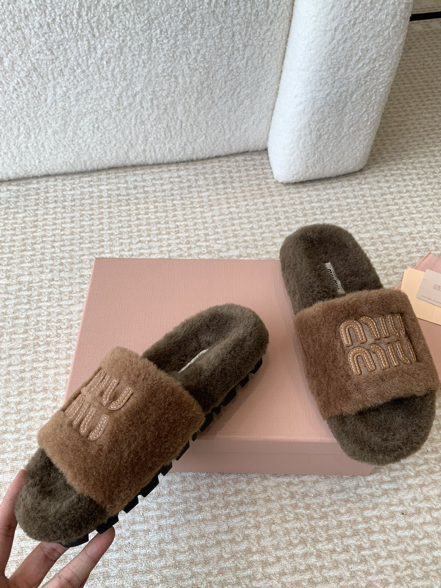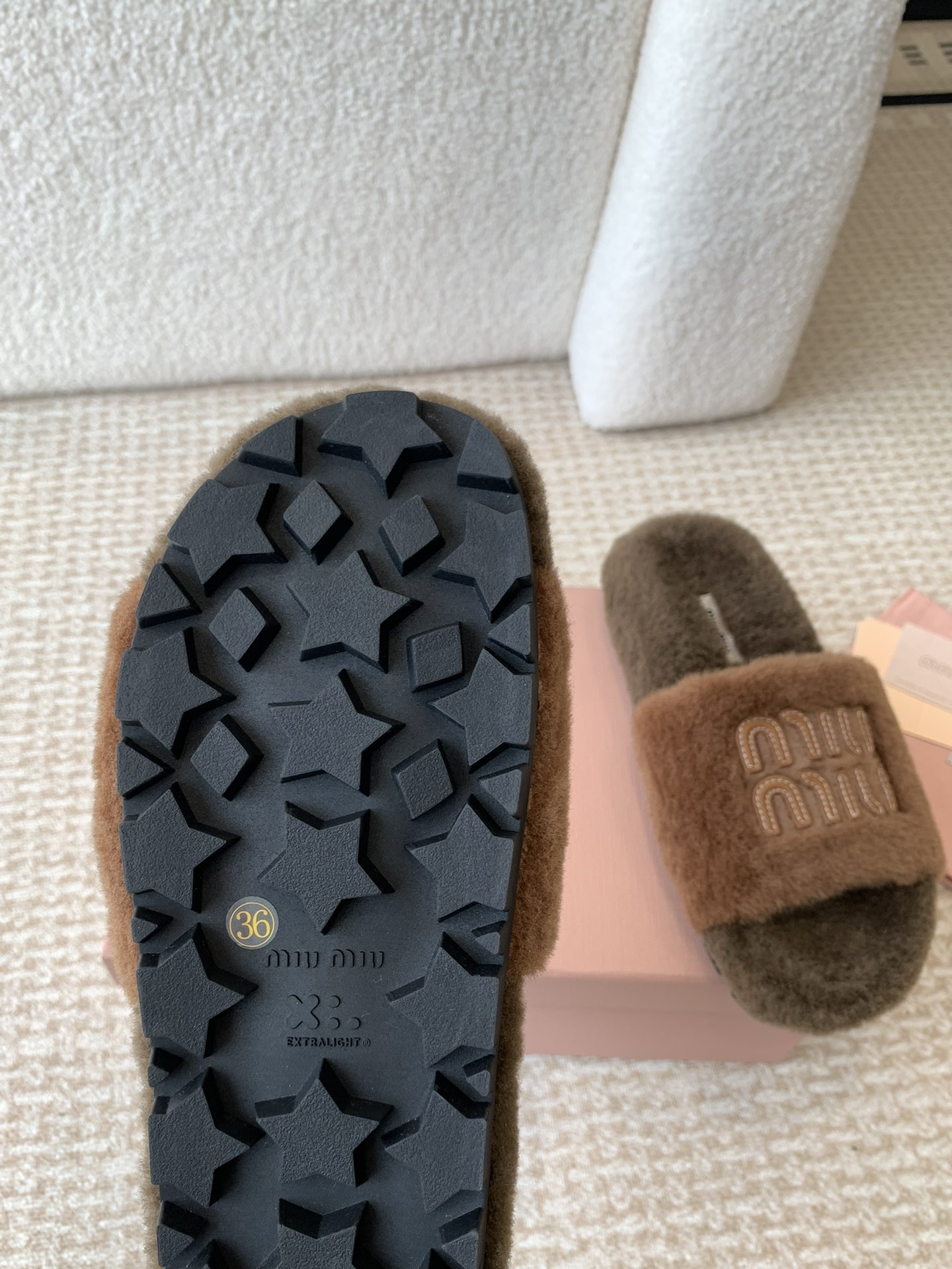 这款鞋子是AAAAA 1:1 质量 (非常棒). 使用了和原版一模一样的材料. 商标部分也保持了和缪缪/Miu Miu一样. 图片拍摄是实物鞋子拍摄, 您所收到的实物保证和我们图片一模一样.