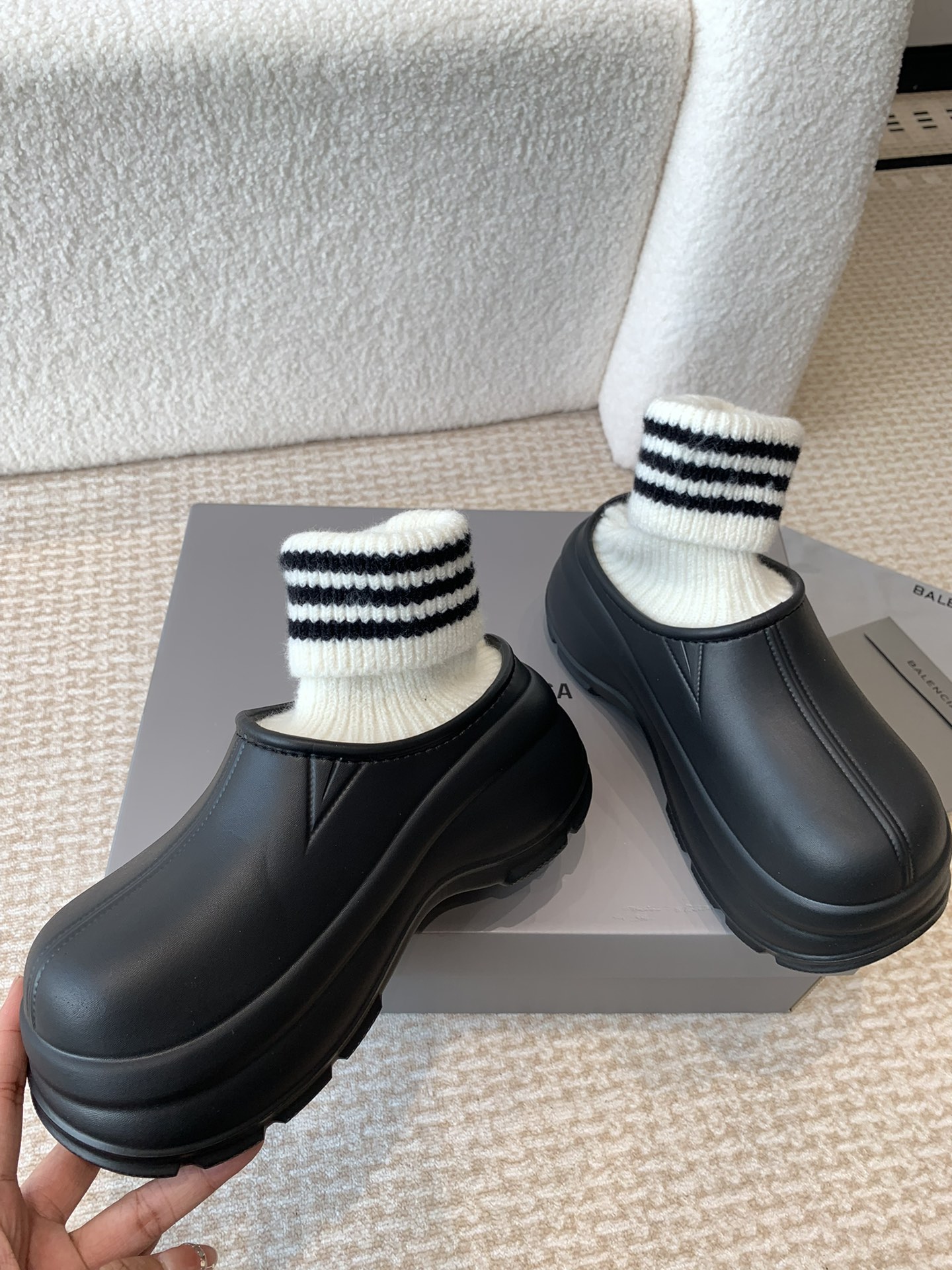 这款鞋子是AAAAA 1:1 质量 (非常棒). 使用了和原版一模一样的材料. 商标部分也保持了和巴黎世家/Balenciaga一样. 图片拍摄是实物鞋子拍摄, 您所收到的实物保证和我们图片一模一样.
