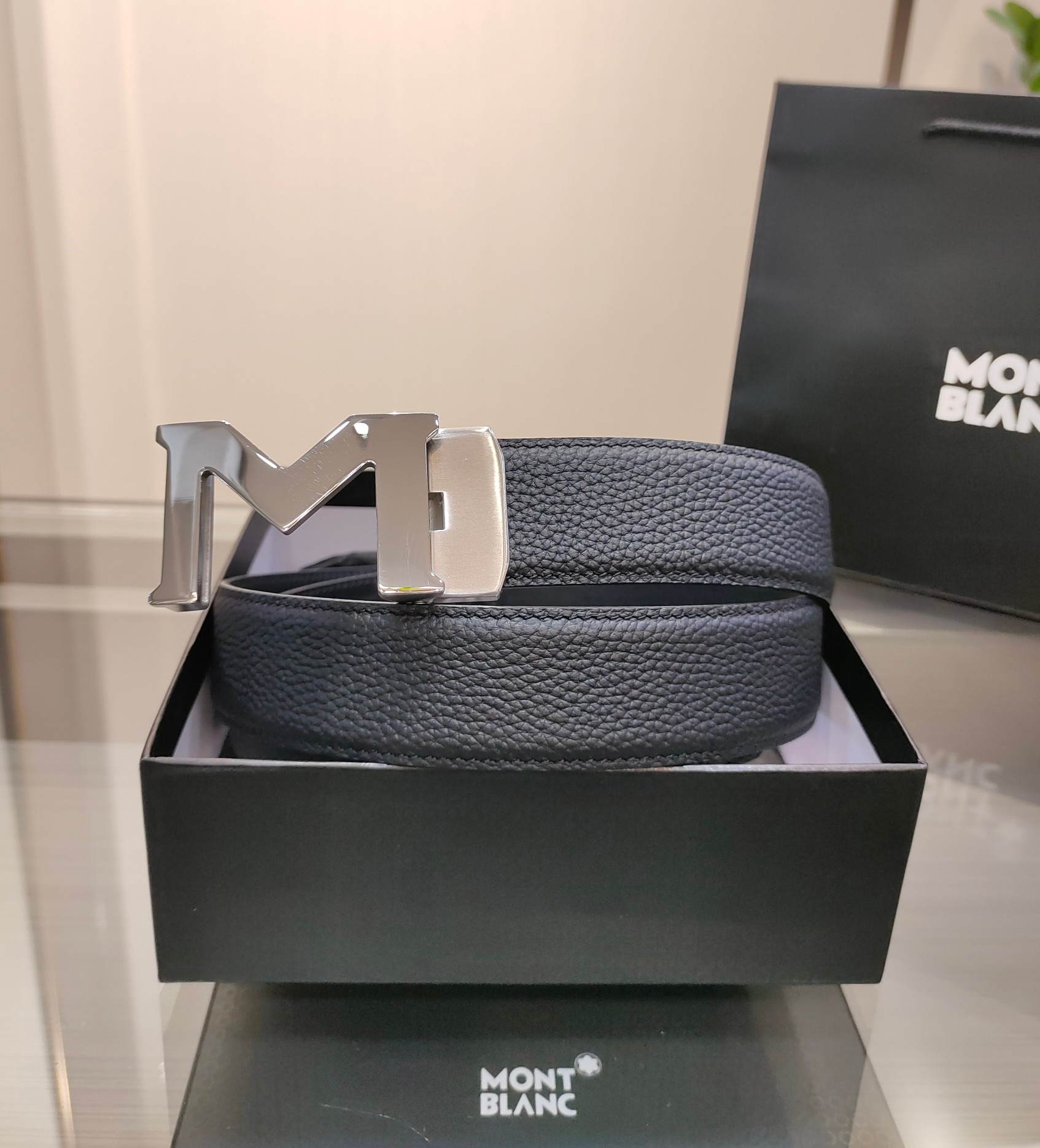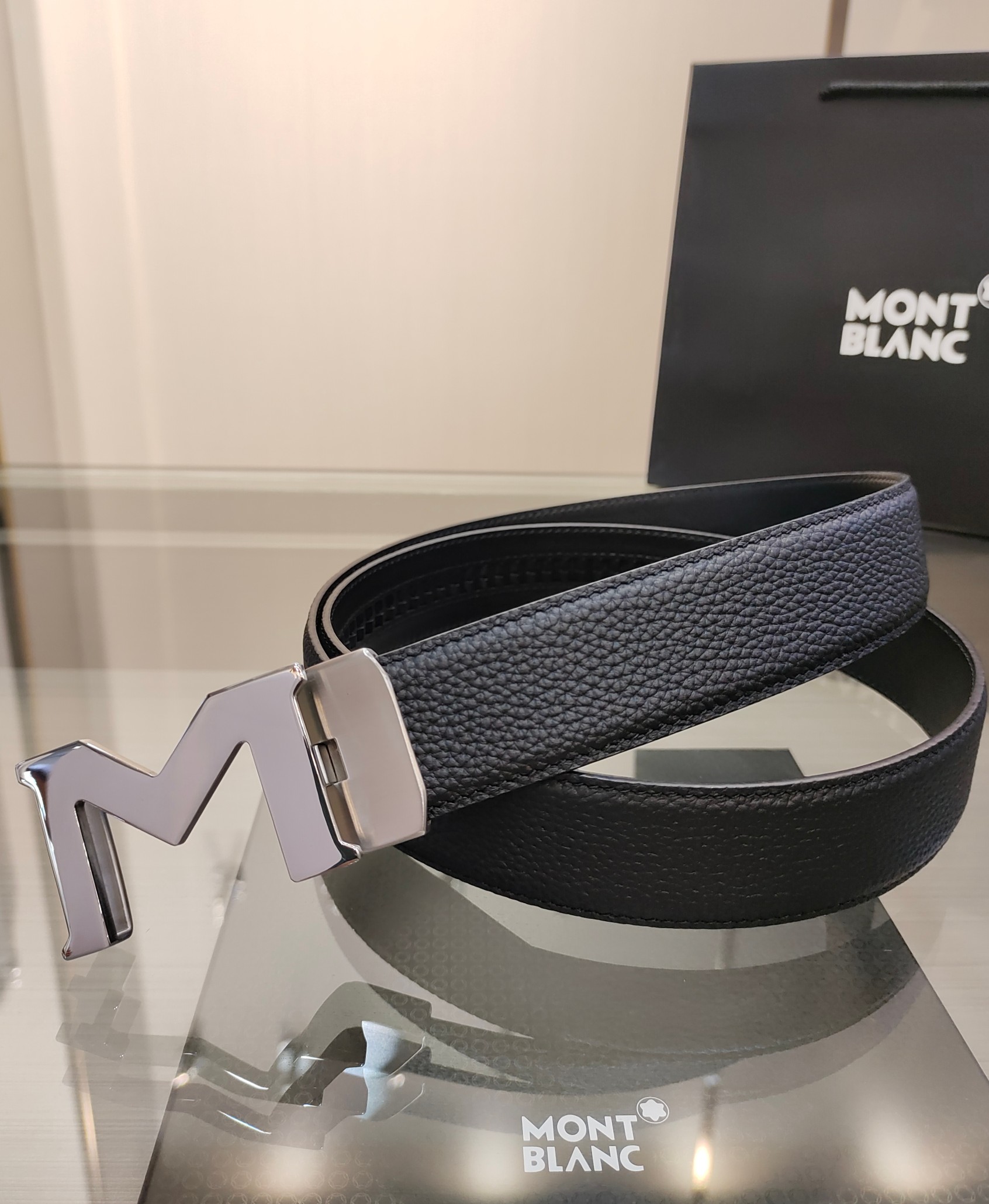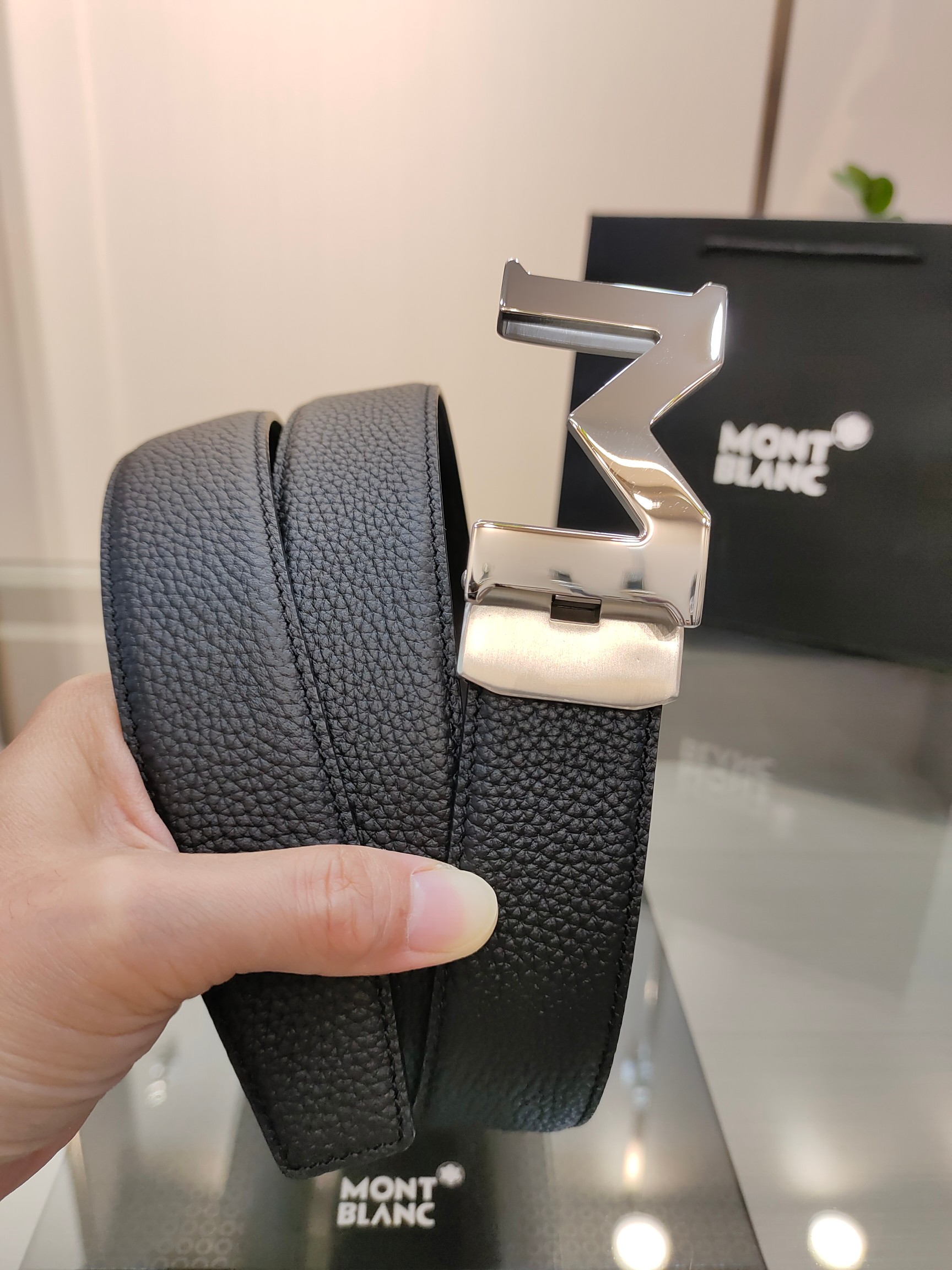 这款皮带是AAAAA 1:1 质量 (非常棒). 使用了和原版一模一样的材料. 商标部分也保持了和万宝龙/Montblanc一样. 图片拍摄是实物皮带拍摄, 您所收到的实物保证和我们图片一模一样.