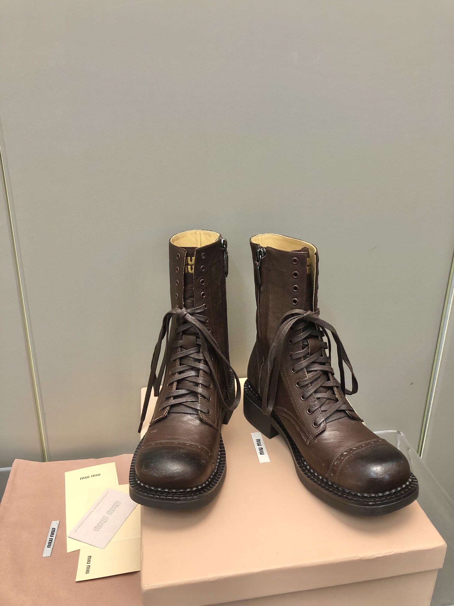 这款鞋子是AAAAA 1:1 质量 (非常棒). 使用了和原版一模一样的材料. 商标部分也保持了和缪缪/Miu Miu一样. 图片拍摄是实物鞋子拍摄, 您所收到的实物保证和我们图片一模一样.