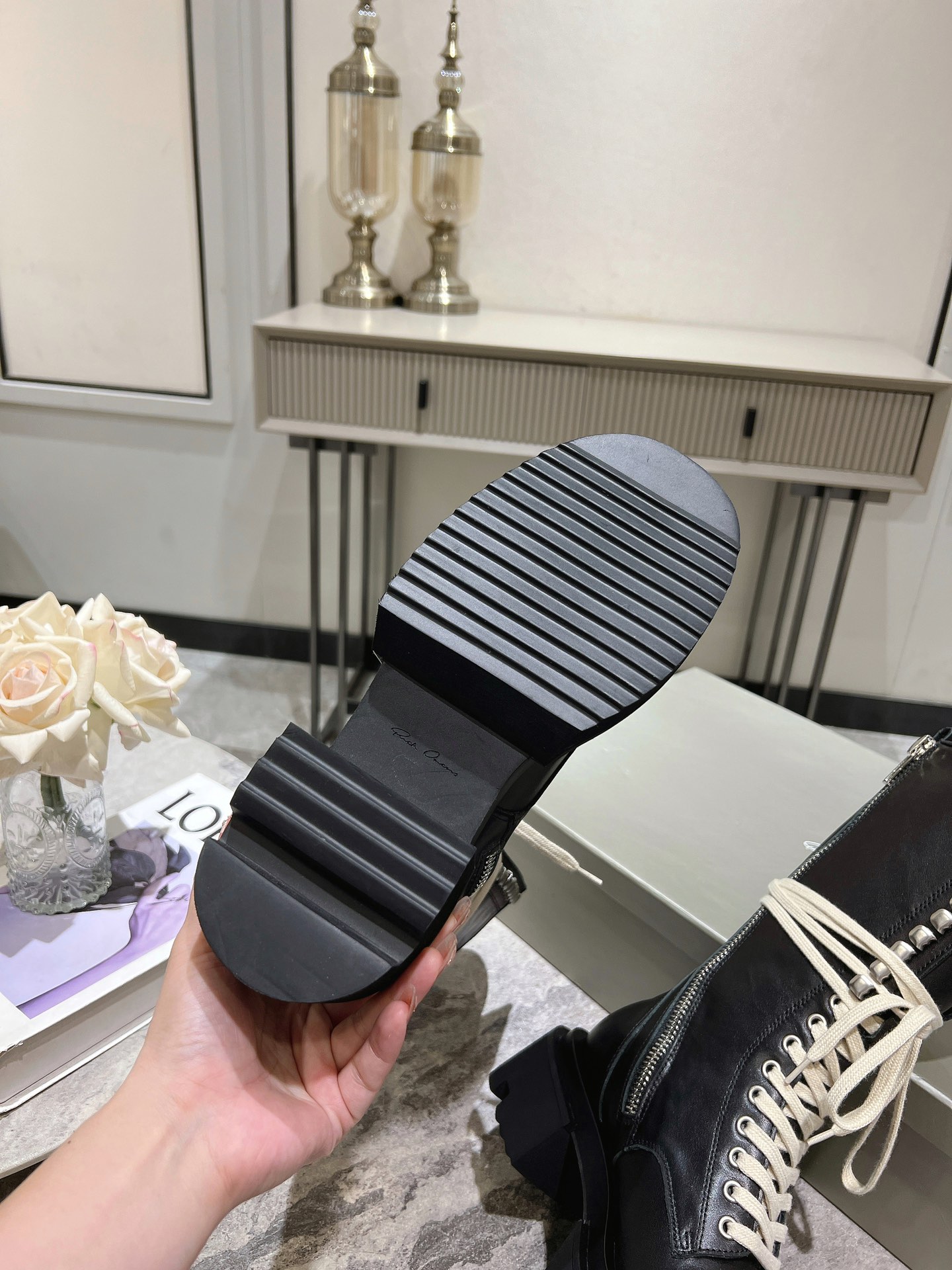 这款鞋子是AAAAA 1:1 质量 (非常棒). 使用了和原版一模一样的材料. 商标部分也保持了和里克·欧文斯/Rick Owens一样. 图片拍摄是实物鞋子拍摄, 您所收到的实物保证和我们图片一模一样.