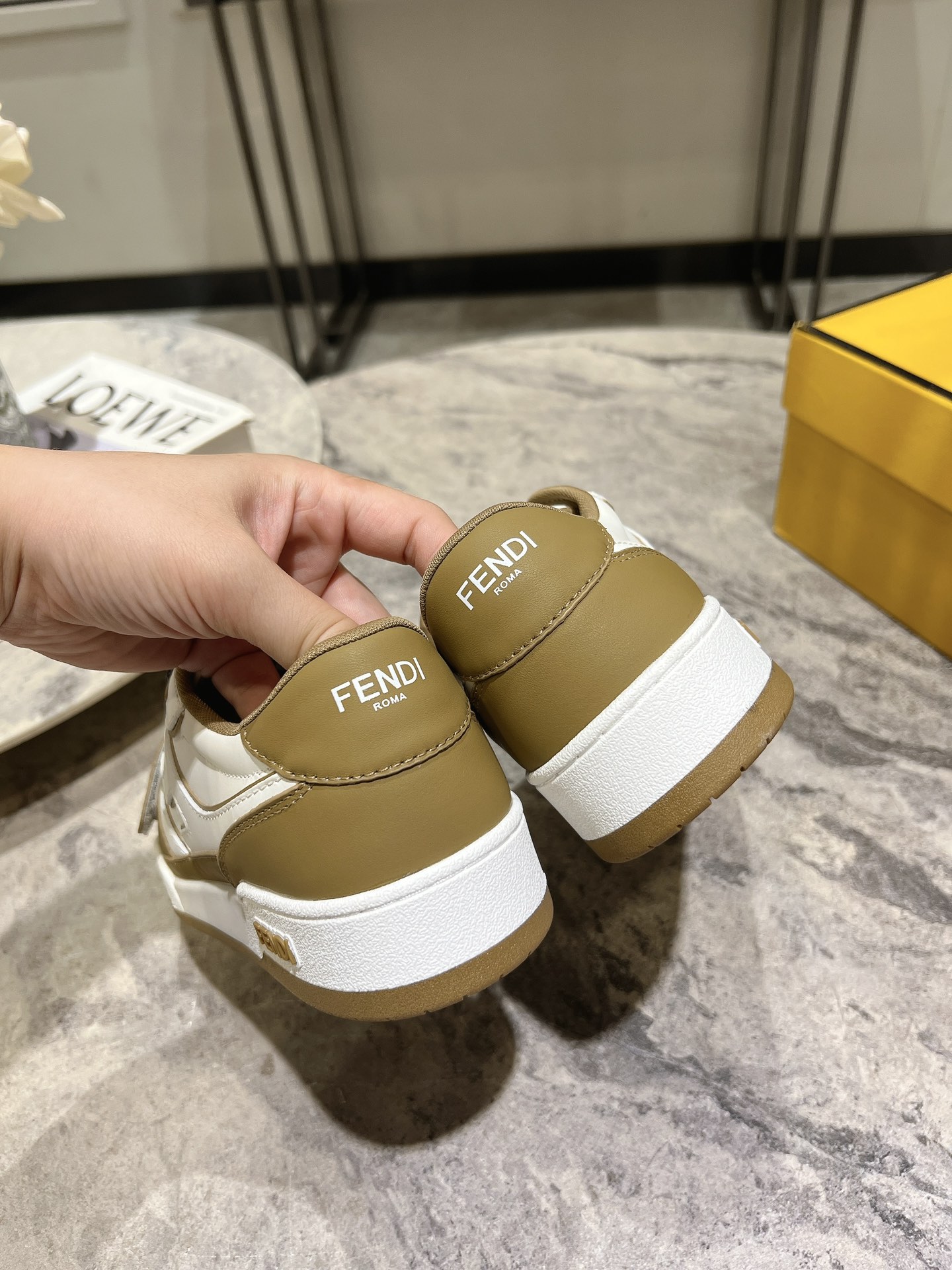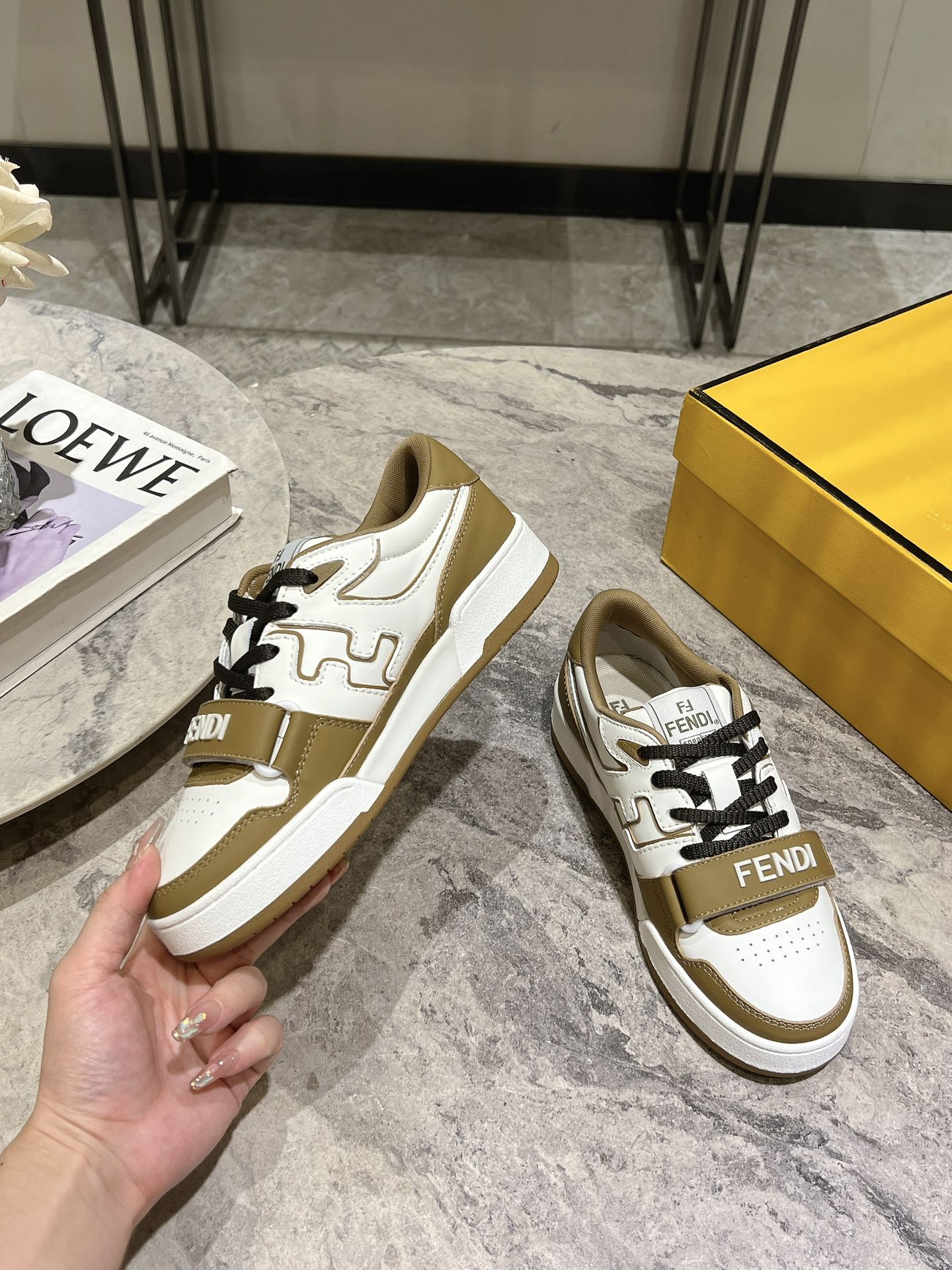 这款鞋子是AAAAA 1:1 质量 (非常棒). 使用了和原版一模一样的材料. 商标部分也保持了和芬迪/Fendi一样. 图片拍摄是实物鞋子拍摄, 您所收到的实物保证和我们图片一模一样.