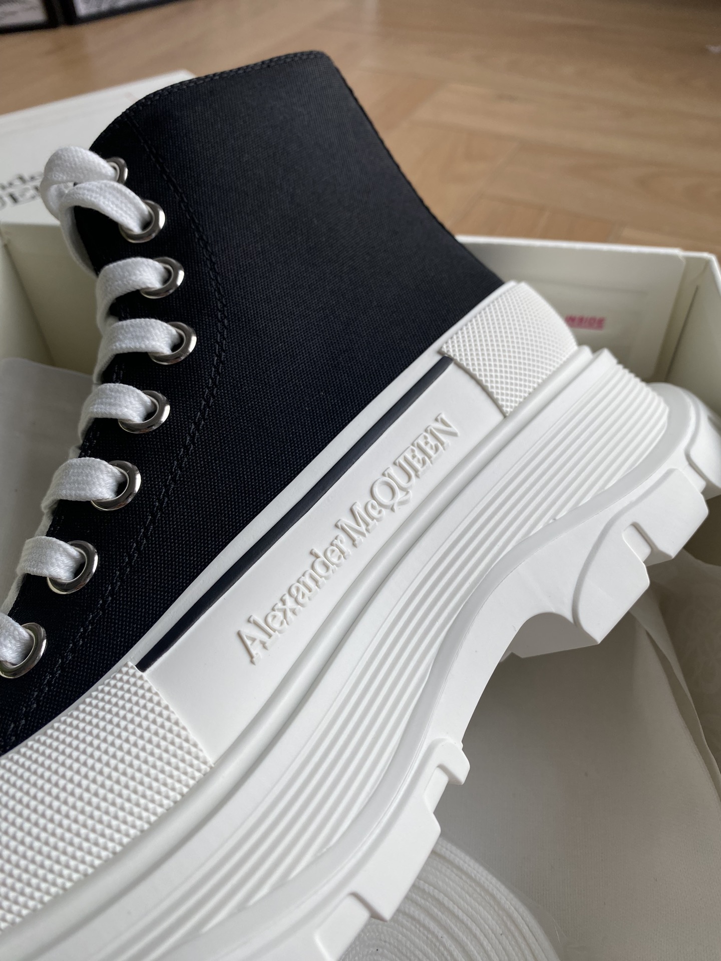 这款鞋子是AAAAA 1:1 质量 (非常棒). 使用了和原版一模一样的材料. 商标部分也保持了和亚历山大·麦昆/McQueen一样. 图片拍摄是实物鞋子拍摄, 您所收到的实物保证和我们图片一模一样.