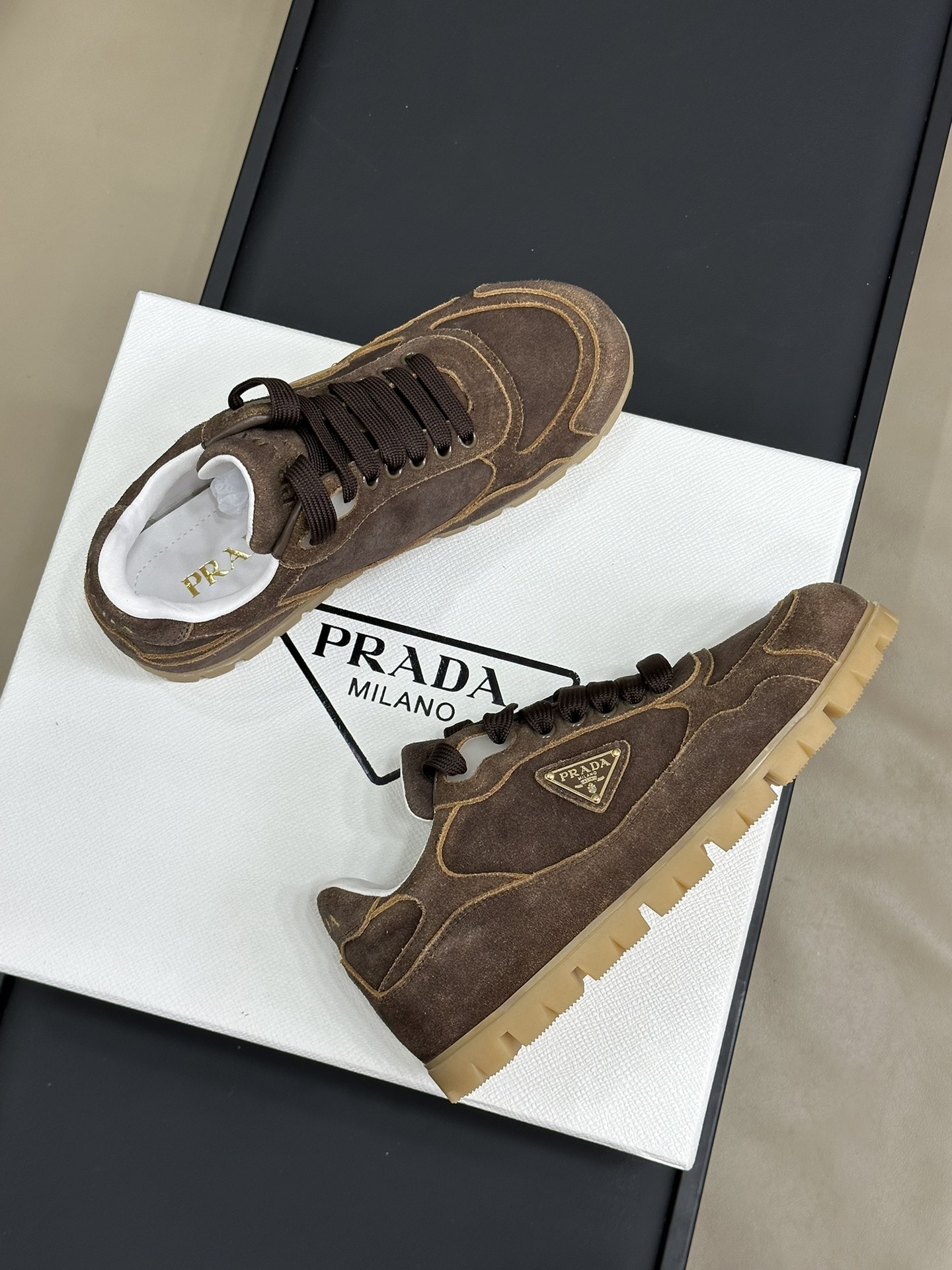 这款鞋子是AAAAA 1:1 质量 (非常棒). 使用了和原版一模一样的材料. 商标部分也保持了和普拉达/Prada一样. 图片拍摄是实物鞋子拍摄, 您所收到的实物保证和我们图片一模一样.