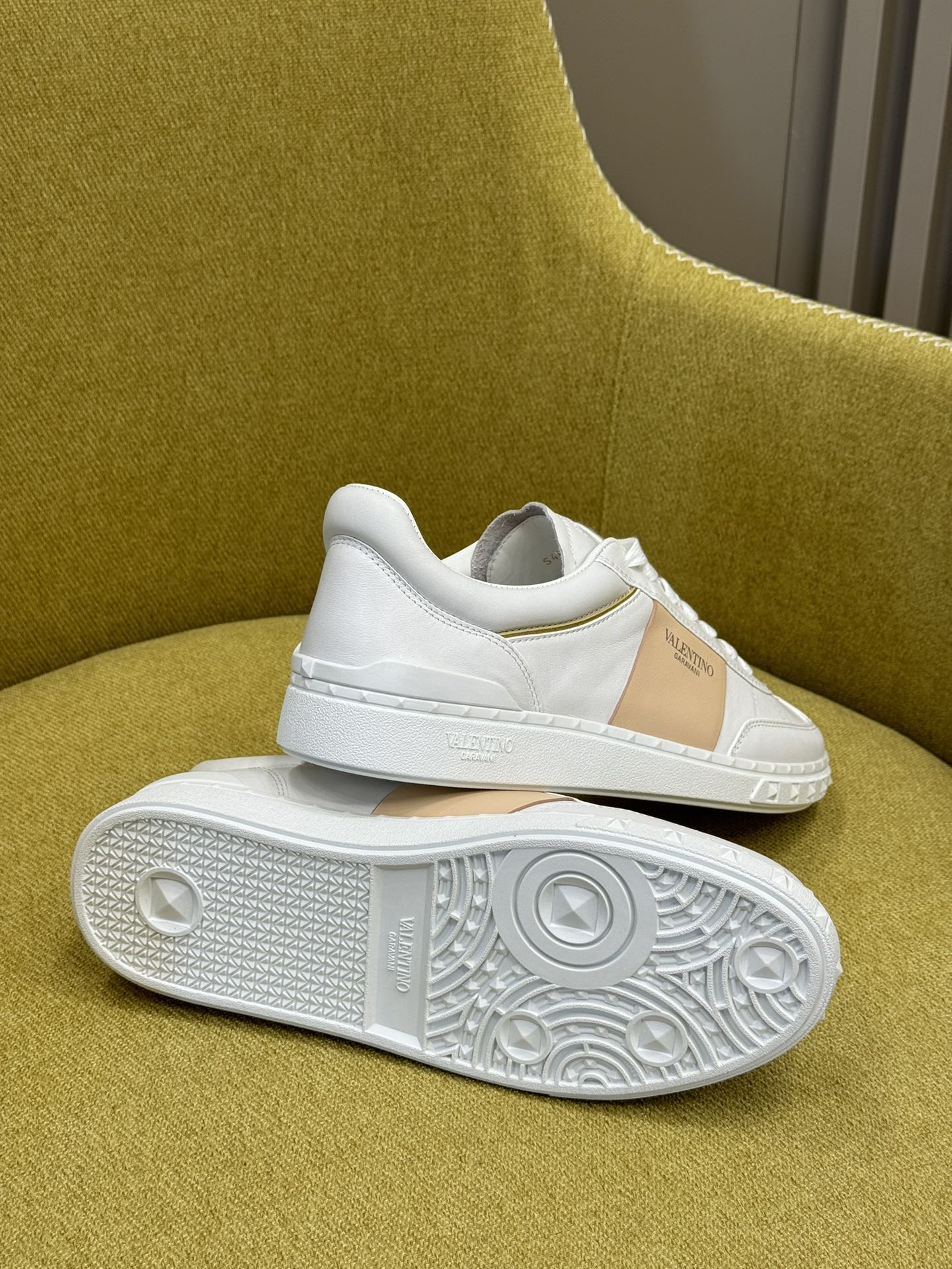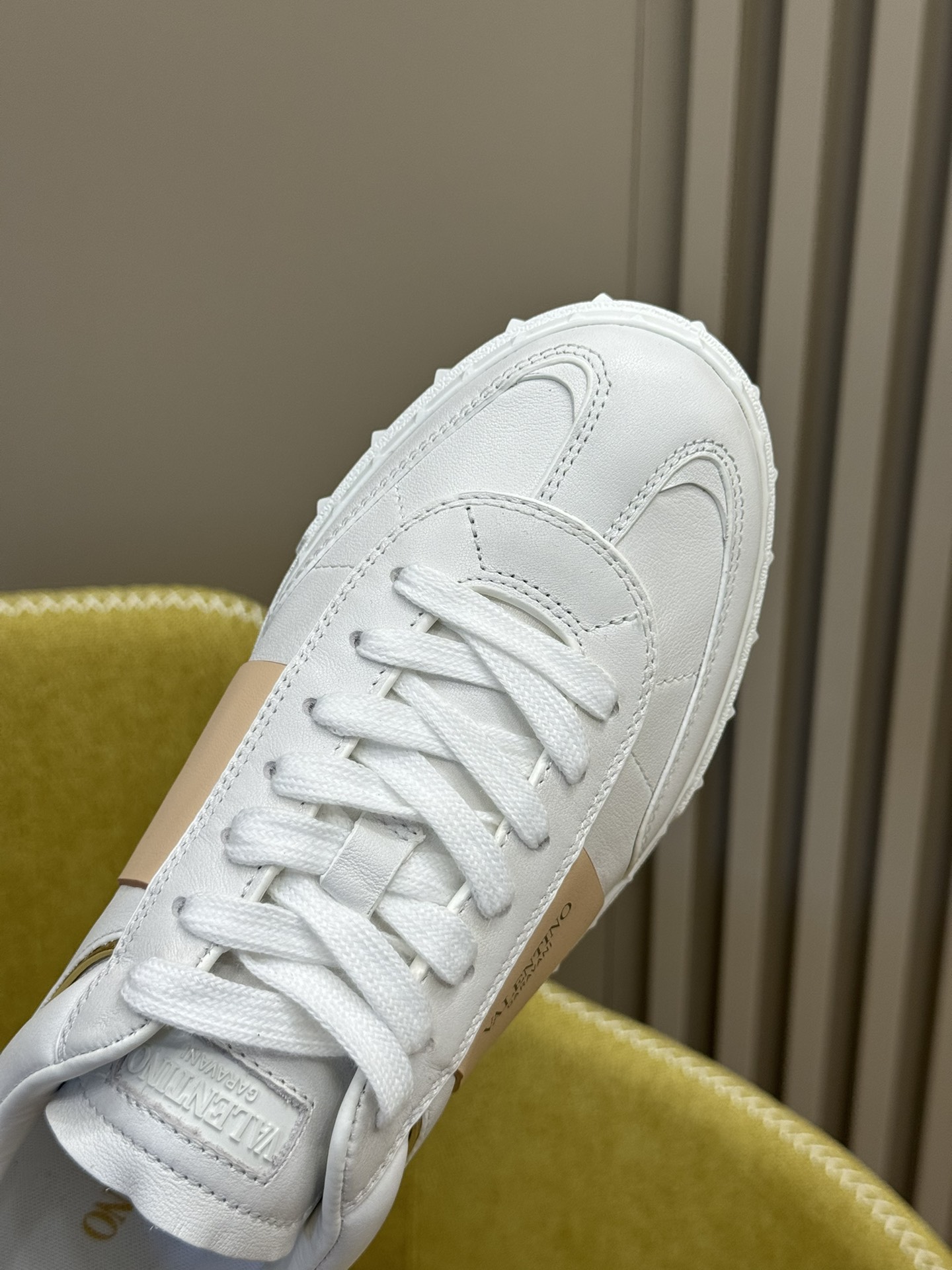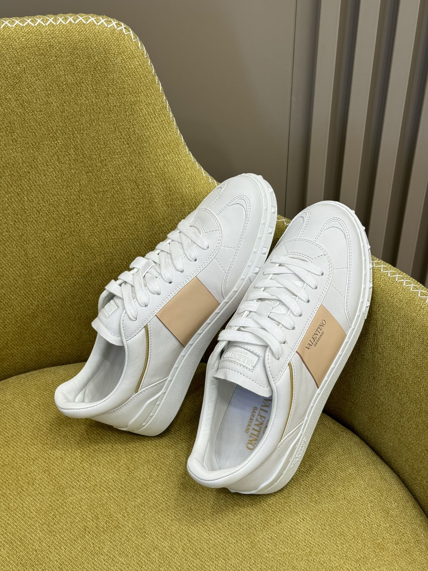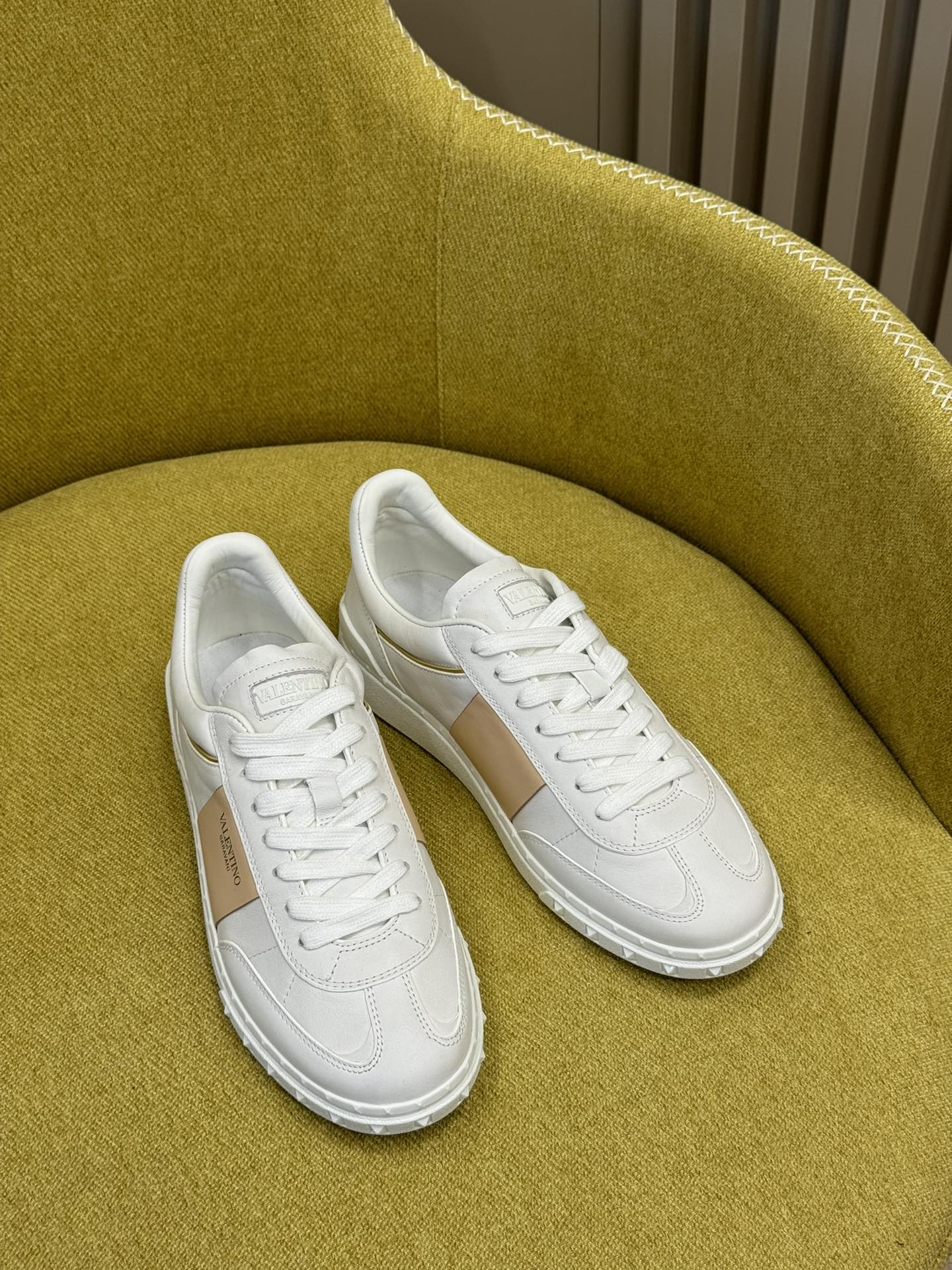 这款鞋子是AAAAA 1:1 质量 (非常棒). 使用了和原版一模一样的材料. 商标部分也保持了和华伦天奴/Valentino一样. 图片拍摄是实物鞋子拍摄, 您所收到的实物保证和我们图片一模一样.