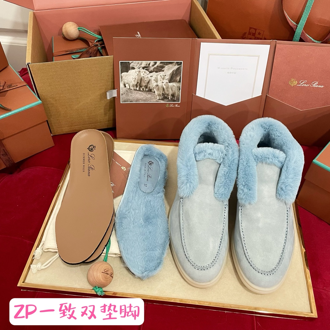 这款鞋子是AAAAA 1:1 质量 (非常棒). 使用了和原版一模一样的材料. 商标部分也保持了和洛罗皮亚纳/Loro Piana一样. 图片拍摄是实物鞋子拍摄, 您所收到的实物保证和我们图片一模一样.