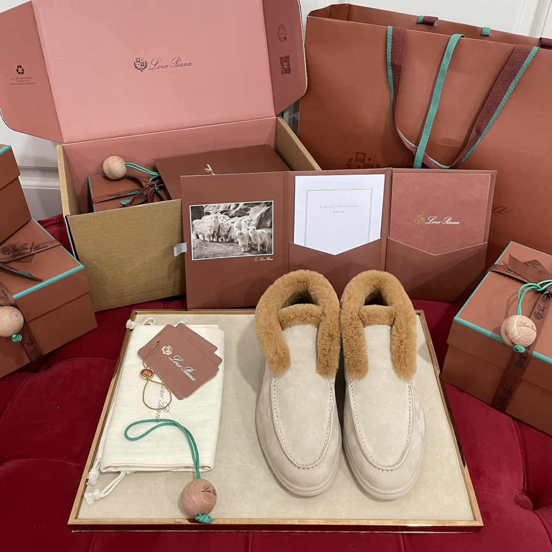 这款鞋子是AAAAA 1:1 质量 (非常棒). 使用了和原版一模一样的材料. 商标部分也保持了和洛罗皮亚纳/Loro Piana一样. 图片拍摄是实物鞋子拍摄, 您所收到的实物保证和我们图片一模一样.
