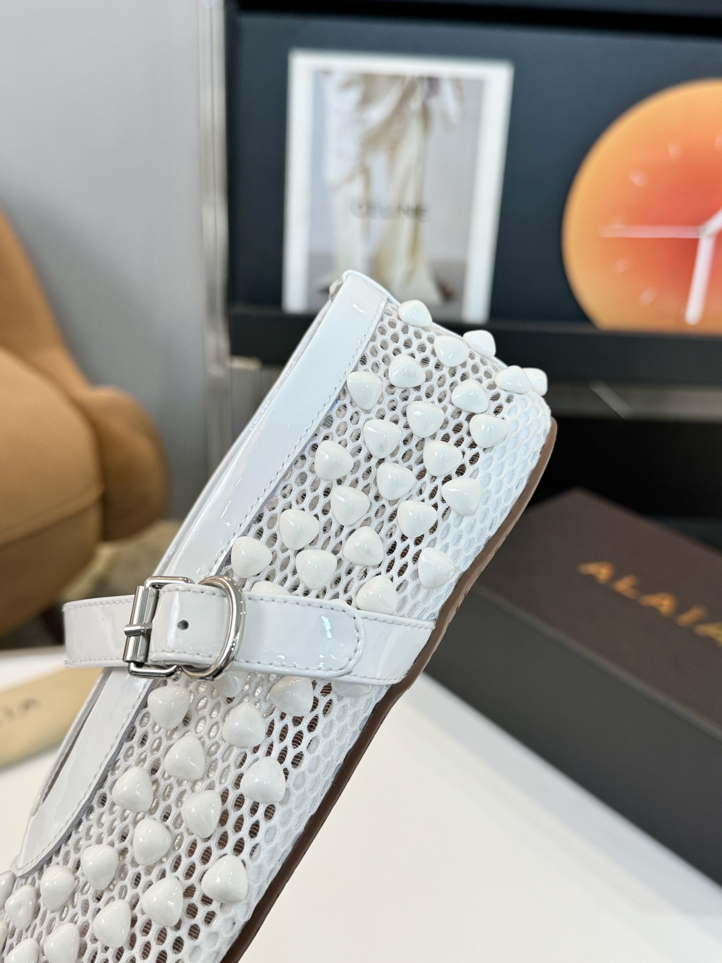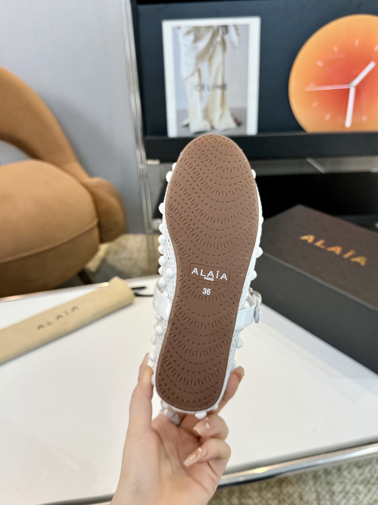 这款鞋子是AAAAA 1:1 质量 (非常棒). 使用了和原版一模一样的材料. 商标部分也保持了和Alaia一样. 图片拍摄是实物鞋子拍摄, 您所收到的实物保证和我们图片一模一样.