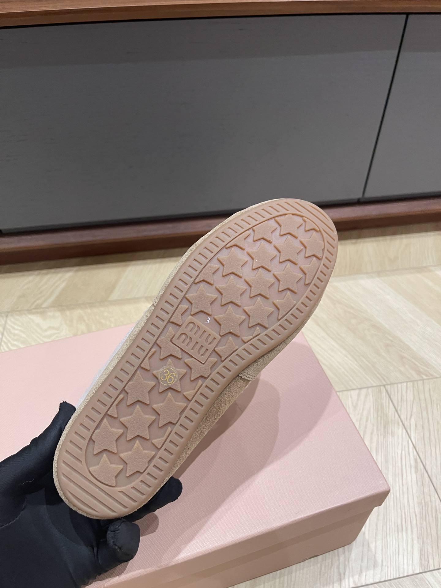 这款鞋子是AAAAA 1:1 质量 (非常棒). 使用了和原版一模一样的材料. 商标部分也保持了和缪缪/Miu Miu一样. 图片拍摄是实物鞋子拍摄, 您所收到的实物保证和我们图片一模一样.