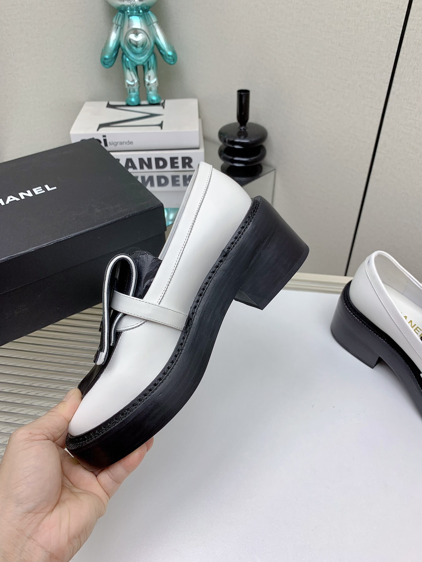 这款鞋子是AAAAA 1:1 质量 (非常棒). 使用了和原版一模一样的材料. 商标部分也保持了和香奈儿/Chanel一样. 图片拍摄是实物鞋子拍摄, 您所收到的实物保证和我们图片一模一样.