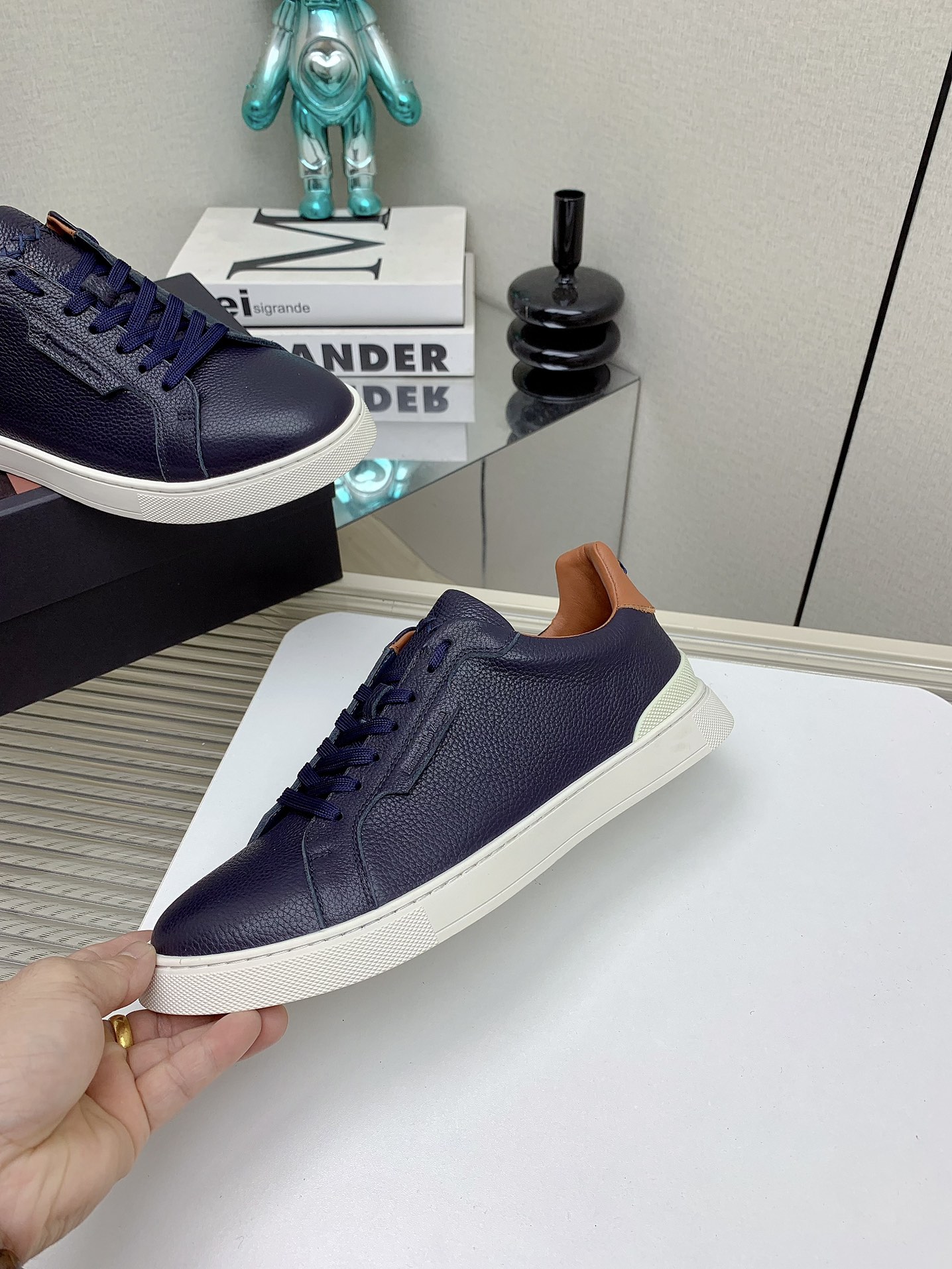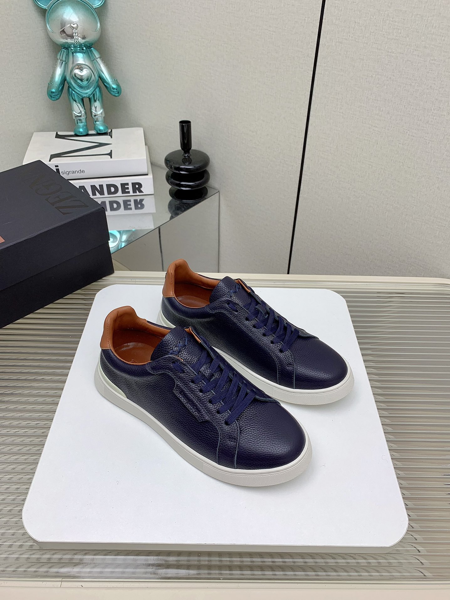 这款鞋子是AAAAA 1:1 质量 (非常棒). 使用了和原版一模一样的材料. 商标部分也保持了和杰尼亚/Zegna一样. 图片拍摄是实物鞋子拍摄, 您所收到的实物保证和我们图片一模一样.