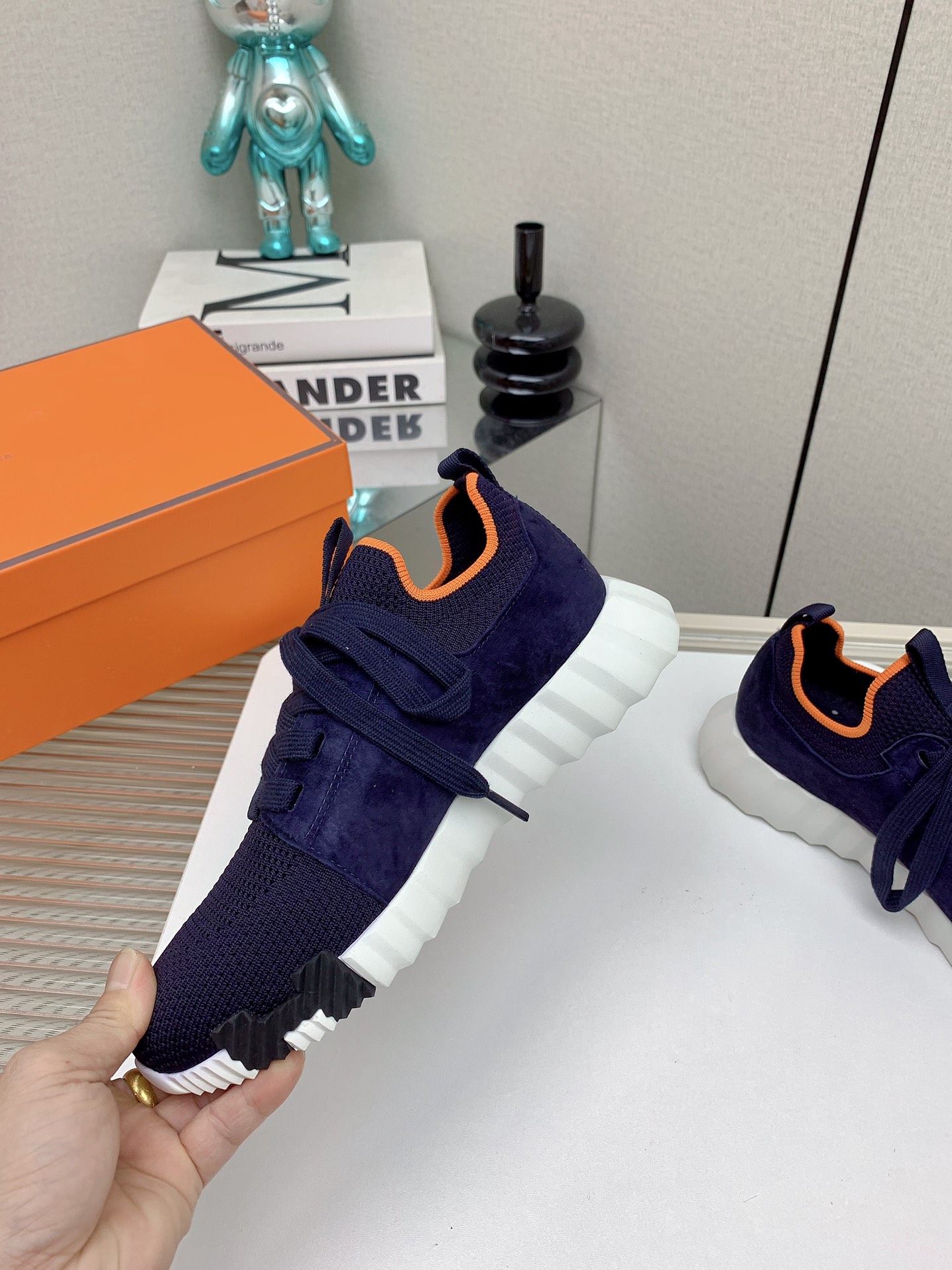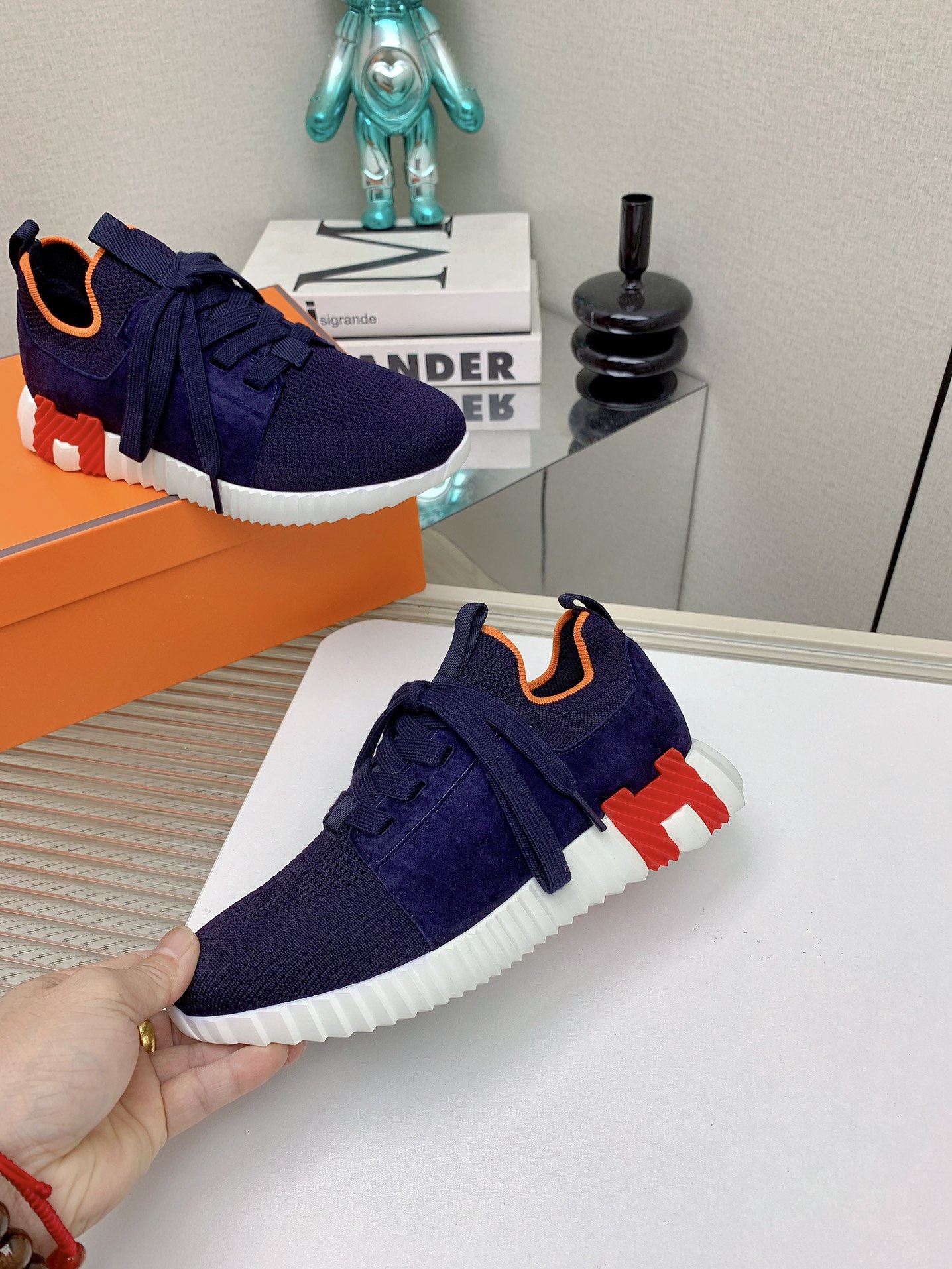 这款鞋子是AAAAA 1:1 质量 (非常棒). 使用了和原版一模一样的材料. 商标部分也保持了和爱马仕/Hermes一样. 图片拍摄是实物鞋子拍摄, 您所收到的实物保证和我们图片一模一样.