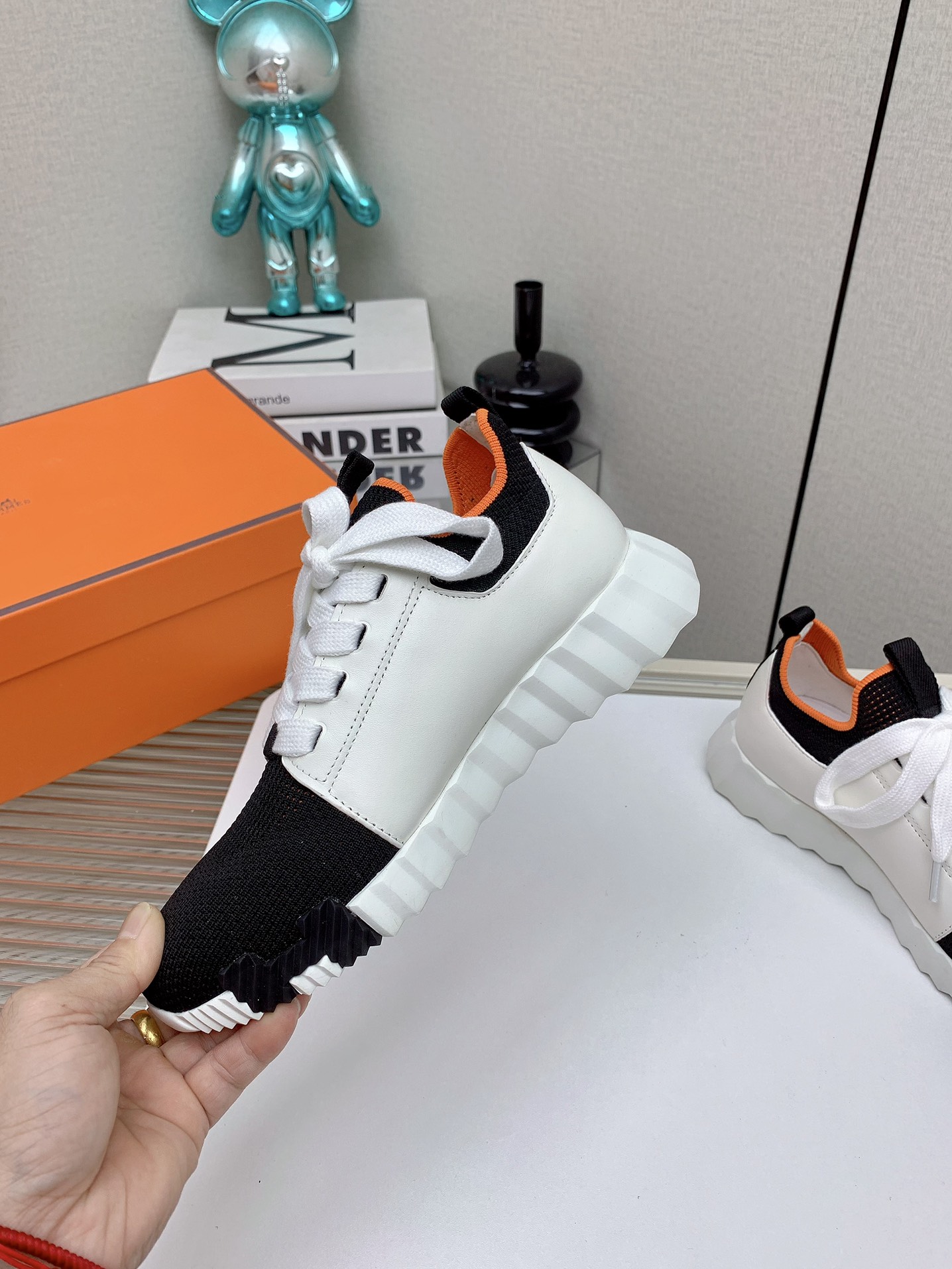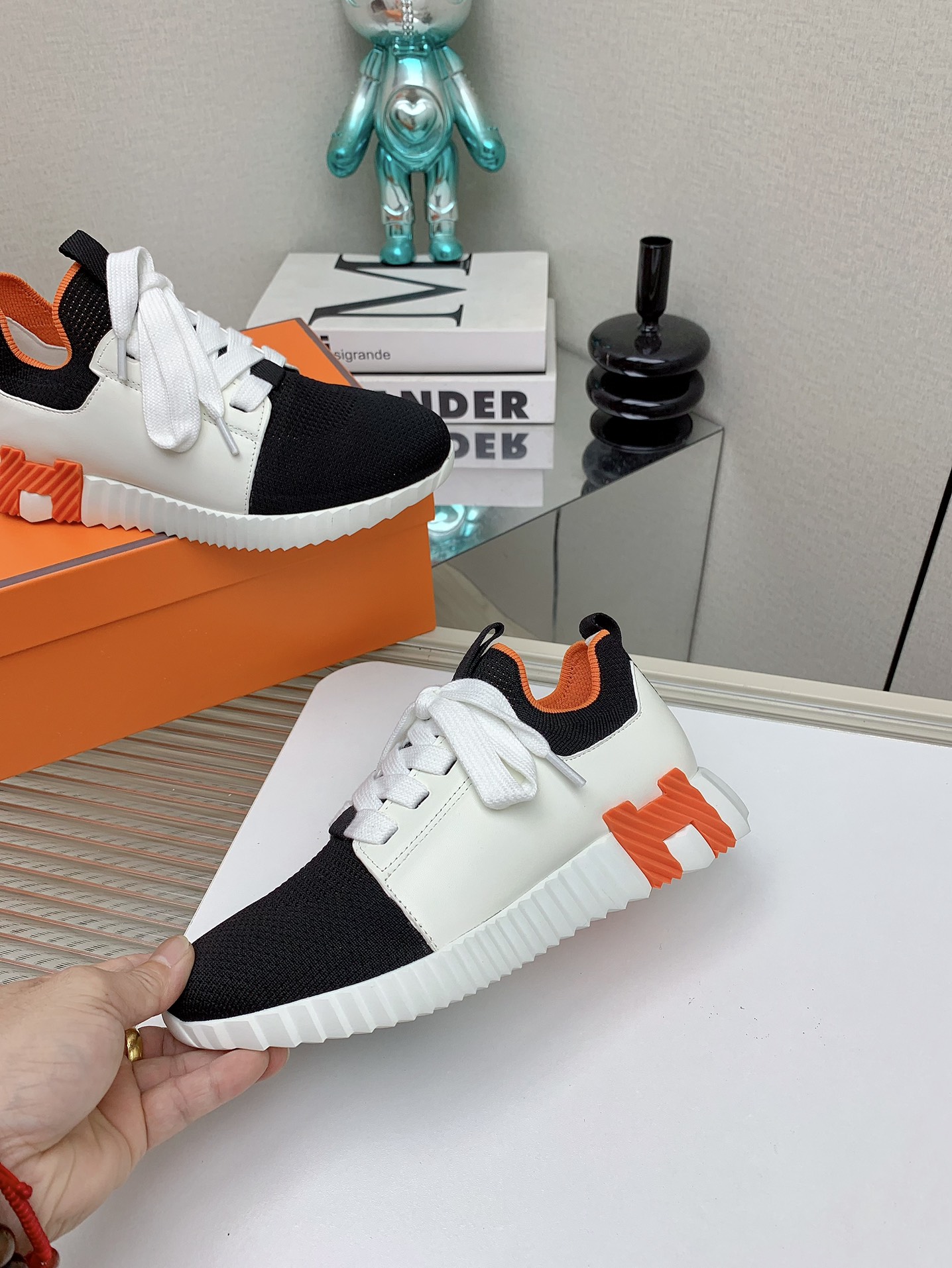 这款鞋子是AAAAA 1:1 质量 (非常棒). 使用了和原版一模一样的材料. 商标部分也保持了和爱马仕/Hermes一样. 图片拍摄是实物鞋子拍摄, 您所收到的实物保证和我们图片一模一样.