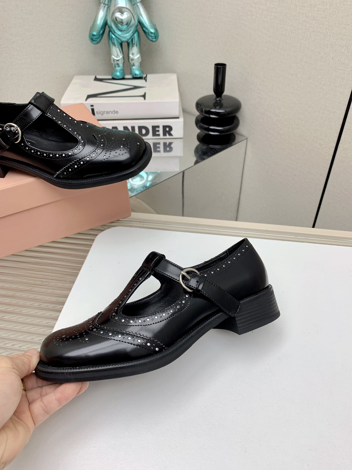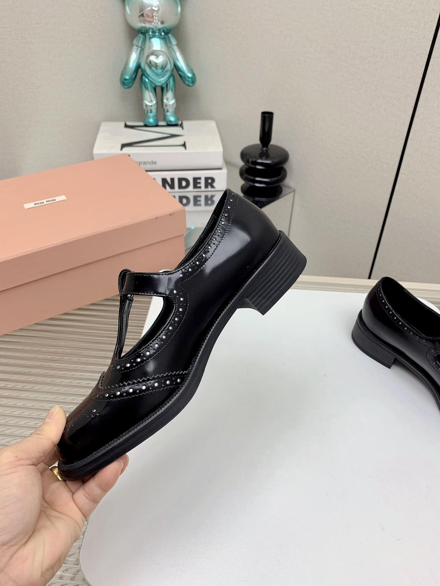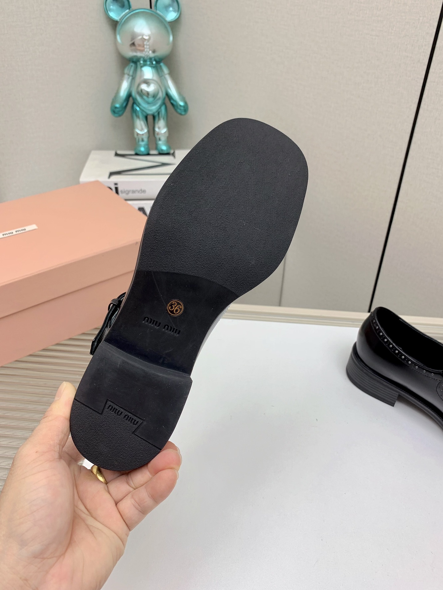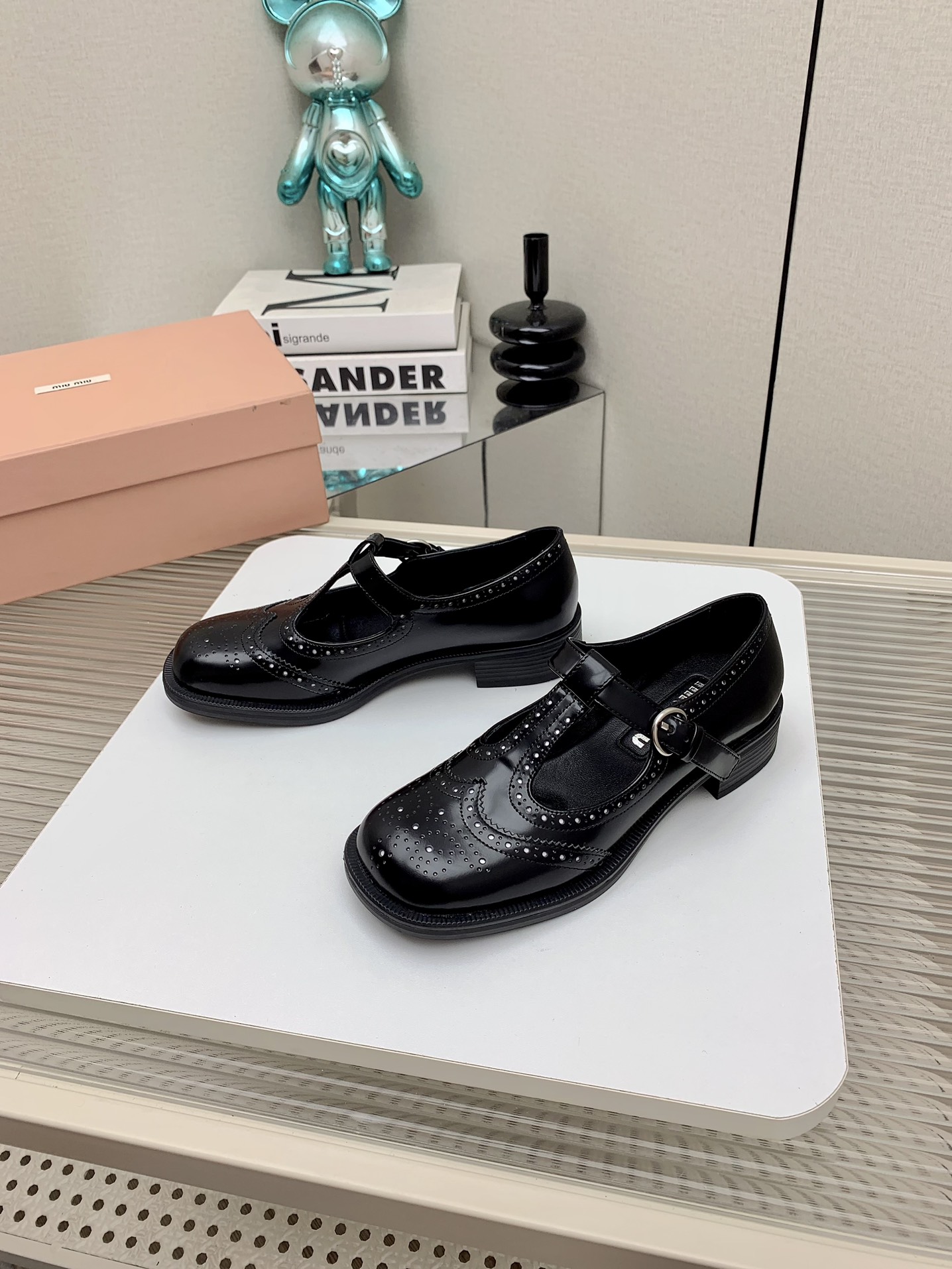 这款鞋子是AAAAA 1:1 质量 (非常棒). 使用了和原版一模一样的材料. 商标部分也保持了和缪缪/Miu Miu一样. 图片拍摄是实物鞋子拍摄, 您所收到的实物保证和我们图片一模一样.