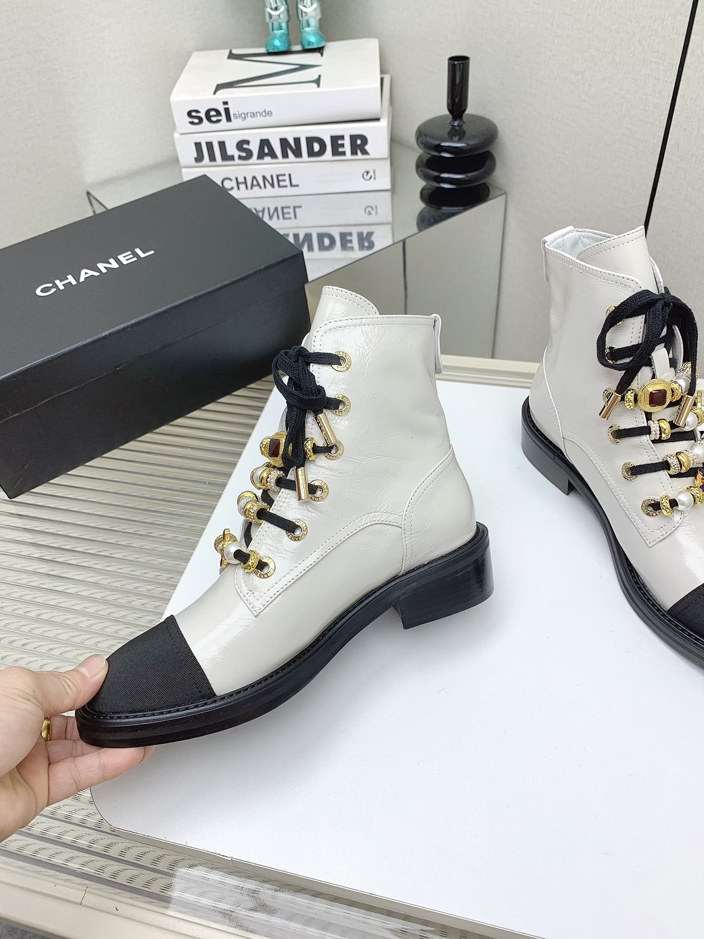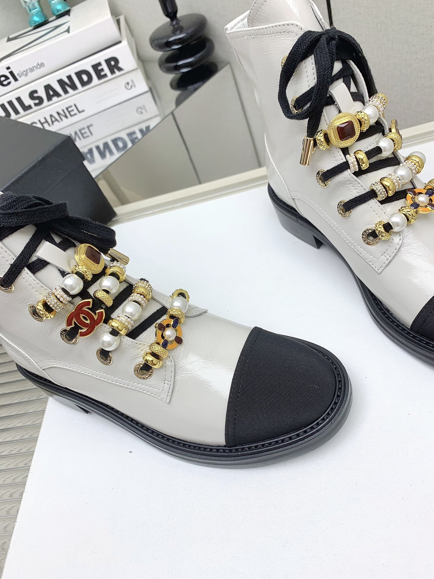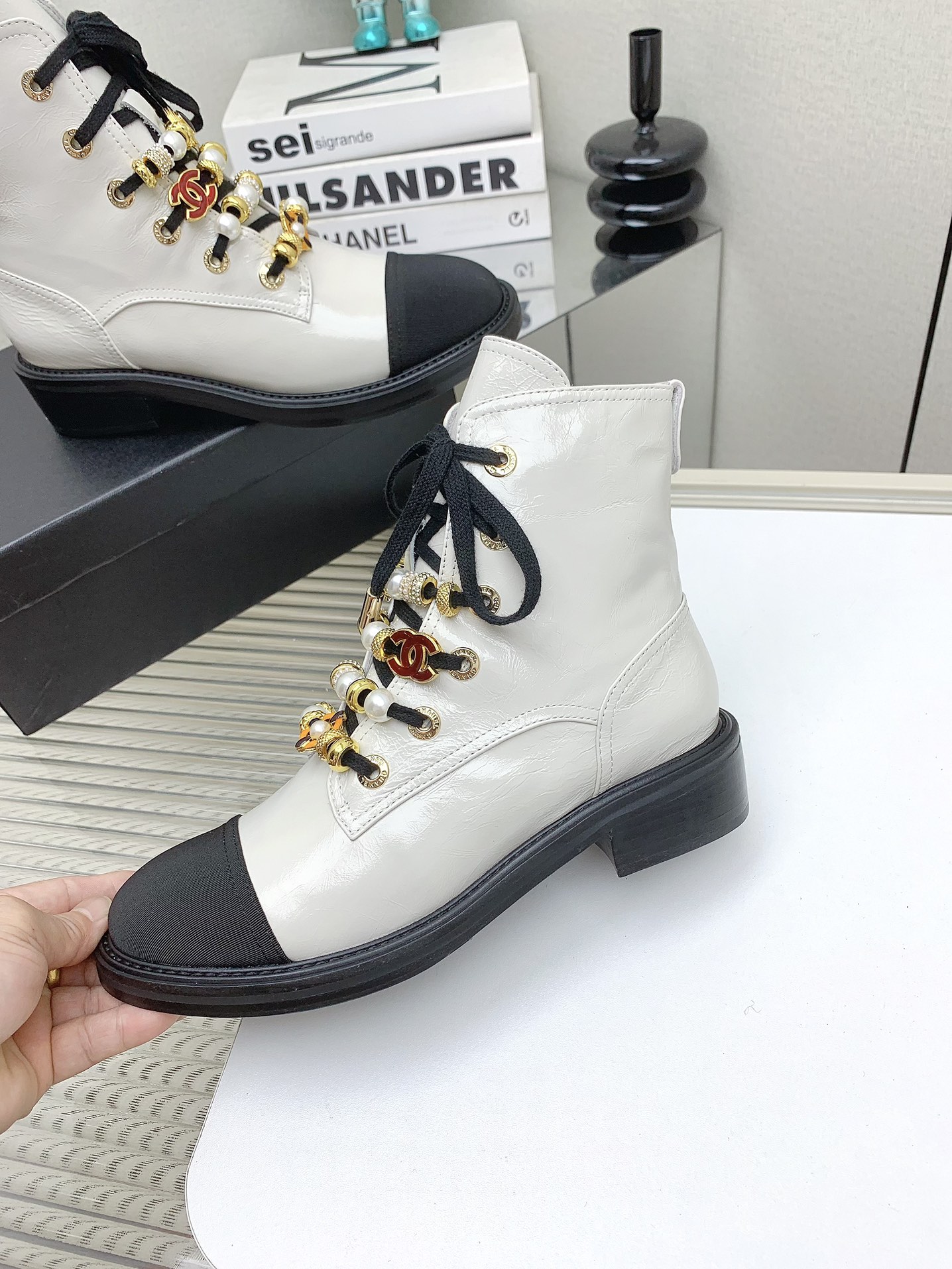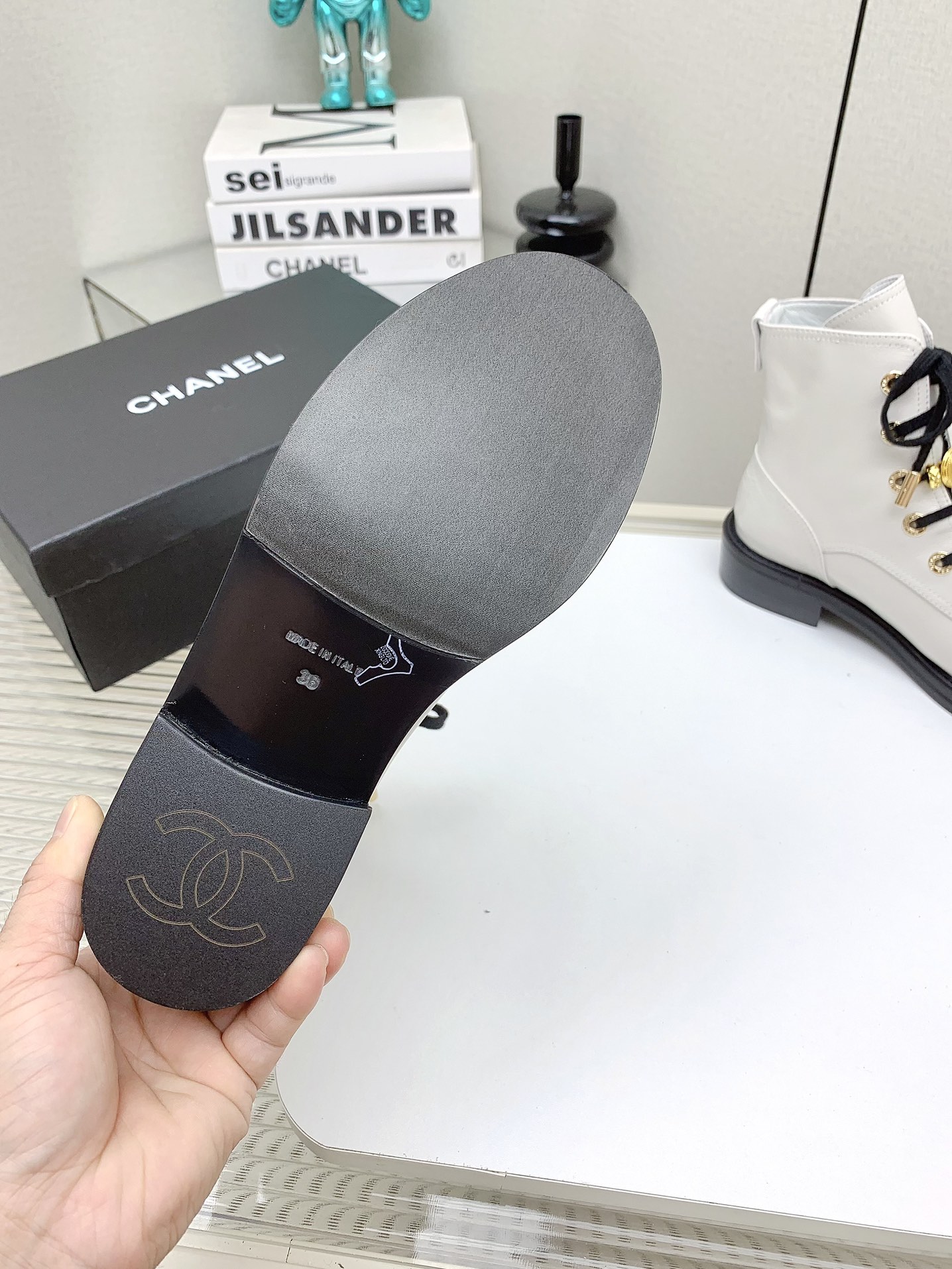 这款鞋子是AAAAA 1:1 质量 (非常棒). 使用了和原版一模一样的材料. 商标部分也保持了和香奈儿/Chanel一样. 图片拍摄是实物鞋子拍摄, 您所收到的实物保证和我们图片一模一样.