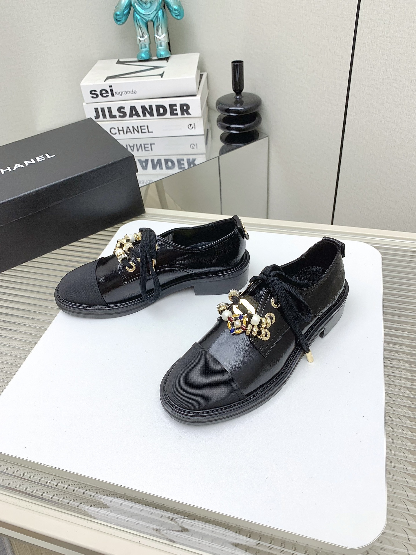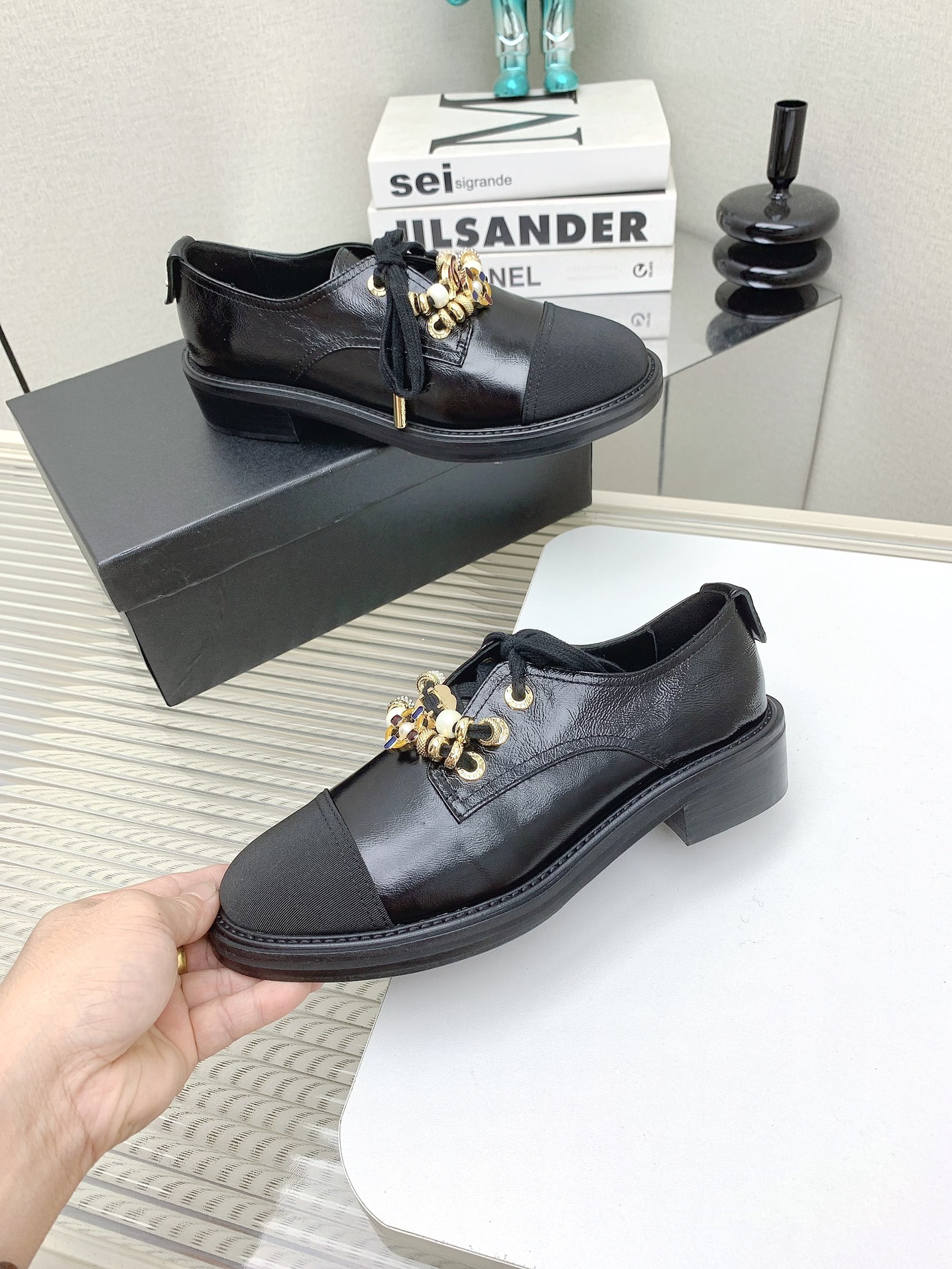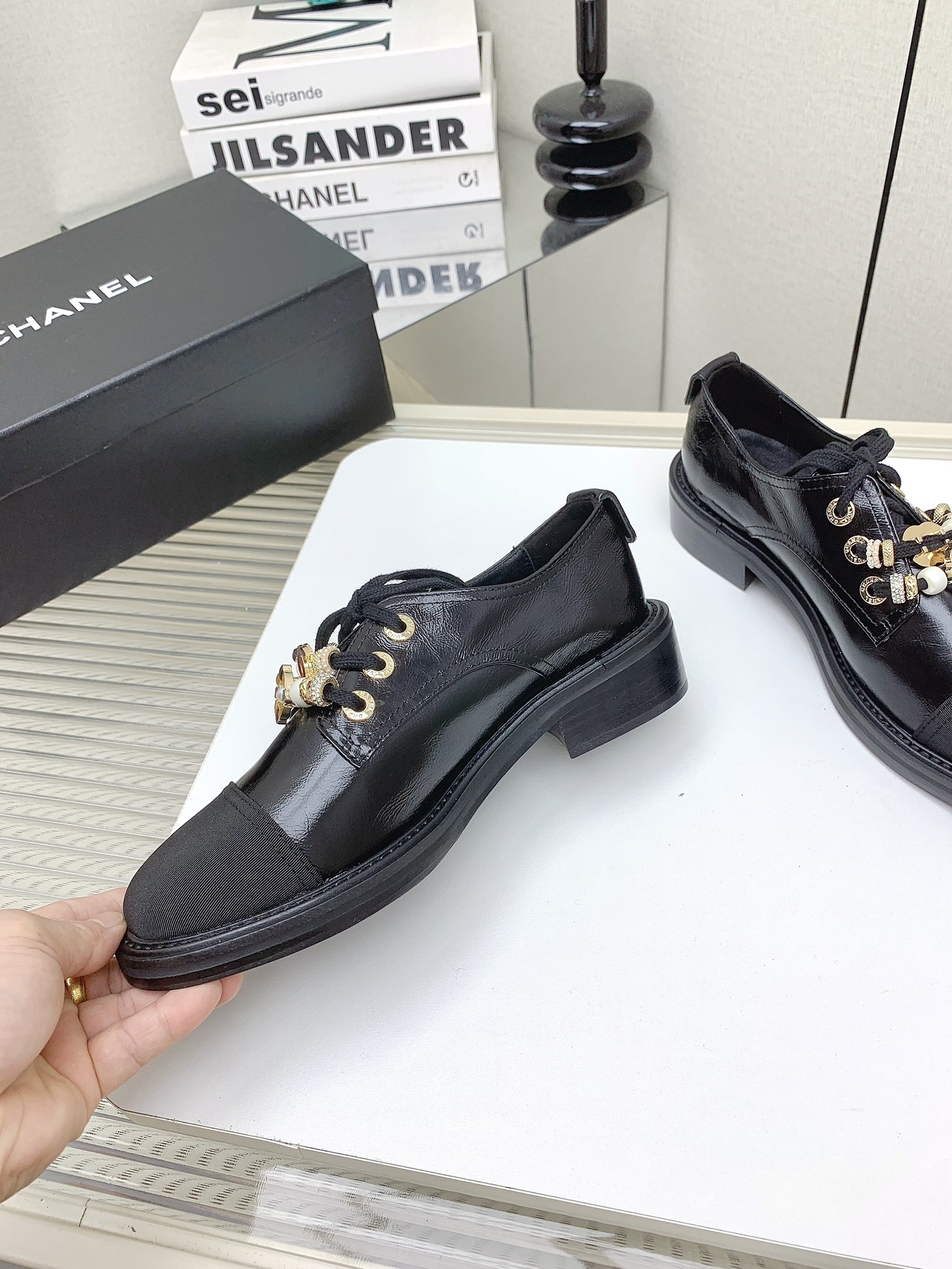 这款鞋子是AAAAA 1:1 质量 (非常棒). 使用了和原版一模一样的材料. 商标部分也保持了和香奈儿/Chanel一样. 图片拍摄是实物鞋子拍摄, 您所收到的实物保证和我们图片一模一样.