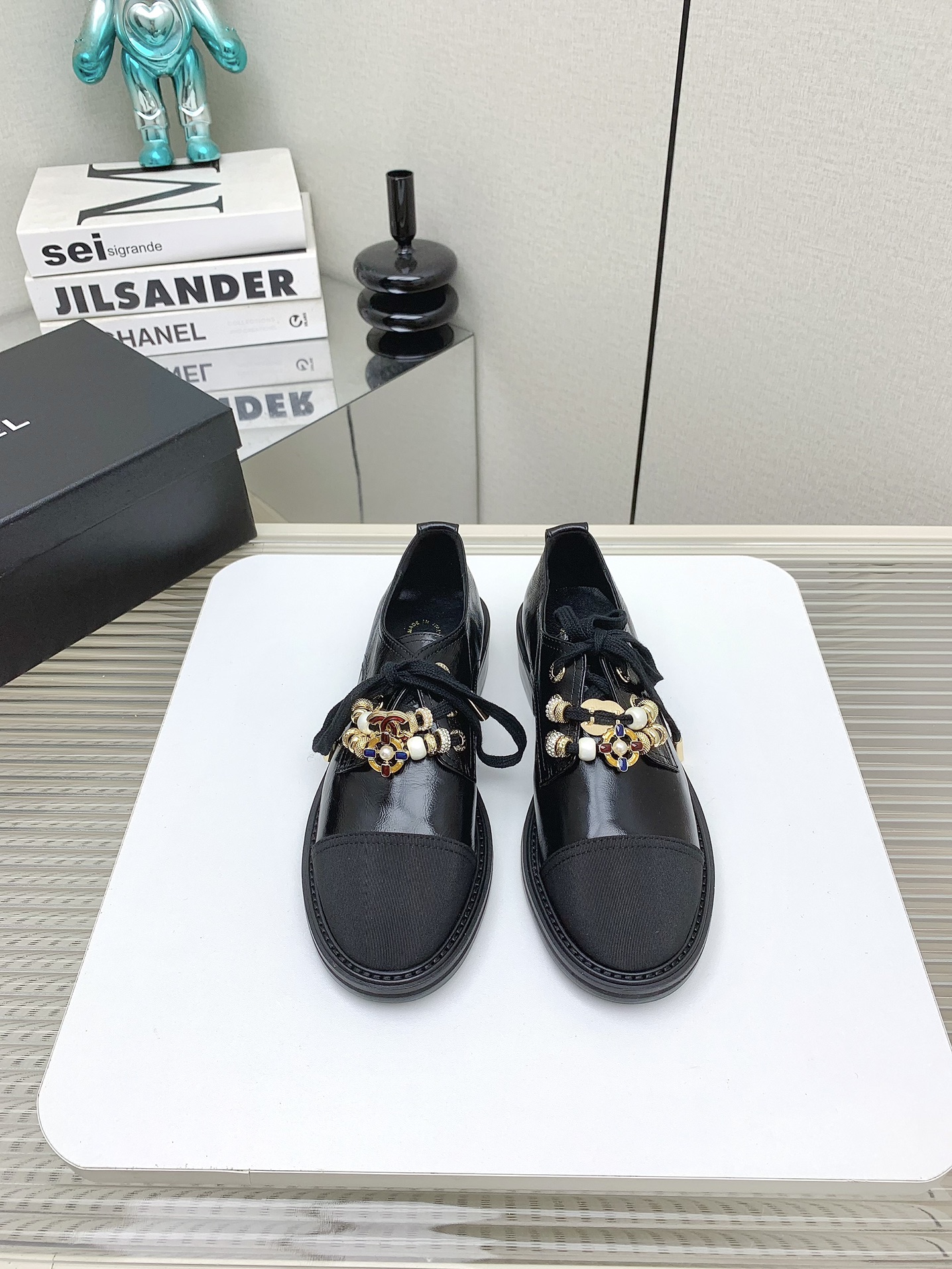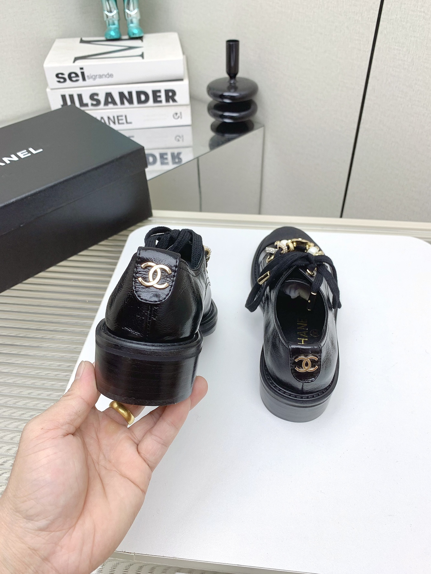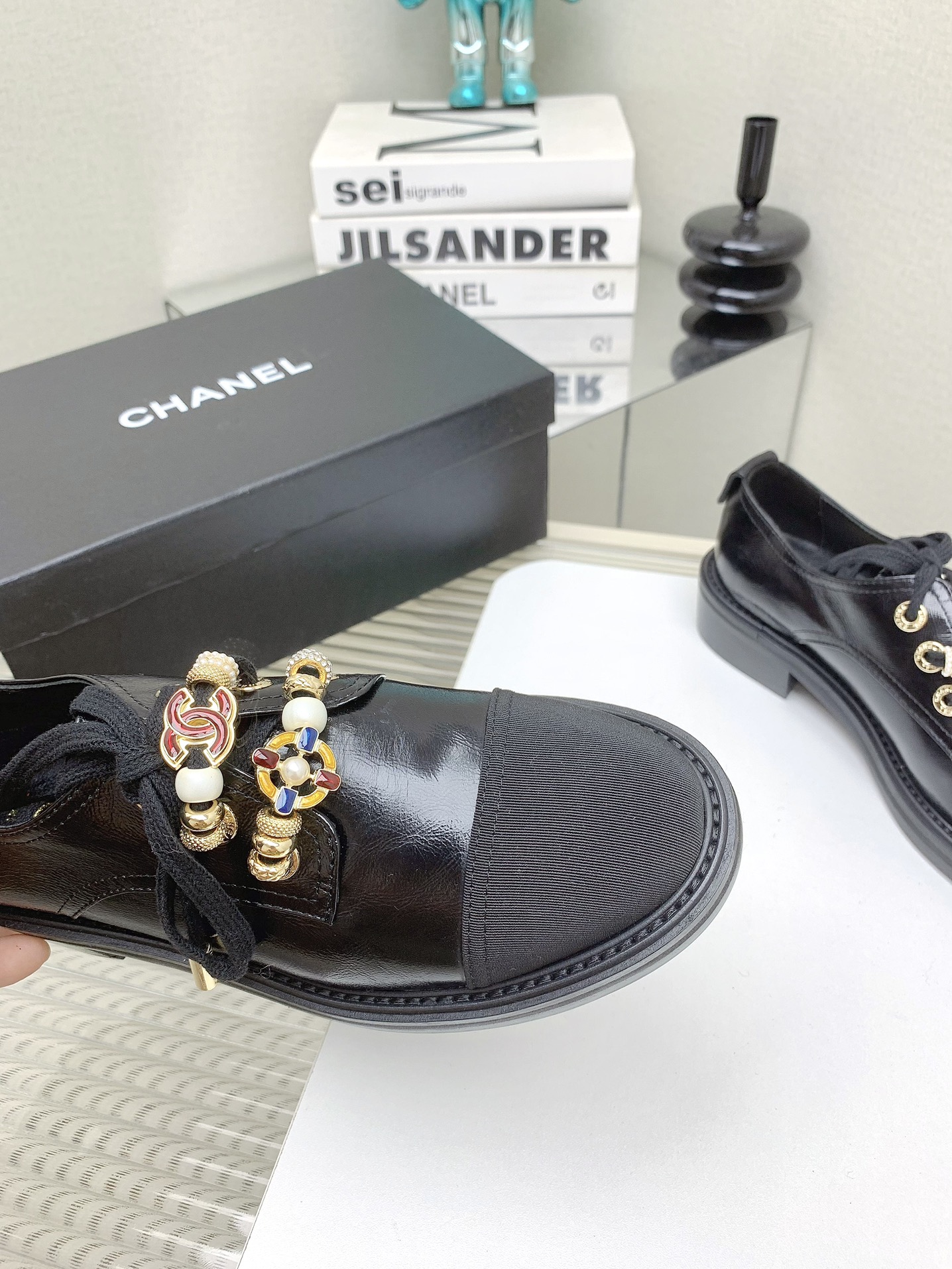 这款鞋子是AAAAA 1:1 质量 (非常棒). 使用了和原版一模一样的材料. 商标部分也保持了和香奈儿/Chanel一样. 图片拍摄是实物鞋子拍摄, 您所收到的实物保证和我们图片一模一样.