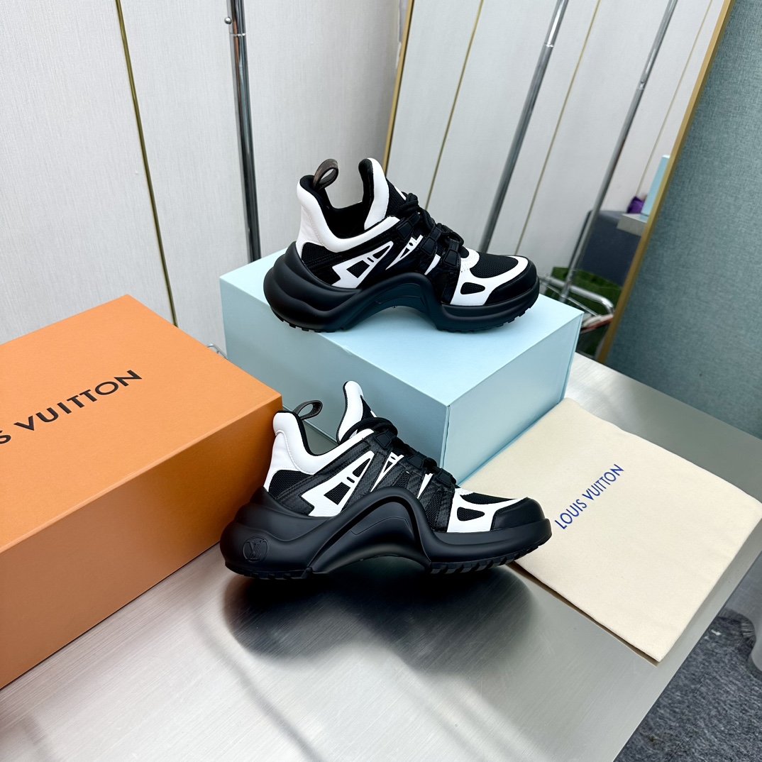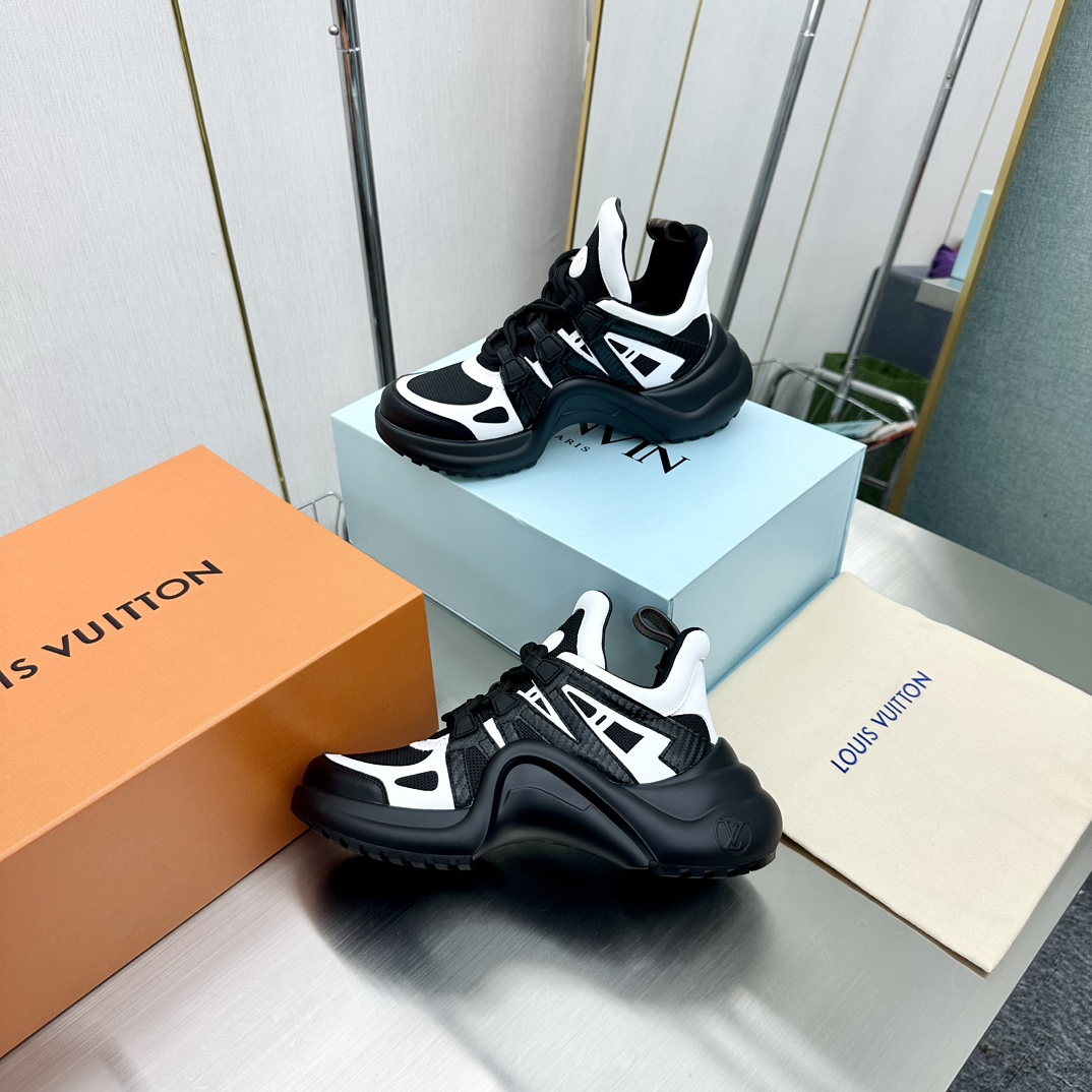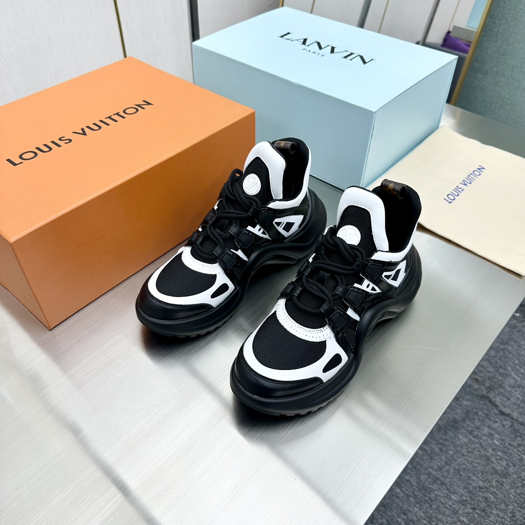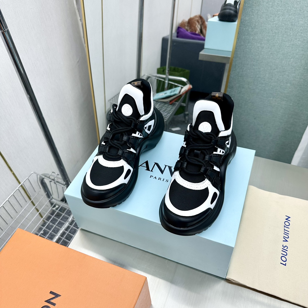 这款鞋子是AAAAA 1:1 质量 (非常棒). 使用了和原版一模一样的材料. 商标部分也保持了和路易威登/Louis Vuitton一样. 图片拍摄是实物鞋子拍摄, 您所收到的实物保证和我们图片一模一样.