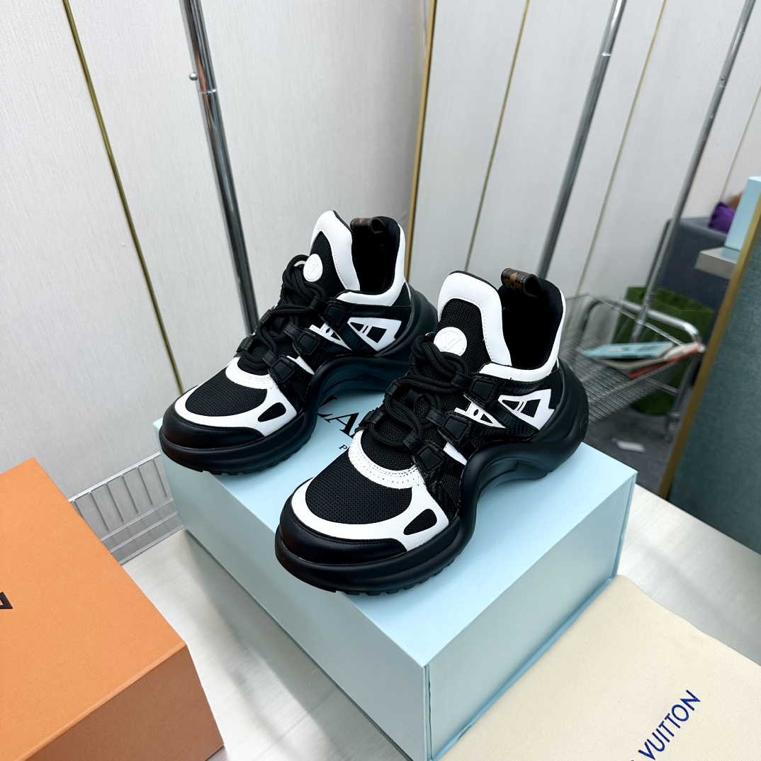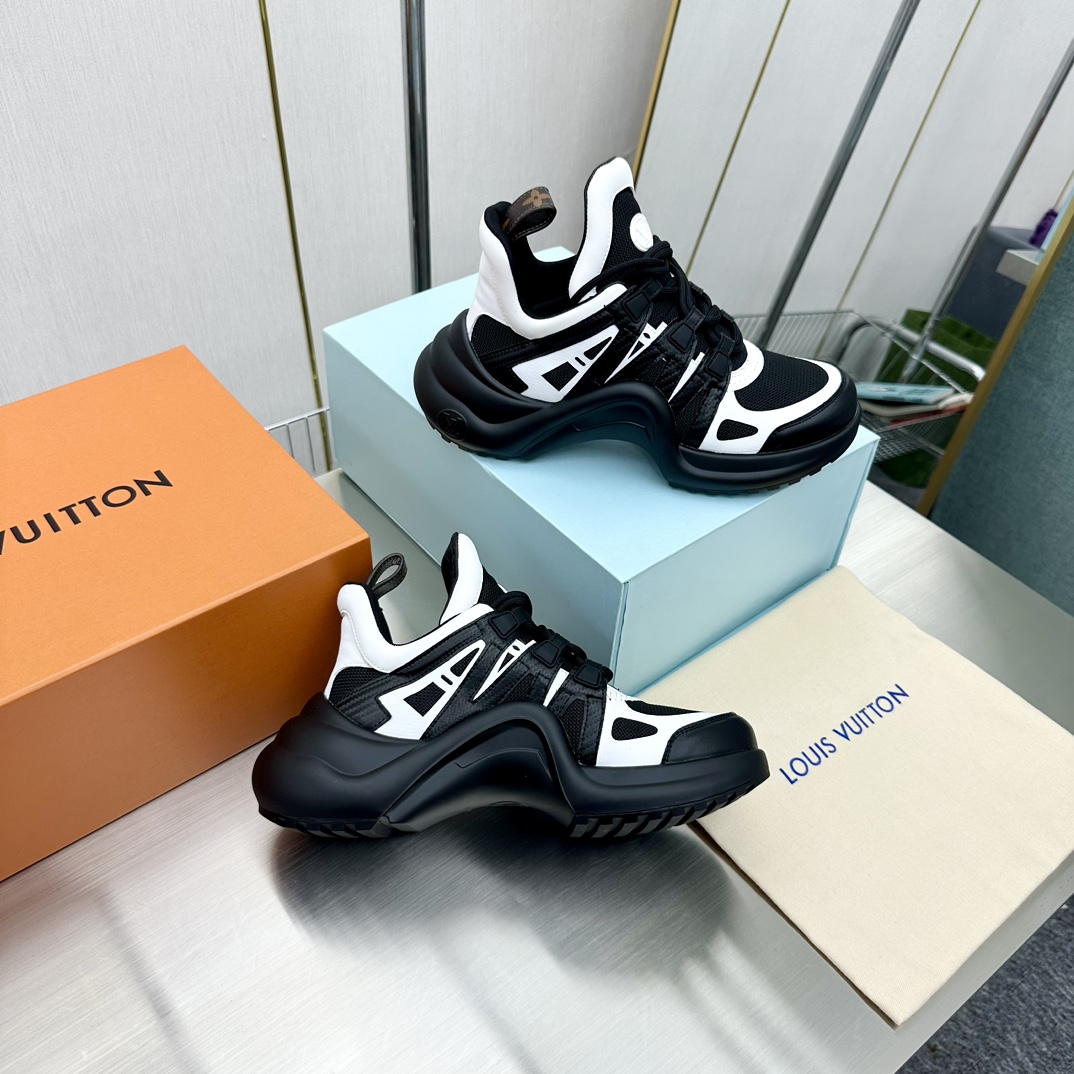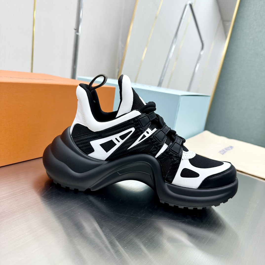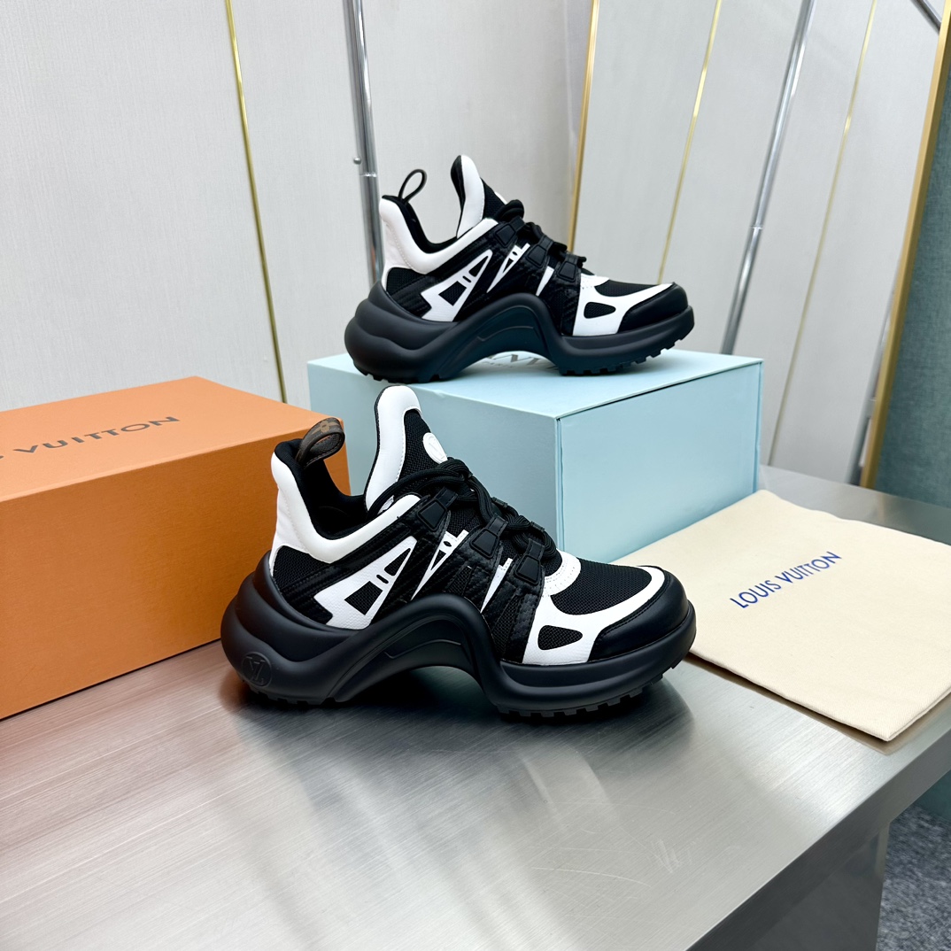 这款鞋子是AAAAA 1:1 质量 (非常棒). 使用了和原版一模一样的材料. 商标部分也保持了和路易威登/Louis Vuitton一样. 图片拍摄是实物鞋子拍摄, 您所收到的实物保证和我们图片一模一样.