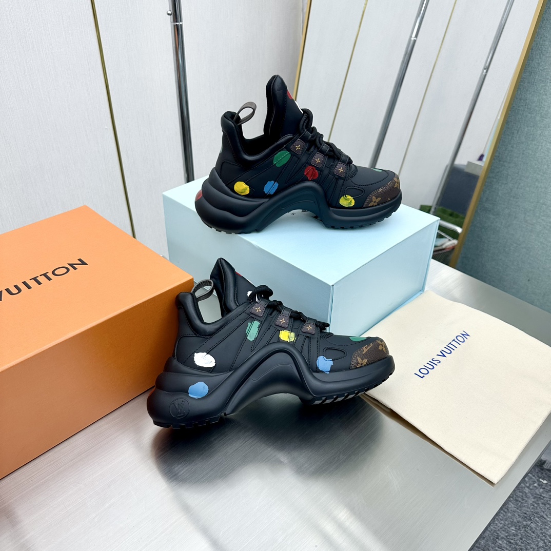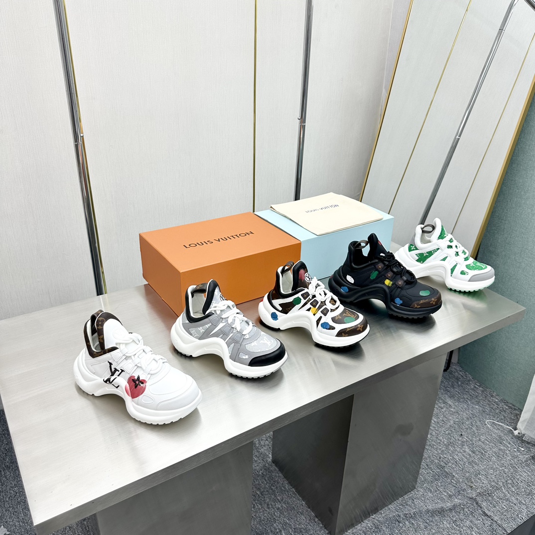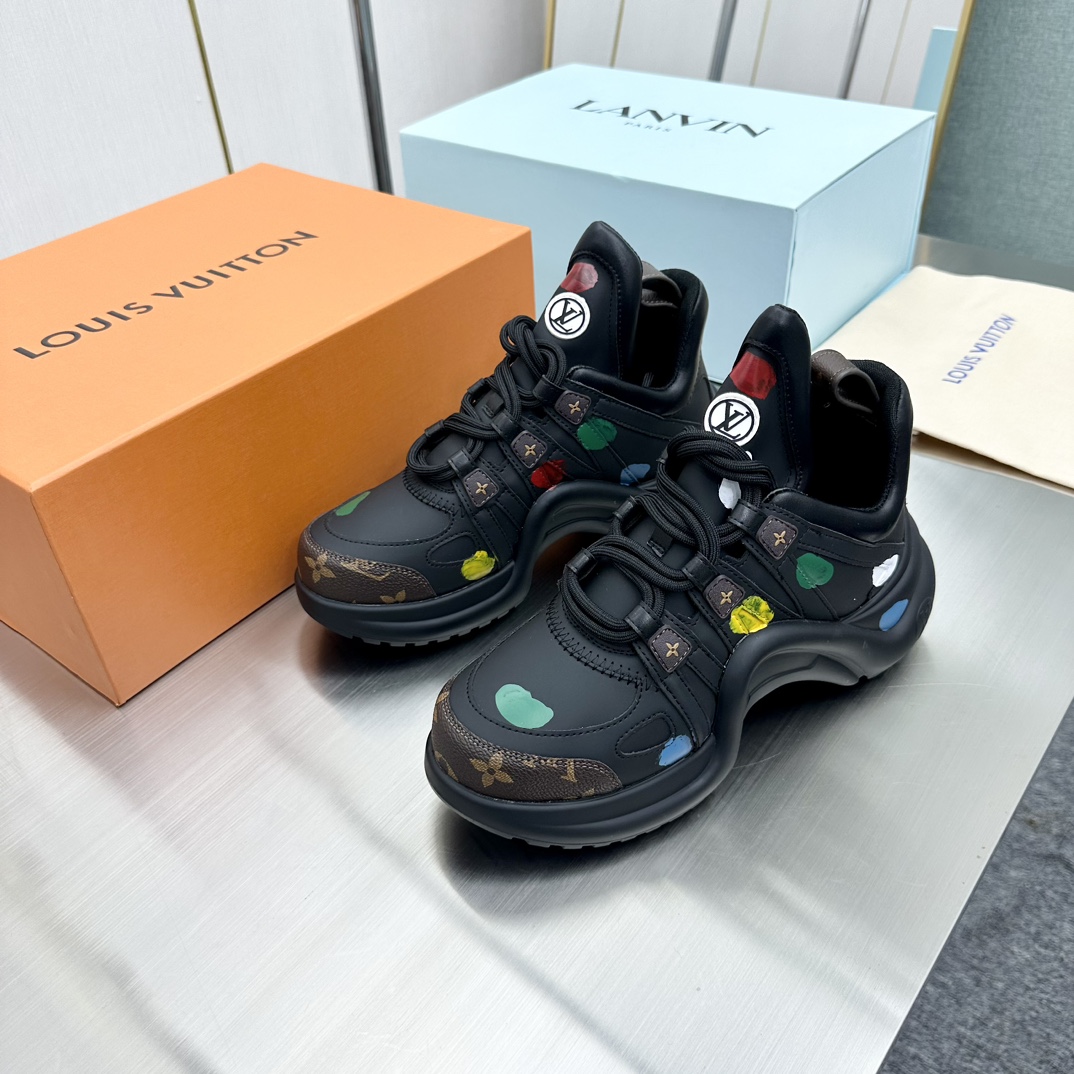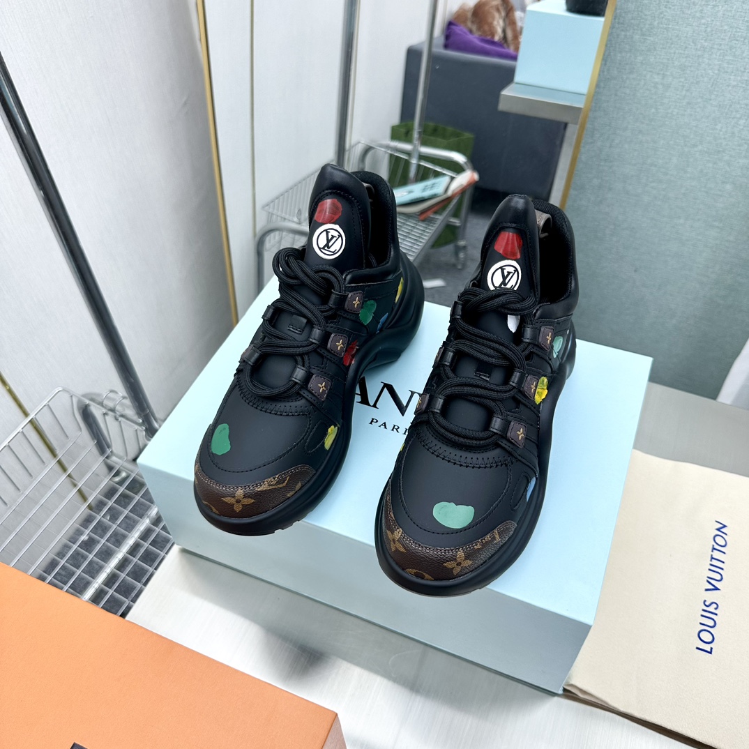 这款鞋子是AAAAA 1:1 质量 (非常棒). 使用了和原版一模一样的材料. 商标部分也保持了和路易威登/Louis Vuitton一样. 图片拍摄是实物鞋子拍摄, 您所收到的实物保证和我们图片一模一样.
