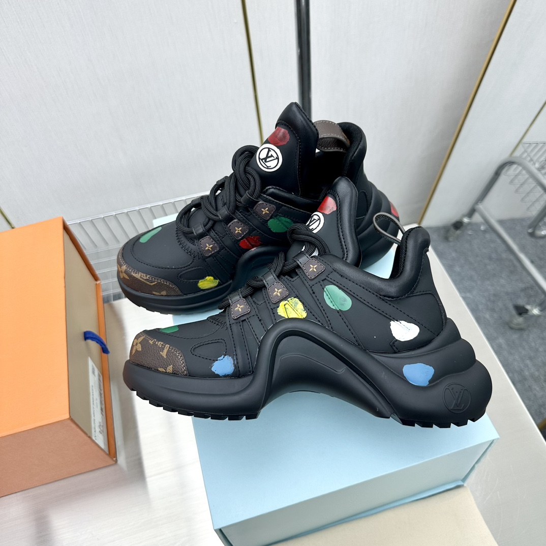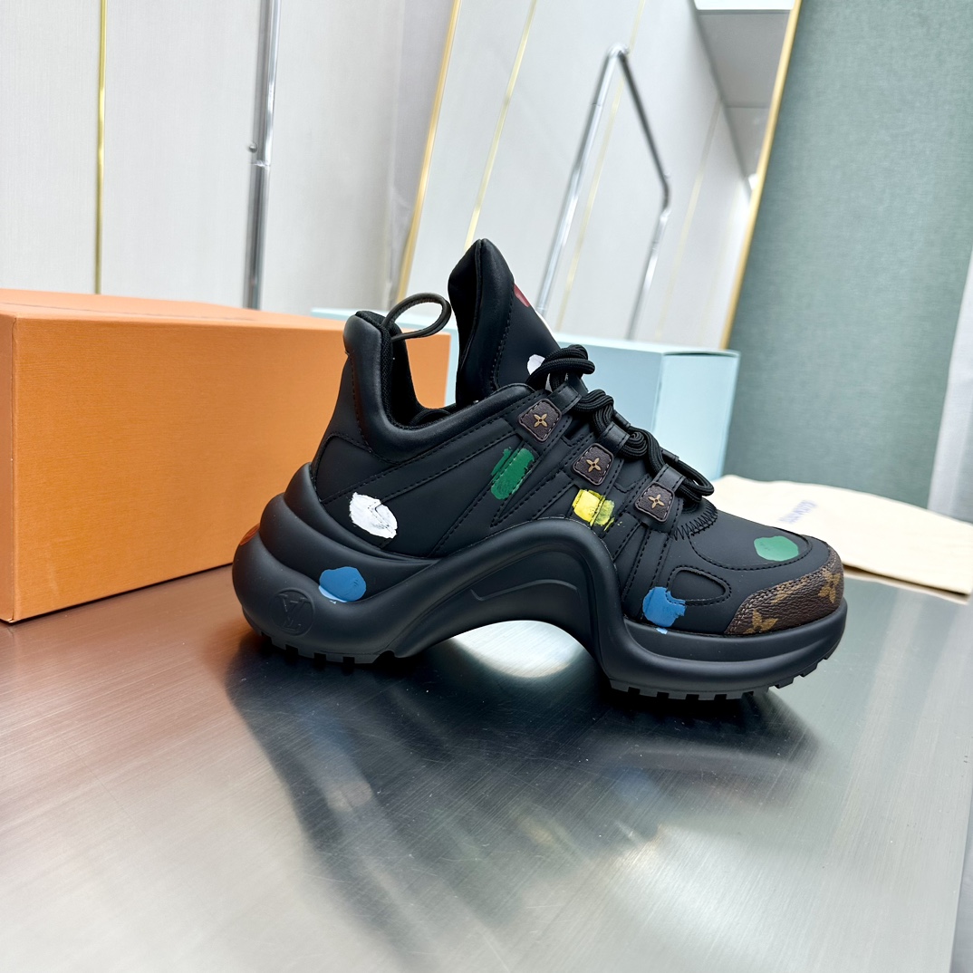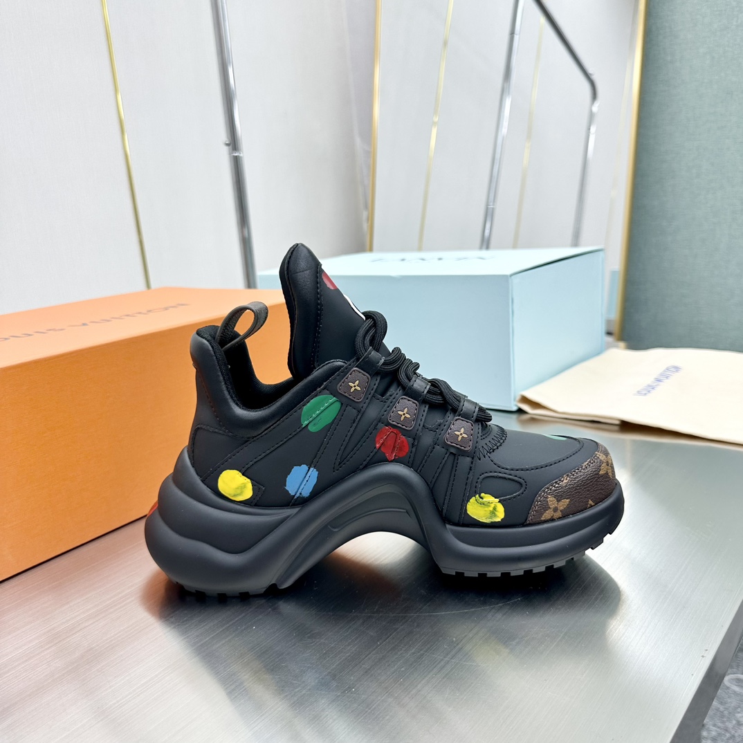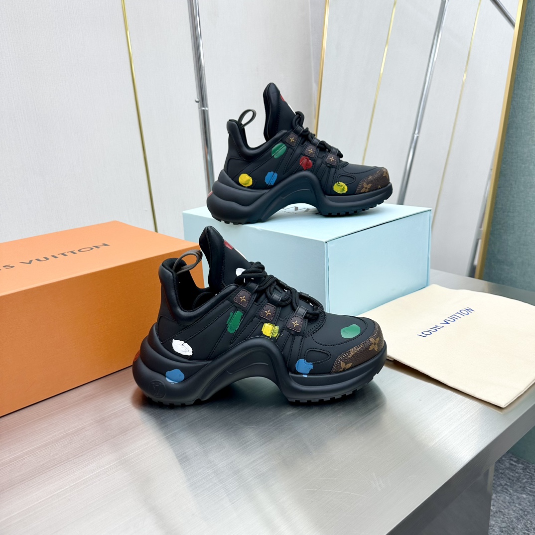 这款鞋子是AAAAA 1:1 质量 (非常棒). 使用了和原版一模一样的材料. 商标部分也保持了和路易威登/Louis Vuitton一样. 图片拍摄是实物鞋子拍摄, 您所收到的实物保证和我们图片一模一样.