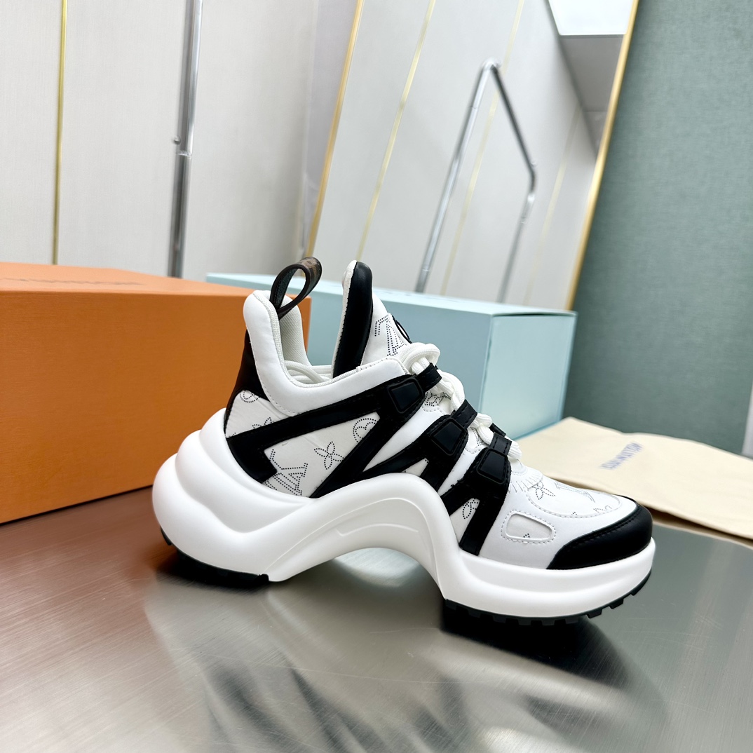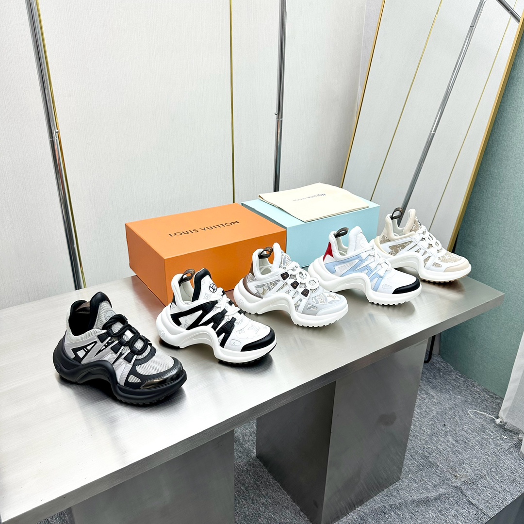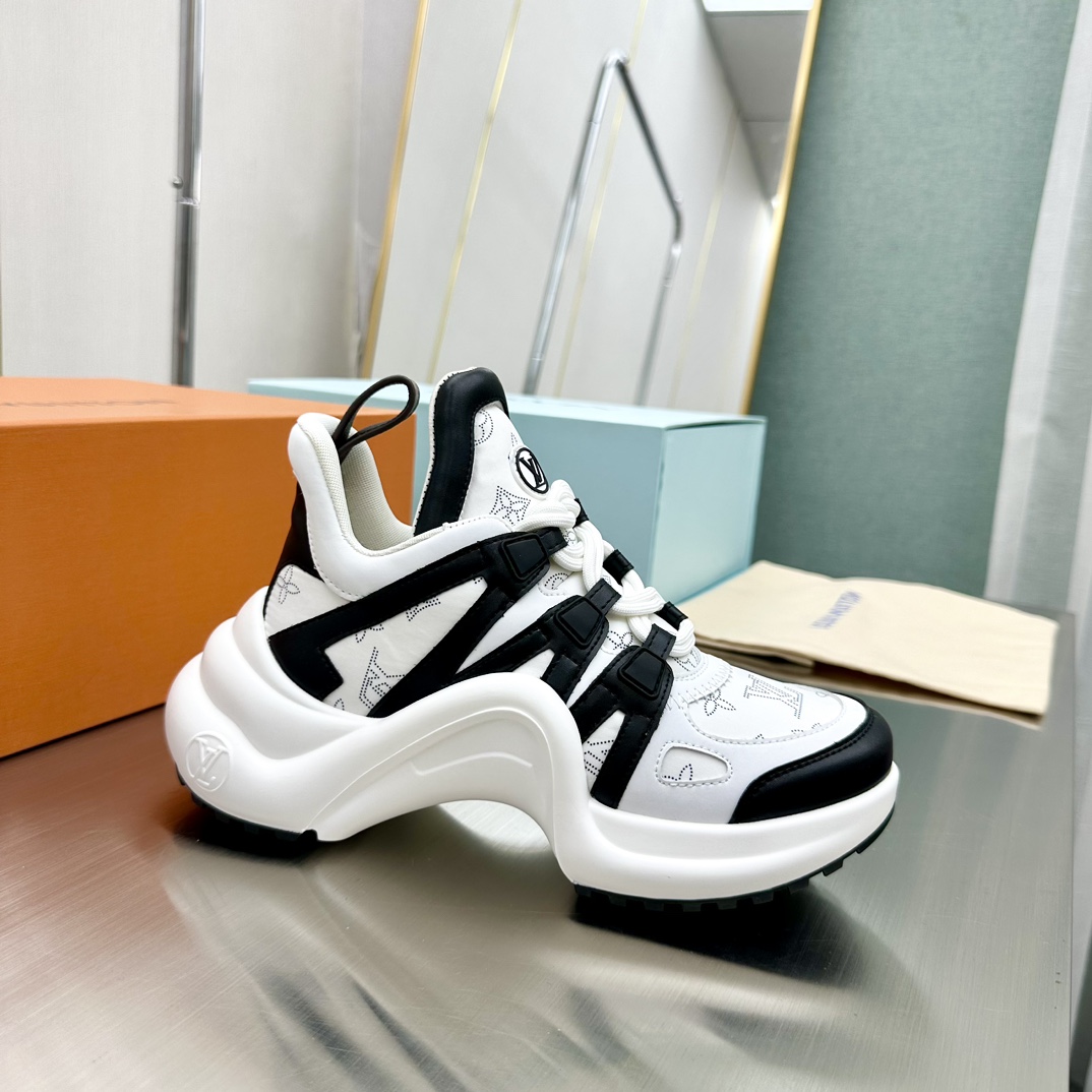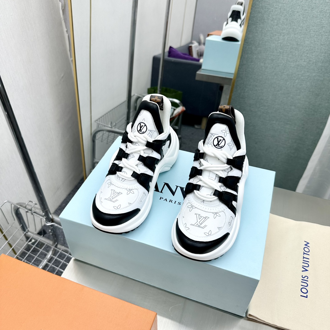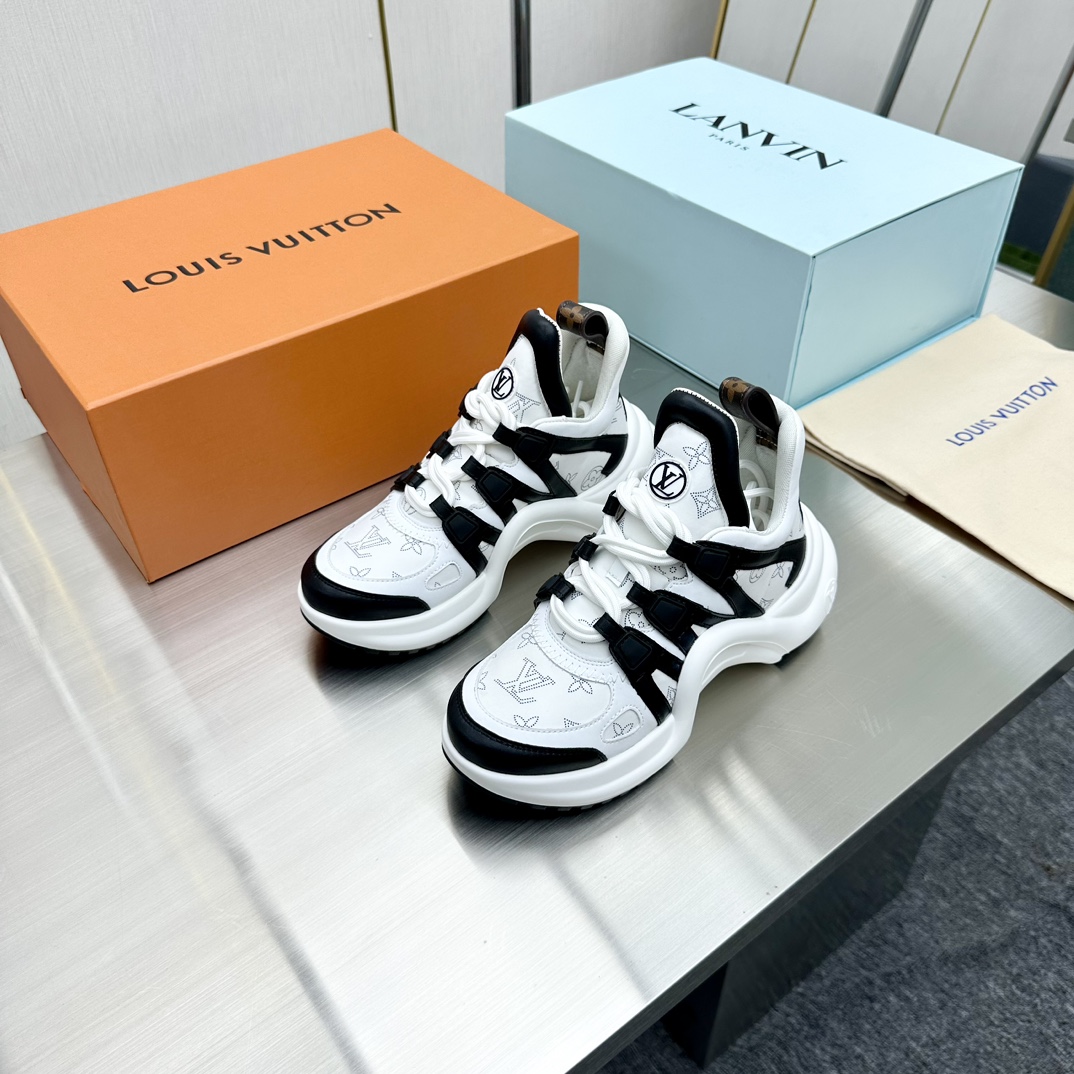 这款鞋子是AAAAA 1:1 质量 (非常棒). 使用了和原版一模一样的材料. 商标部分也保持了和路易威登/Louis Vuitton一样. 图片拍摄是实物鞋子拍摄, 您所收到的实物保证和我们图片一模一样.