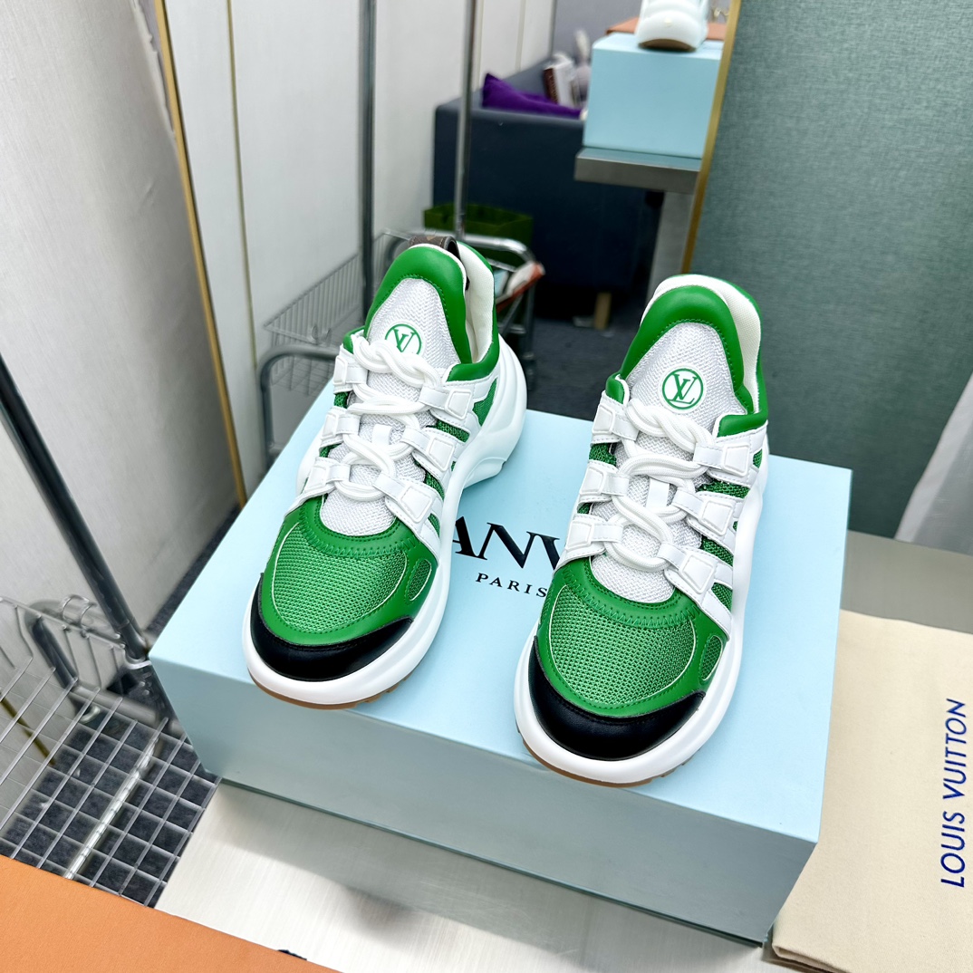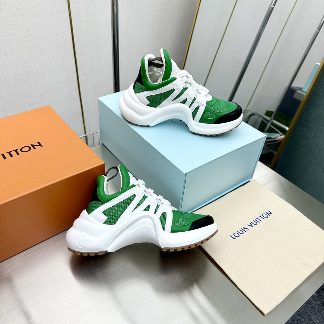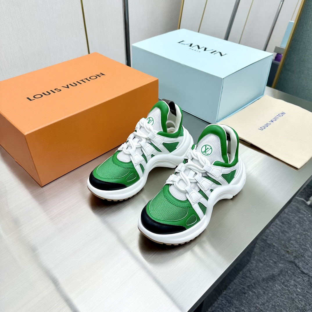 这款鞋子是AAAAA 1:1 质量 (非常棒). 使用了和原版一模一样的材料. 商标部分也保持了和路易威登/Louis Vuitton一样. 图片拍摄是实物鞋子拍摄, 您所收到的实物保证和我们图片一模一样.
