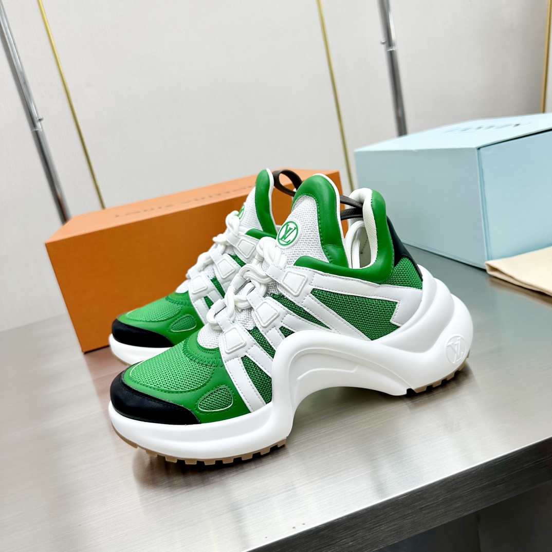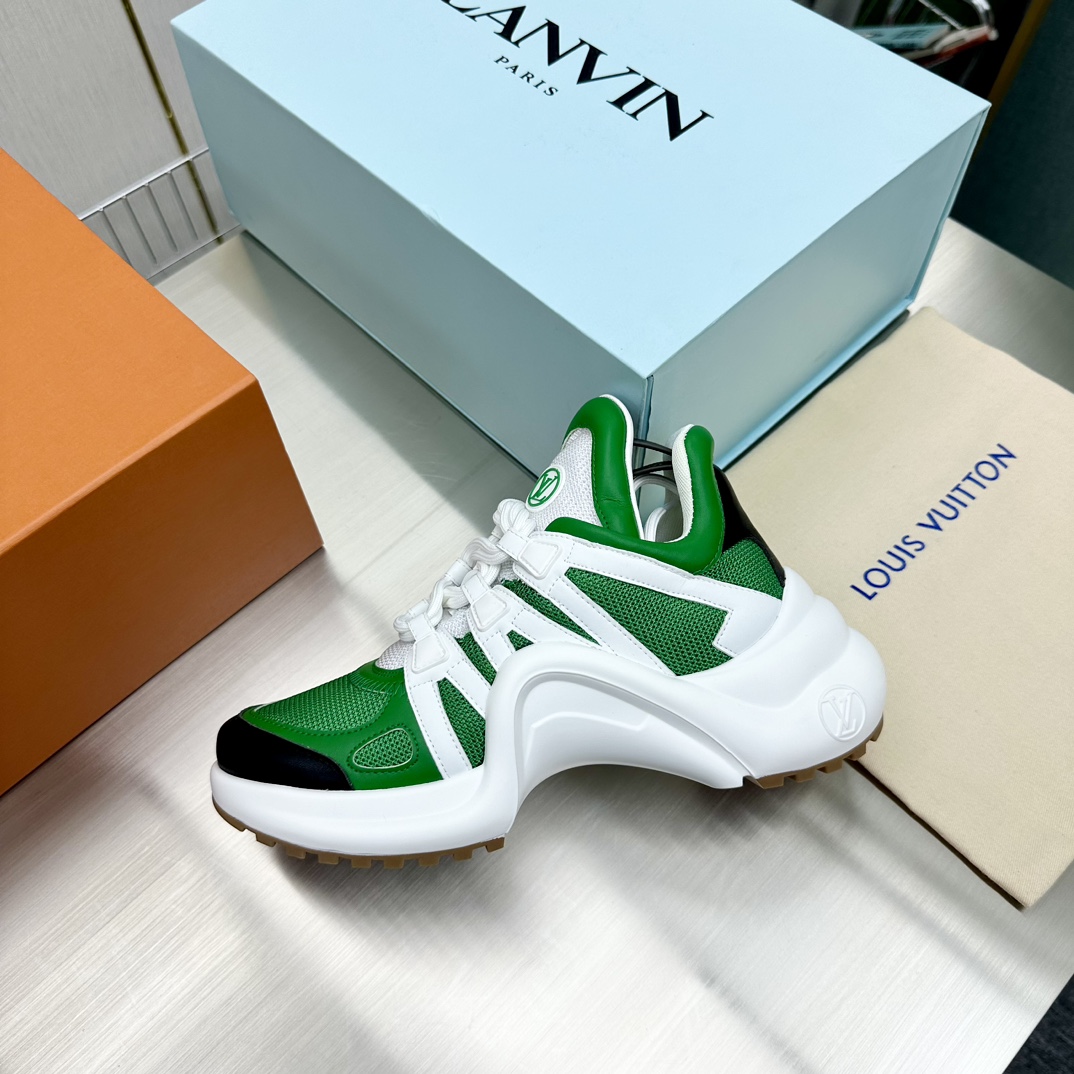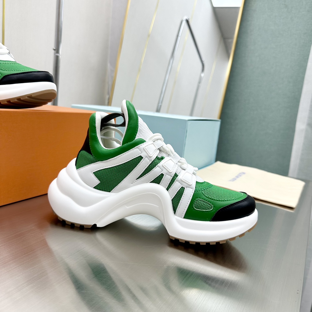 这款鞋子是AAAAA 1:1 质量 (非常棒). 使用了和原版一模一样的材料. 商标部分也保持了和路易威登/Louis Vuitton一样. 图片拍摄是实物鞋子拍摄, 您所收到的实物保证和我们图片一模一样.