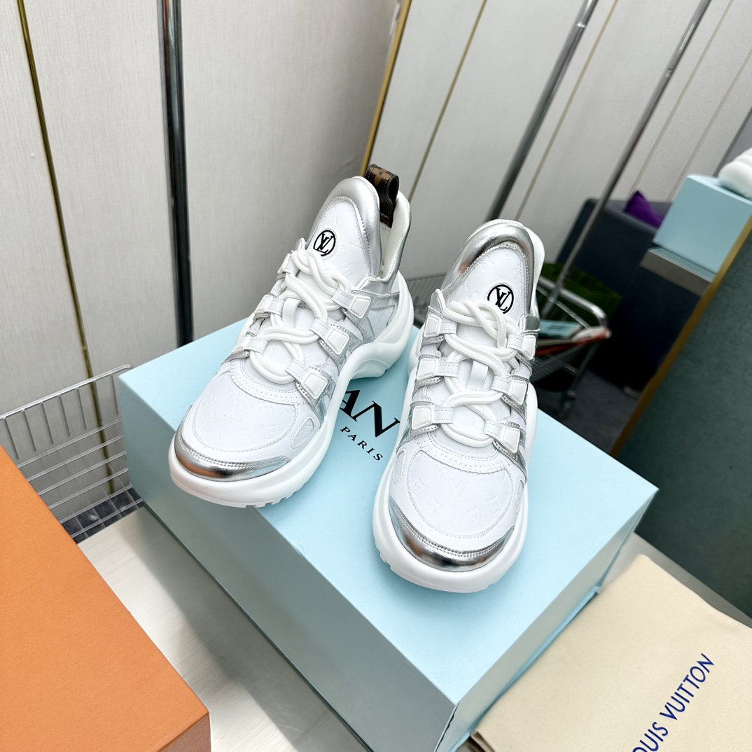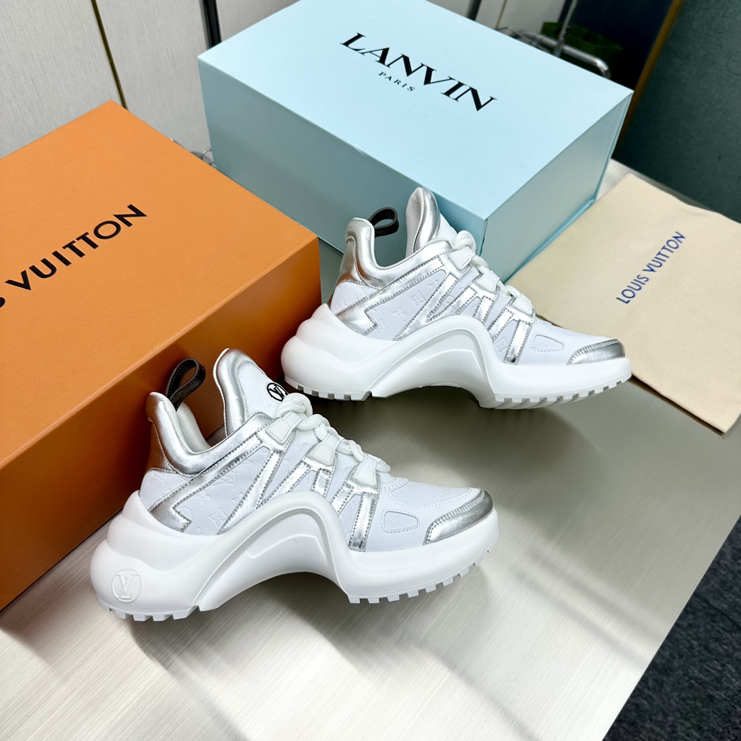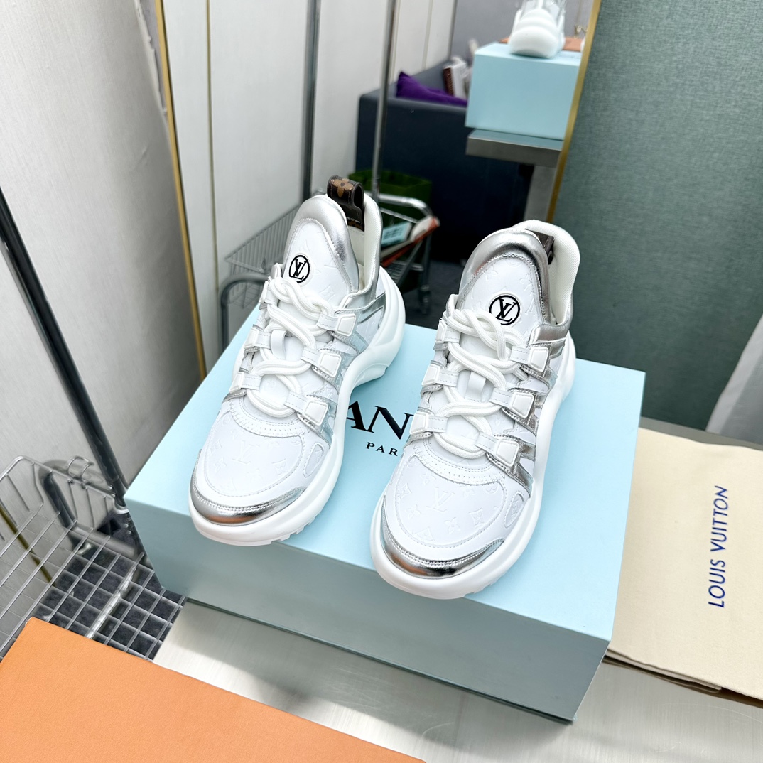 这款鞋子是AAAAA 1:1 质量 (非常棒). 使用了和原版一模一样的材料. 商标部分也保持了和路易威登/Louis Vuitton一样. 图片拍摄是实物鞋子拍摄, 您所收到的实物保证和我们图片一模一样.