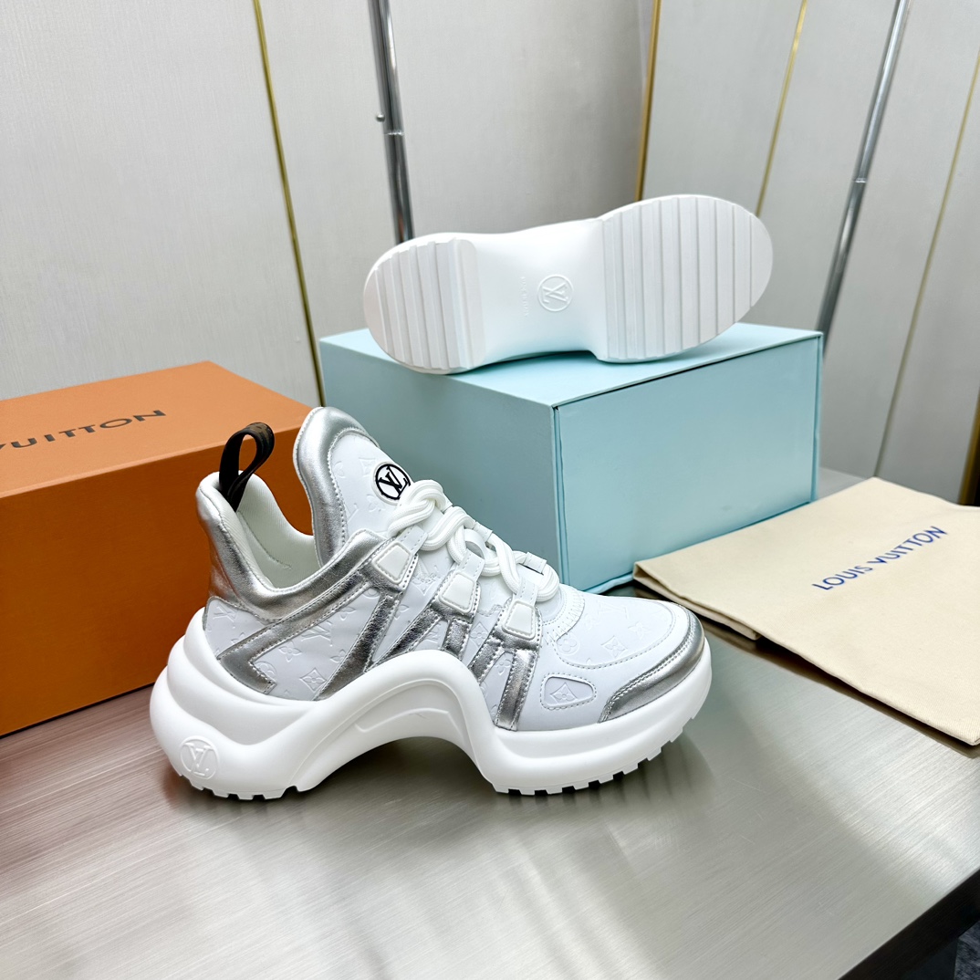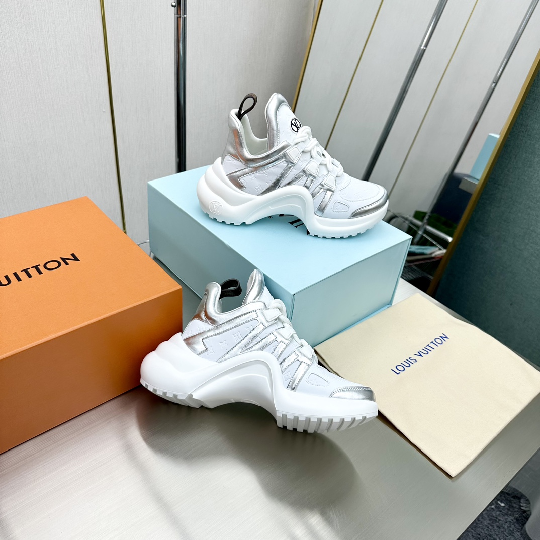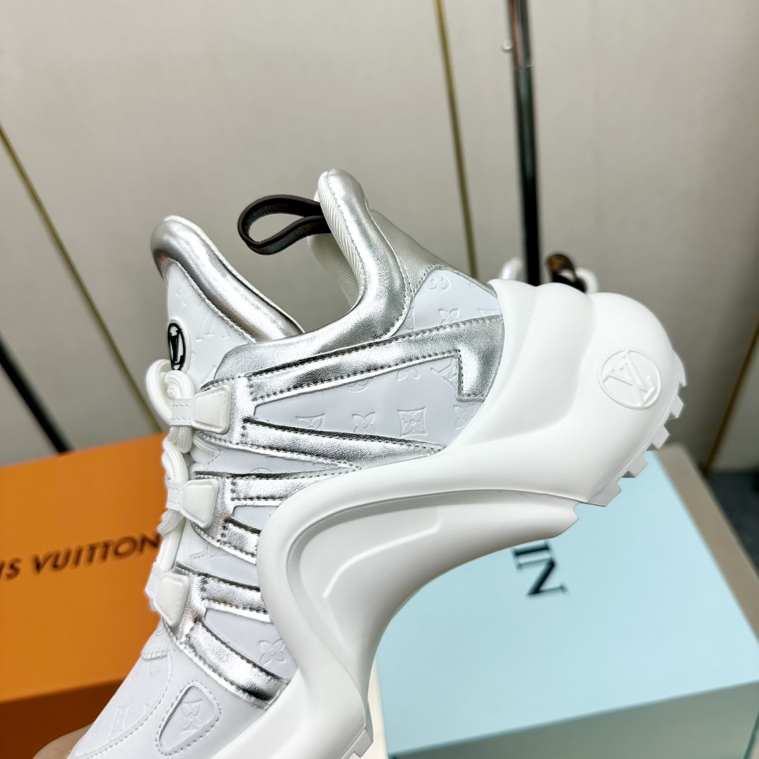 这款鞋子是AAAAA 1:1 质量 (非常棒). 使用了和原版一模一样的材料. 商标部分也保持了和路易威登/Louis Vuitton一样. 图片拍摄是实物鞋子拍摄, 您所收到的实物保证和我们图片一模一样.
